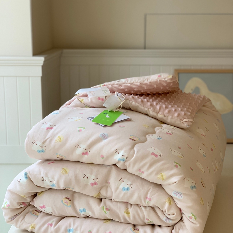商品名称:汇庭 2025秋冬新款·糯米纱布双人豆豆被系列 乐园猫咪粉