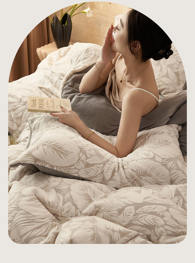 金鹰 2025新款雕花烂花牛奶绒四件套 叶叶生辉