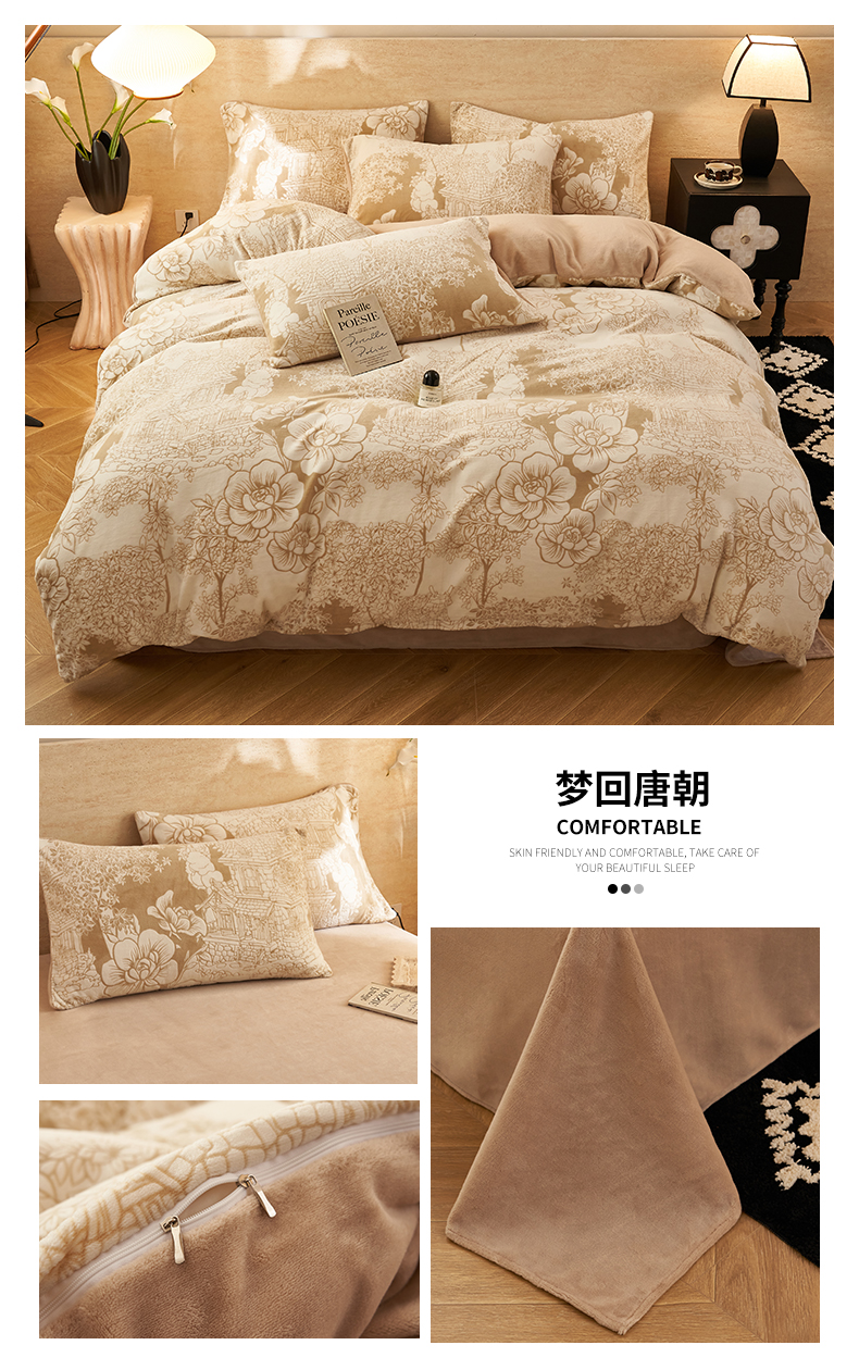 (总)金鹰 2025新款雕花烂花牛奶绒四件套,梦回唐朝,爱丽丝,蝴蝶结,花朝梦,浪漫人生,流年花束,绿野仙踪-灰,绿野仙踪-驼,玫瑰恋情,叶茂,叶叶生辉,叶影