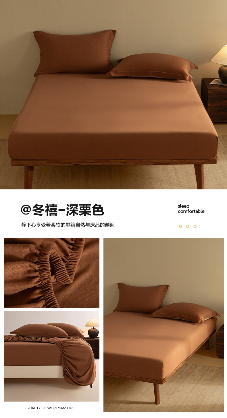 商品名称:秀色家纺 2025高端长绒棉贡缎加厚磨毛纯棉单件床笠三件套床罩全棉床垫保护套50s 冬禧-肉桂粉