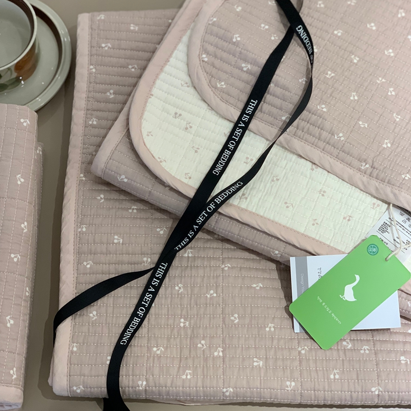 (总)汇庭 2025新款秋冬胖胖樱桃春秋被+樱桃菲菲床盖三件套,组合图下单仅供展示不可下单,粉色,绿色,米色