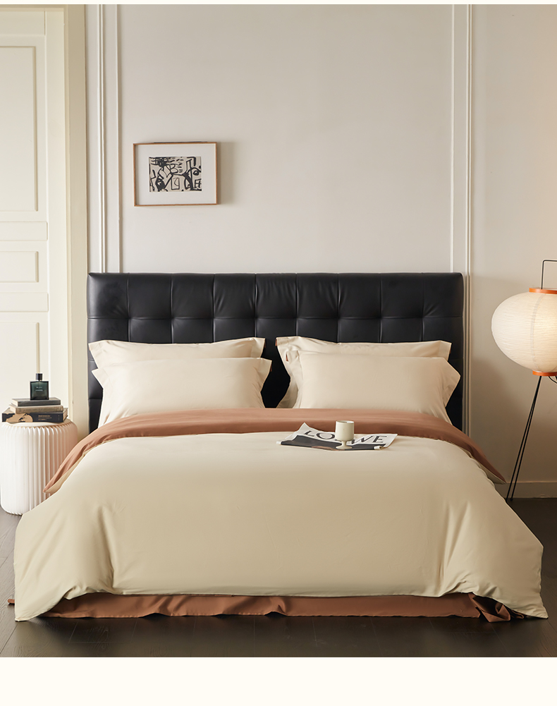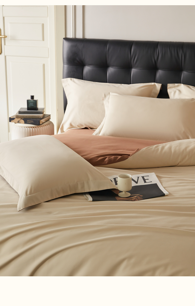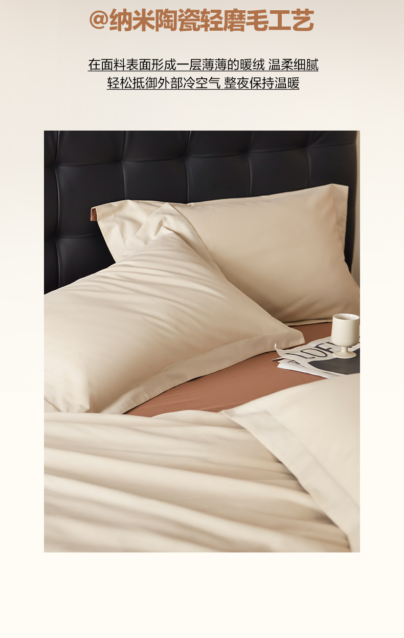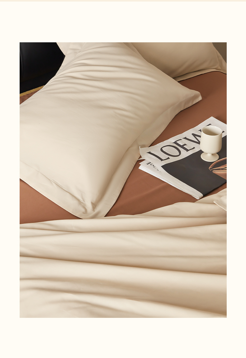 商品名称:秀色家纺 2025新款60支长绒棉双面加厚磨毛保暖纯棉四件套纯色被套全棉轻奢高级感 奶油+深栗色