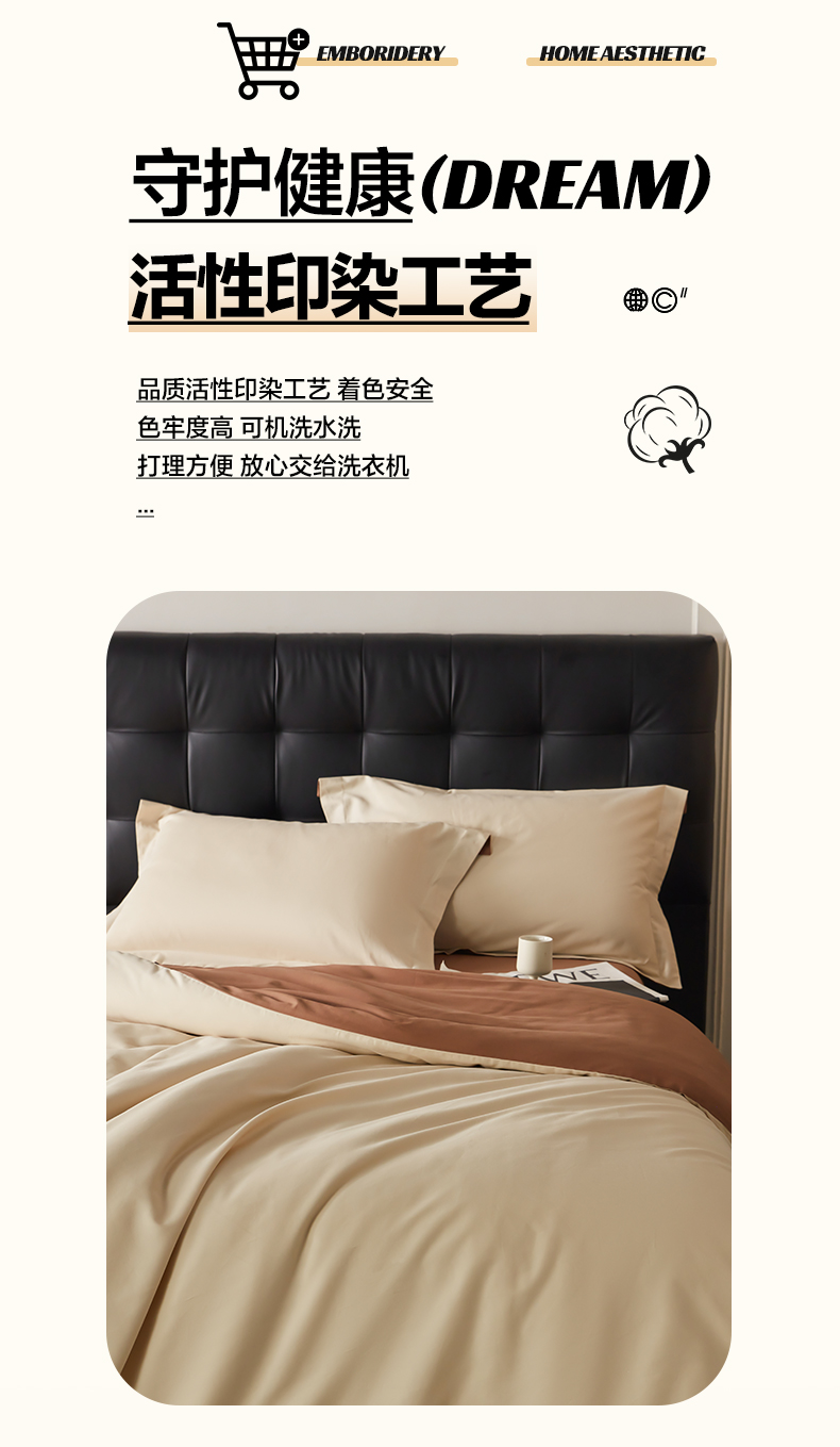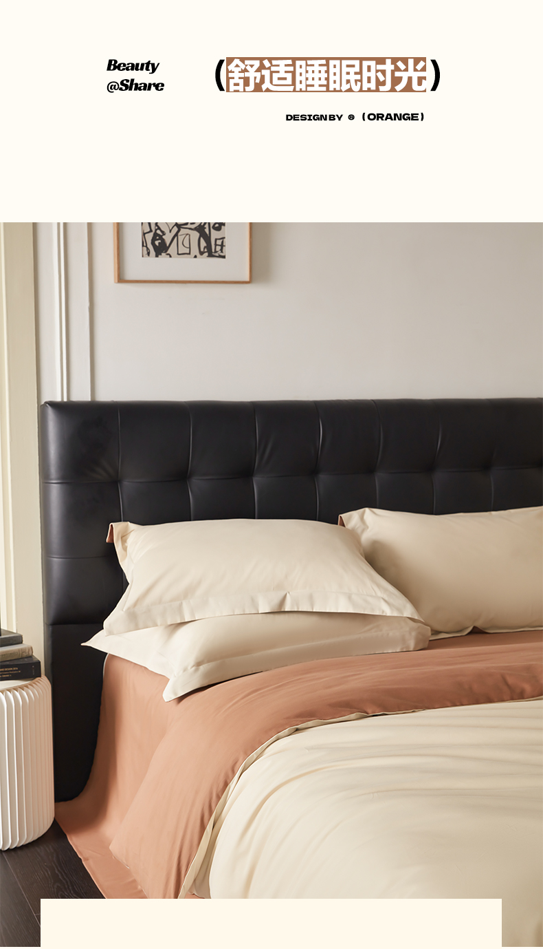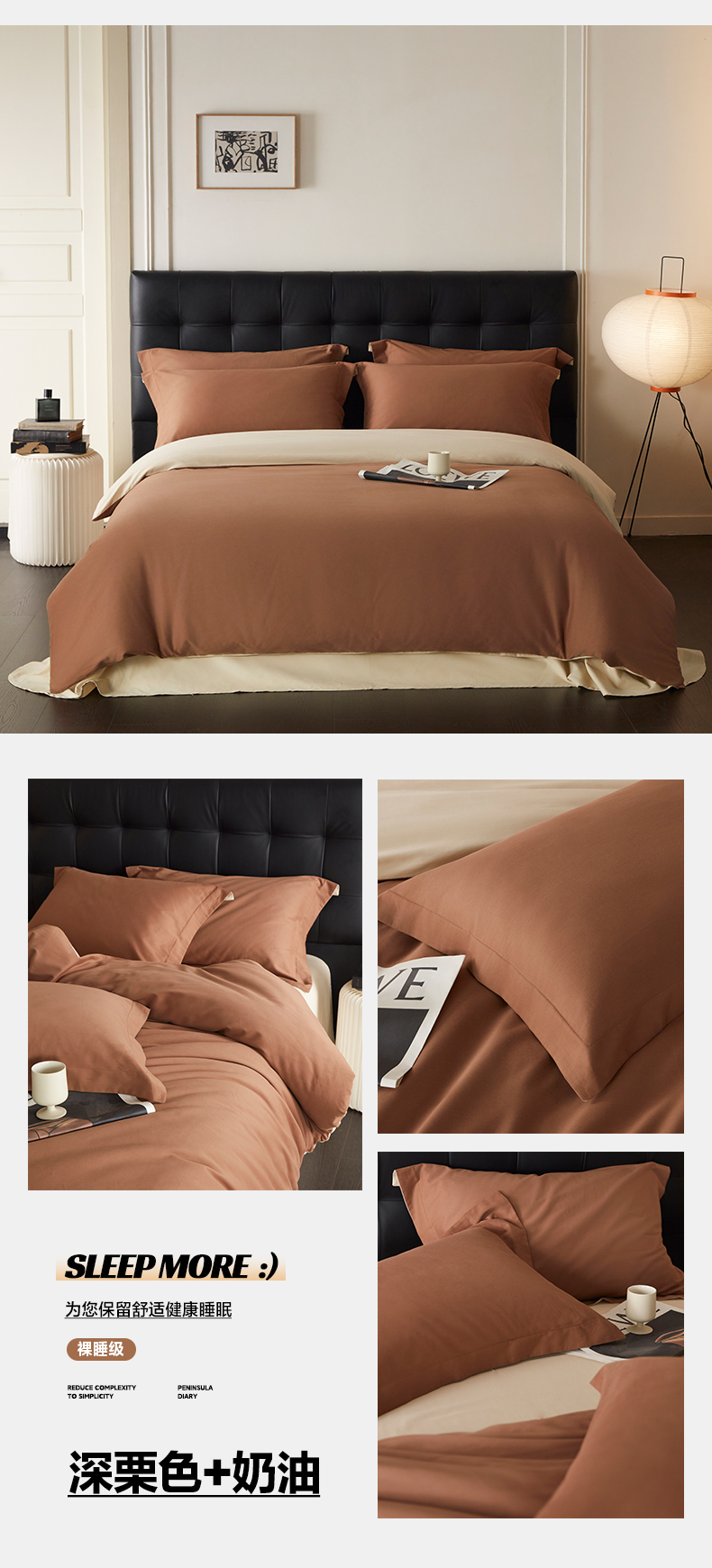 商品名称:秀色家纺 2025新款60支长绒棉双面加厚磨毛保暖纯棉四件套纯色被套全棉轻奢高级感 奶油+深栗色