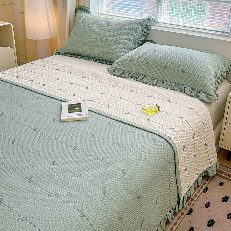 (总)源舜家纺 2026新款天丝棉麻莱赛尔莫代尔天丝棉米粒绣床盖三件套,米粒-绿,米粒-豆沙,米粒-粉,米粒-灰,米粒-蓝,米粒-米