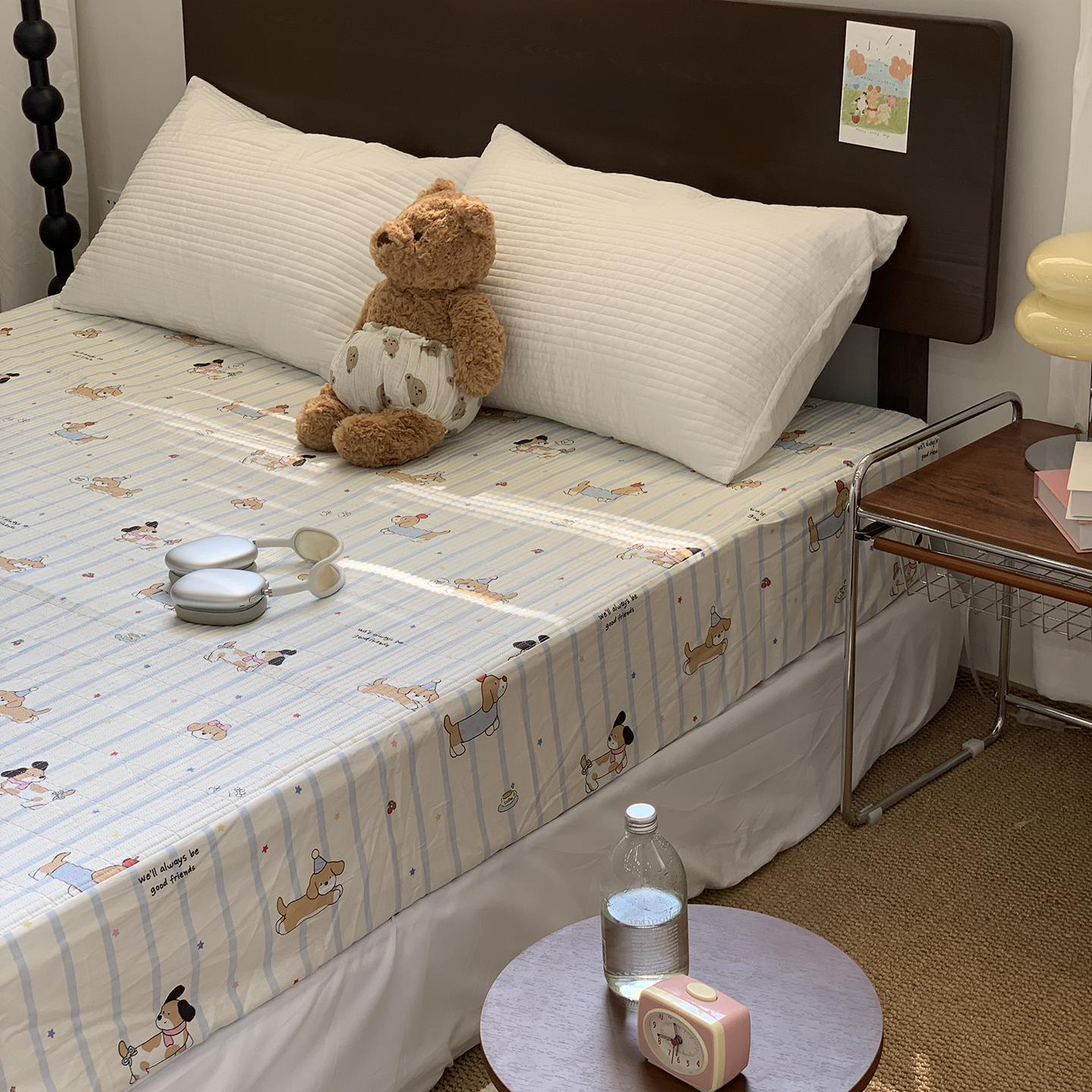 秘密基地 2025新款全棉单品床笠系列 薄荷小狗,薄荷小狗