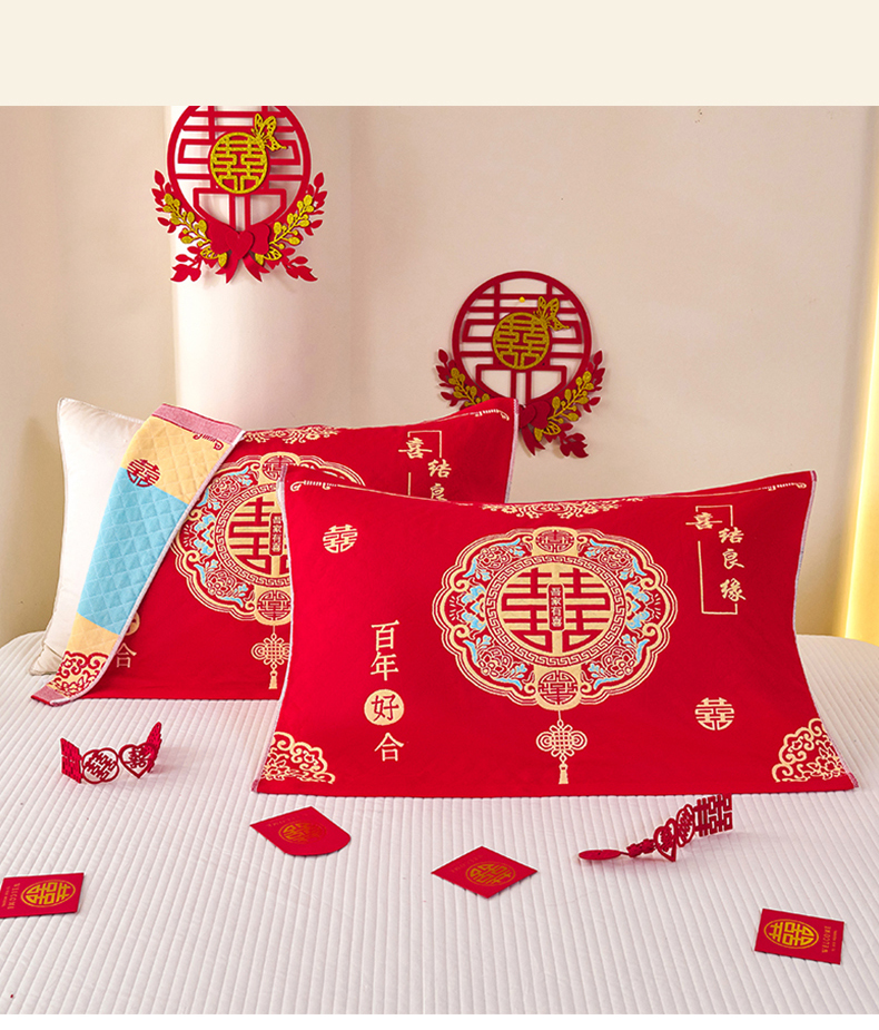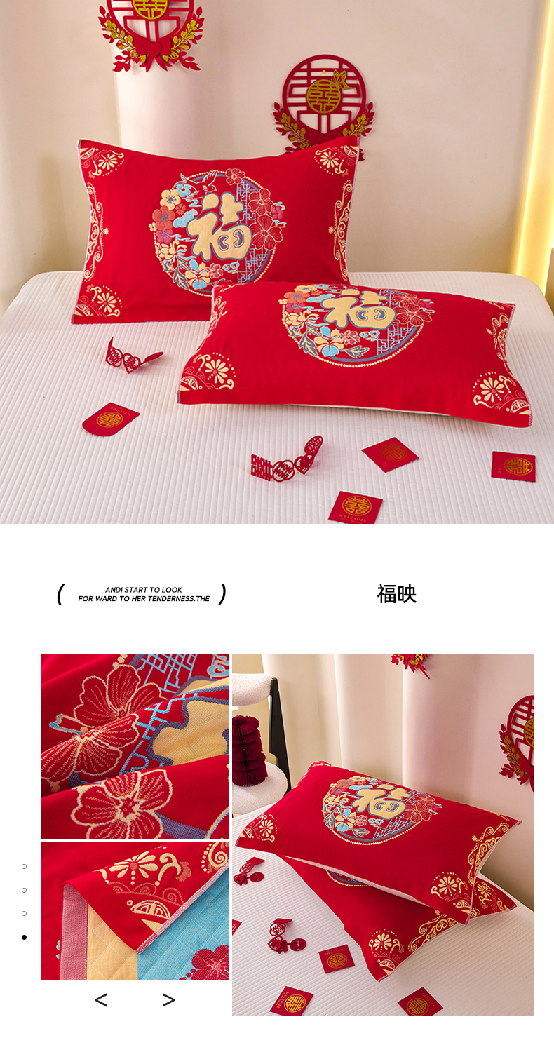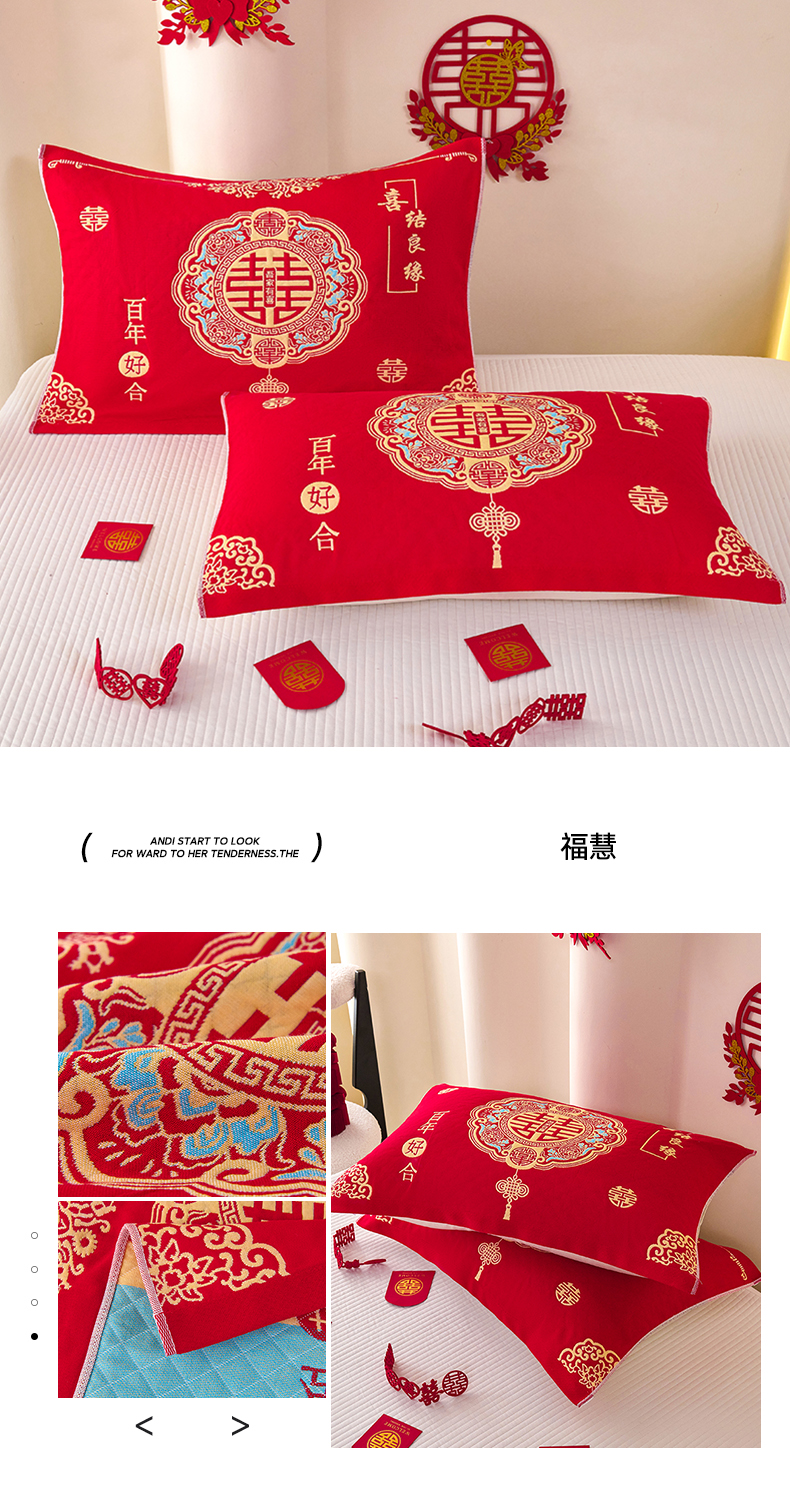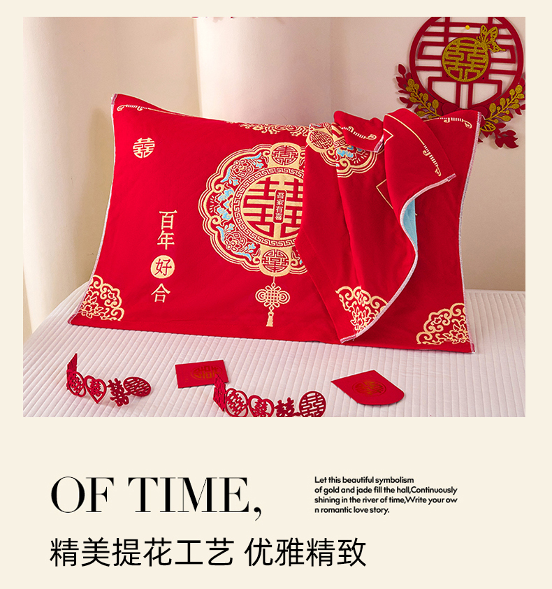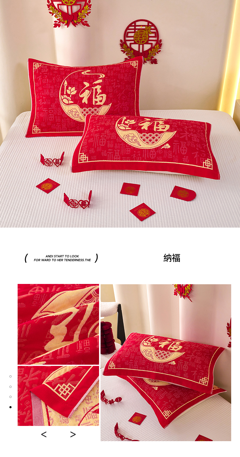 悦然毛巾被 2025新款全棉三层纱大红枕巾 福安