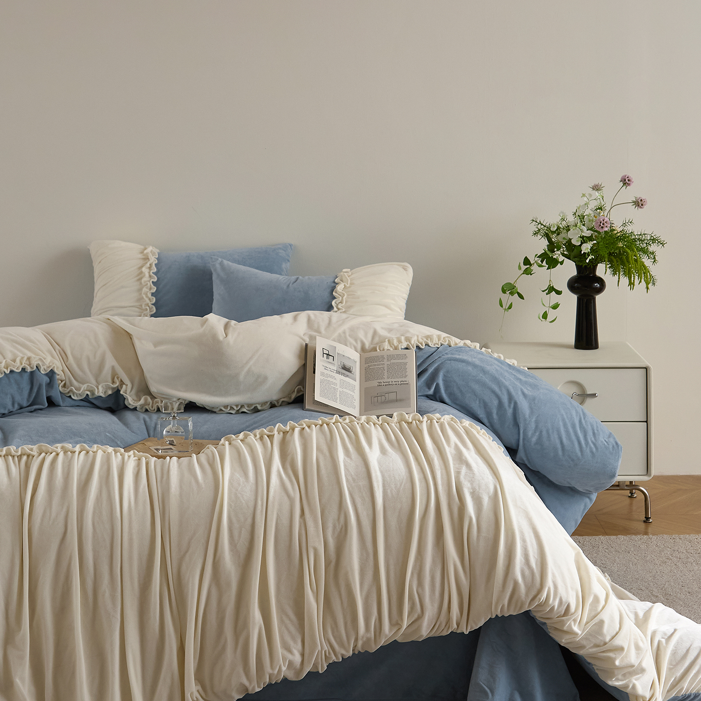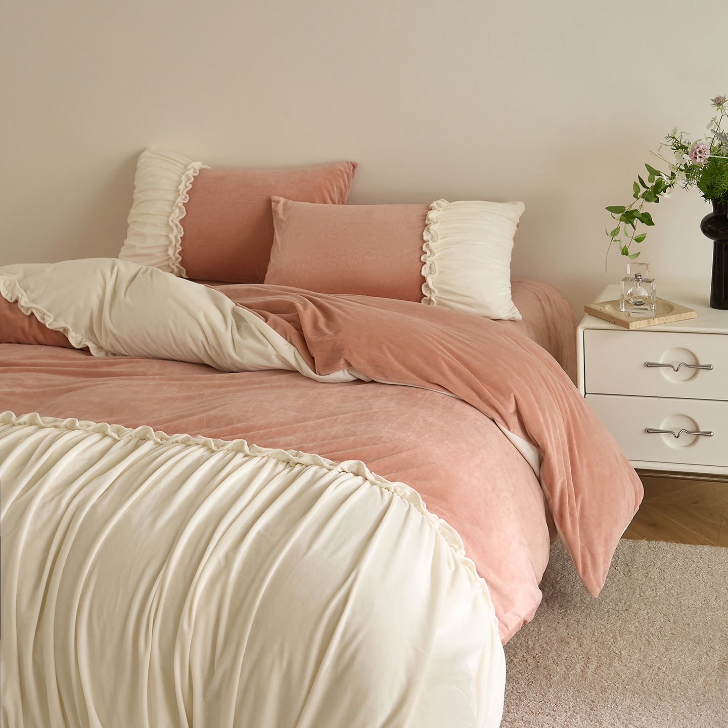 (总)ONE TWO ONE 121 【会员-20】【控价商品】【提供买家秀】 2026新款韩版花边公主风100s长绒棉全棉床上用,雅韵繁花