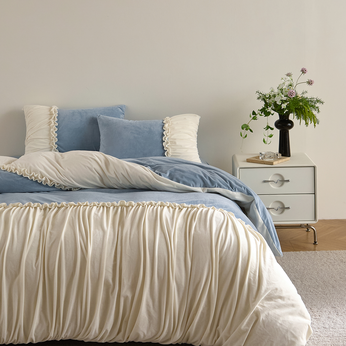 (总)ONE TWO ONE 121 【会员-20】【控价商品】【提供买家秀】【专版花型】2026新款100s长绒棉全棉床上用品数码印花四件套-听潮絮语,听潮絮语-海蓝,听潮絮语-暖咖