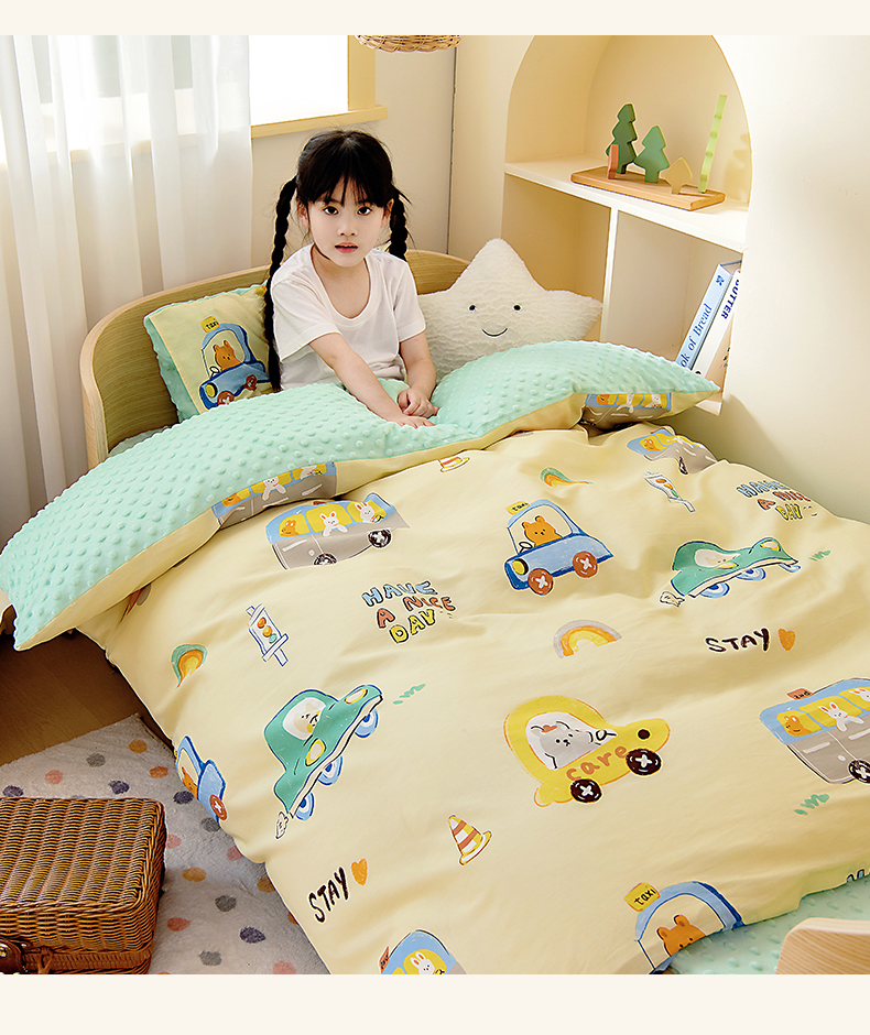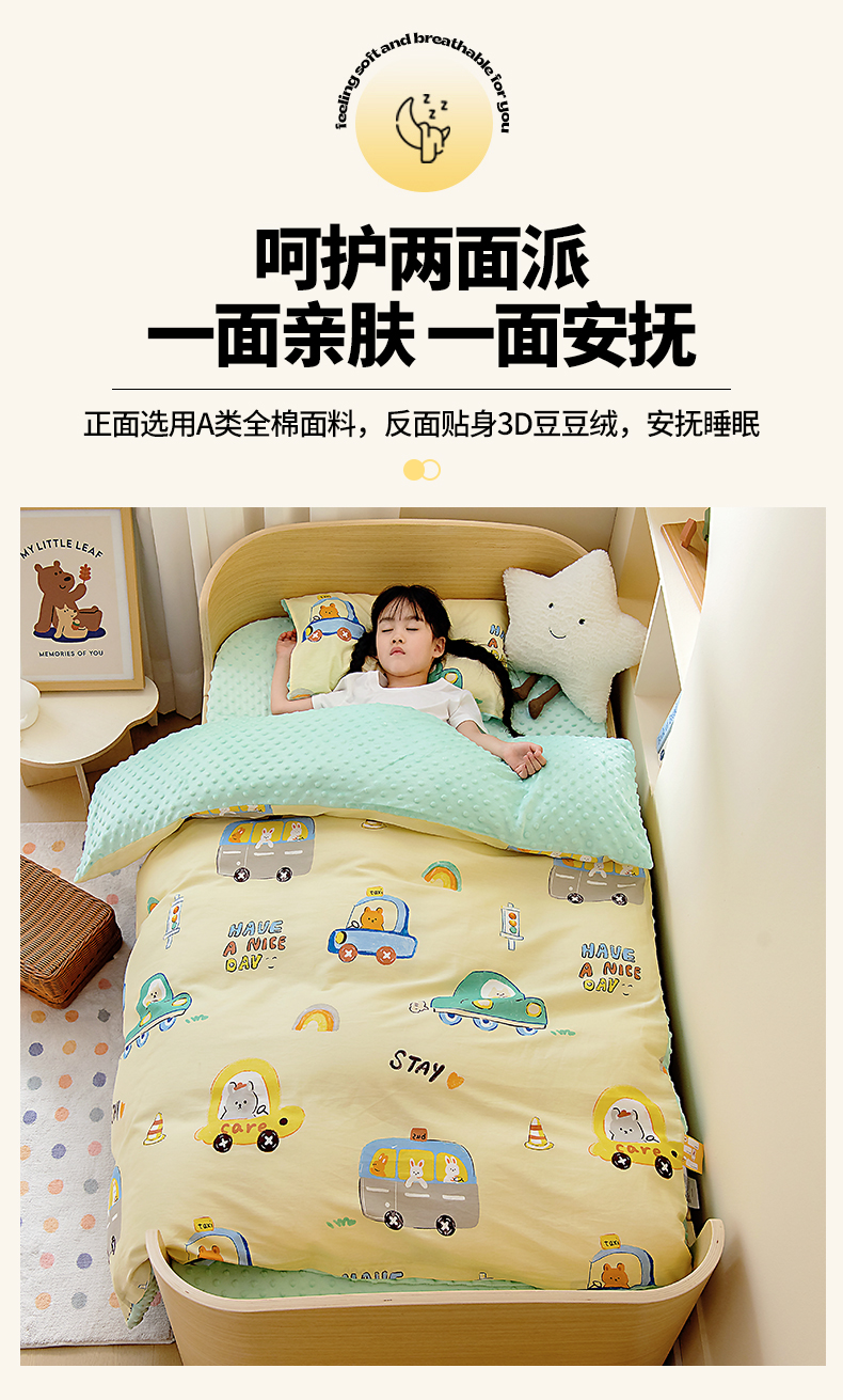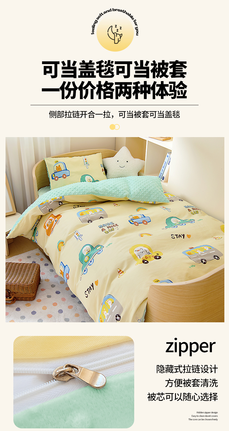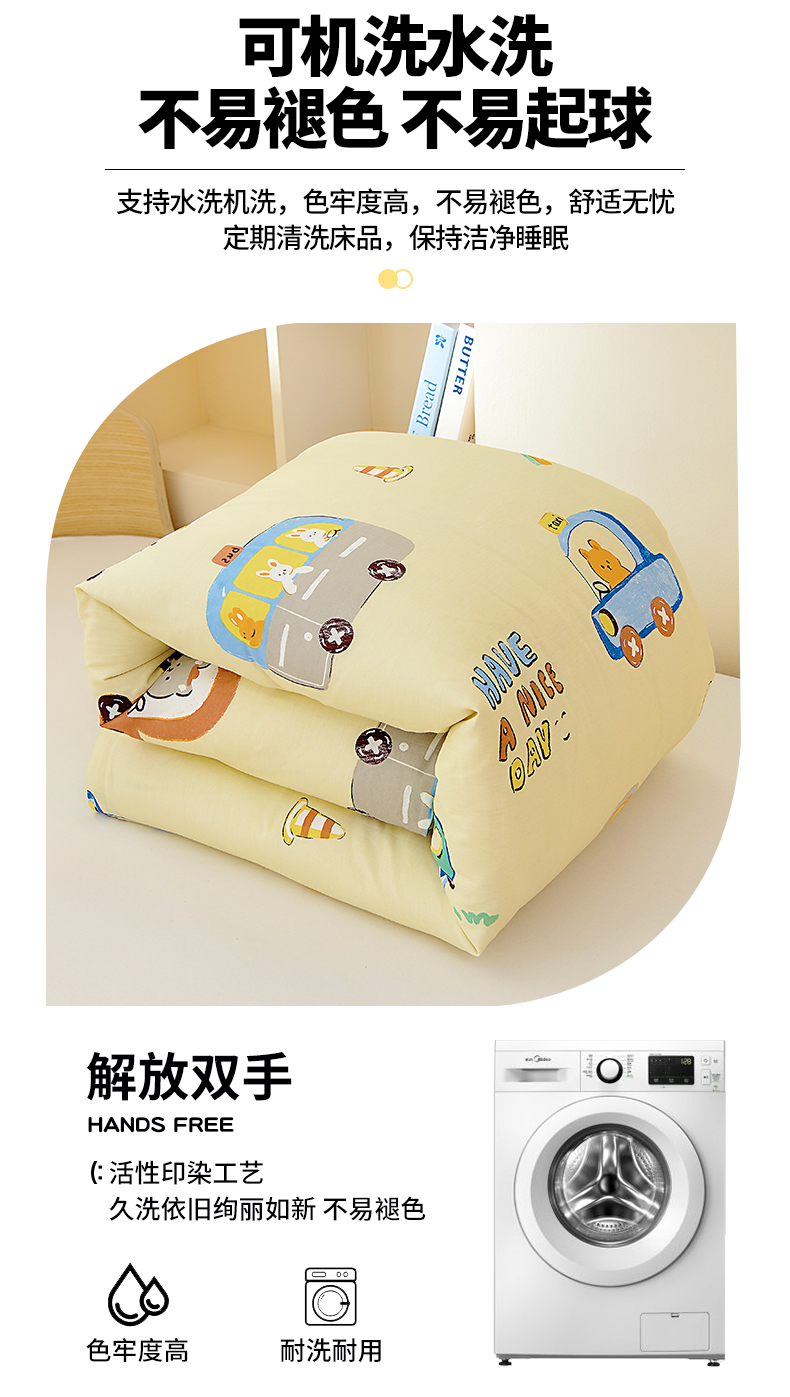 • 91家纺网 家纺一手货源 找家纺 鱼宝 2025新款可拆洗全棉豆豆被套被芯 汽车乐园