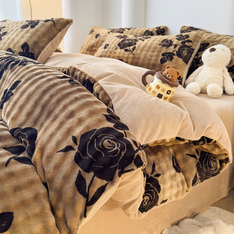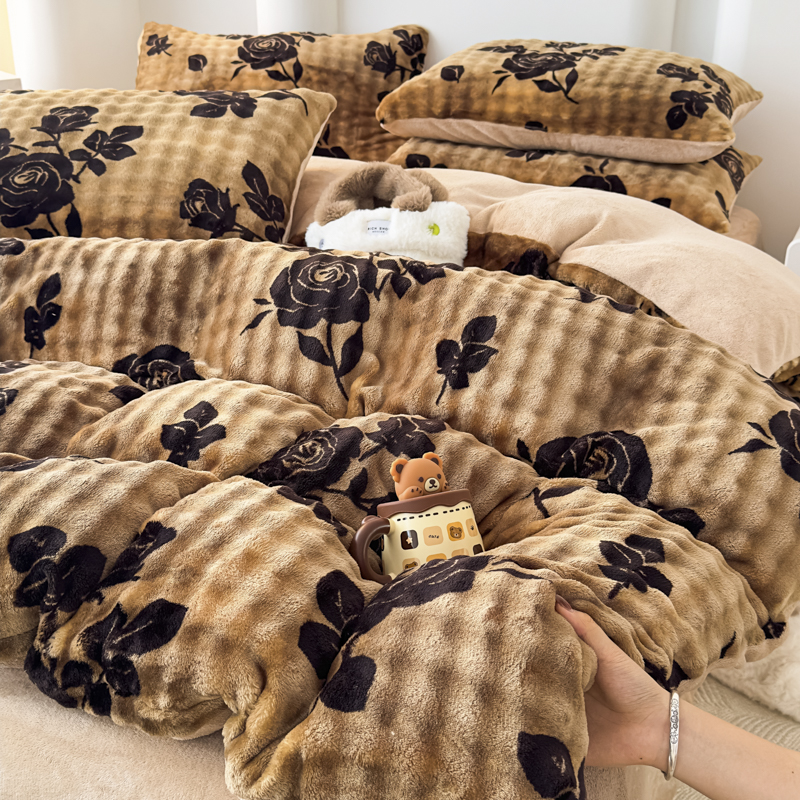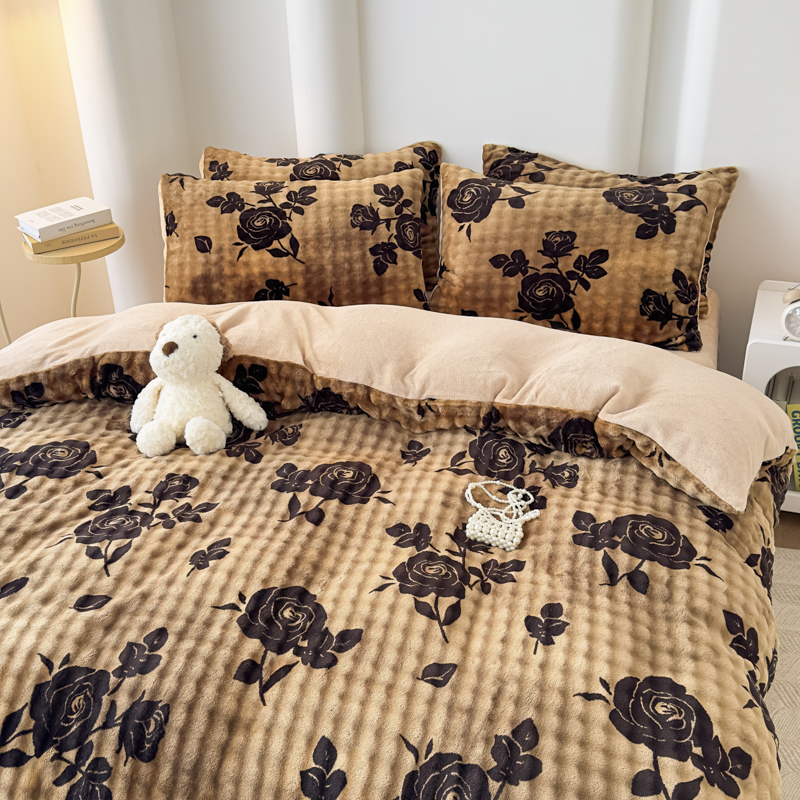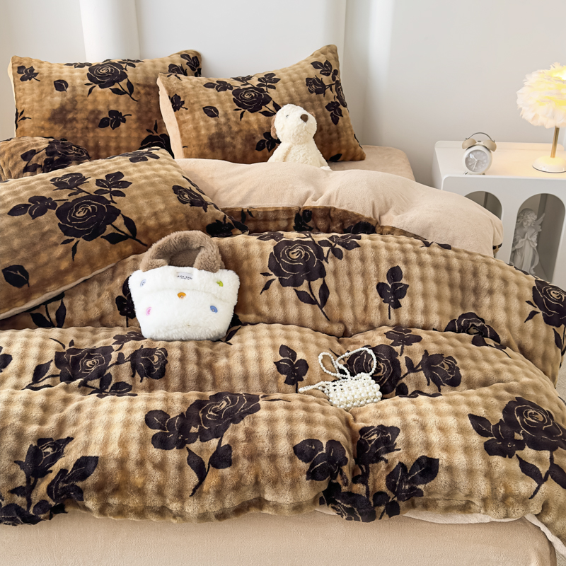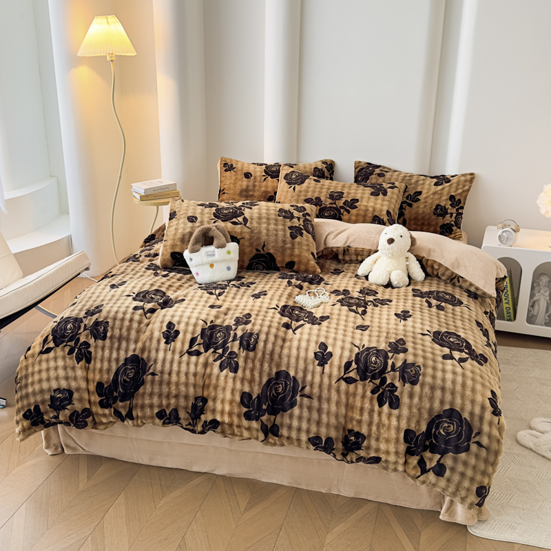 郝媳妇家纺 2025新款泡泡绒牛奶绒四件套 玫瑰情缘