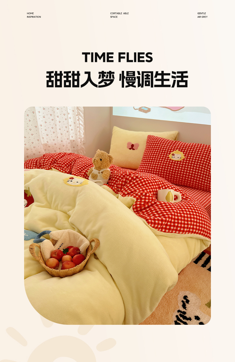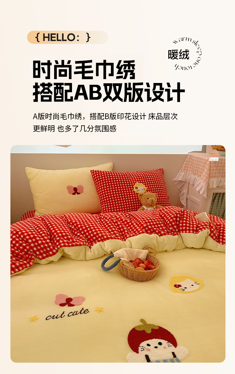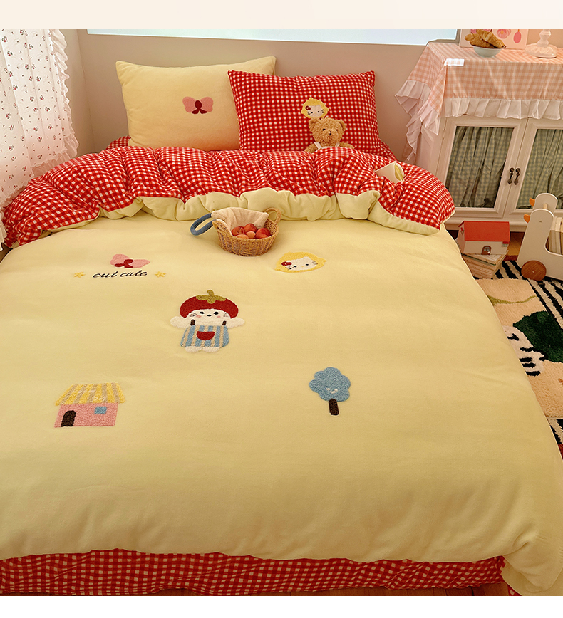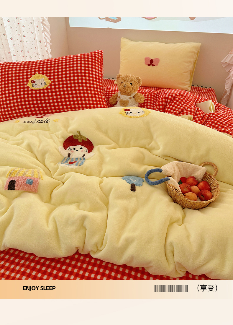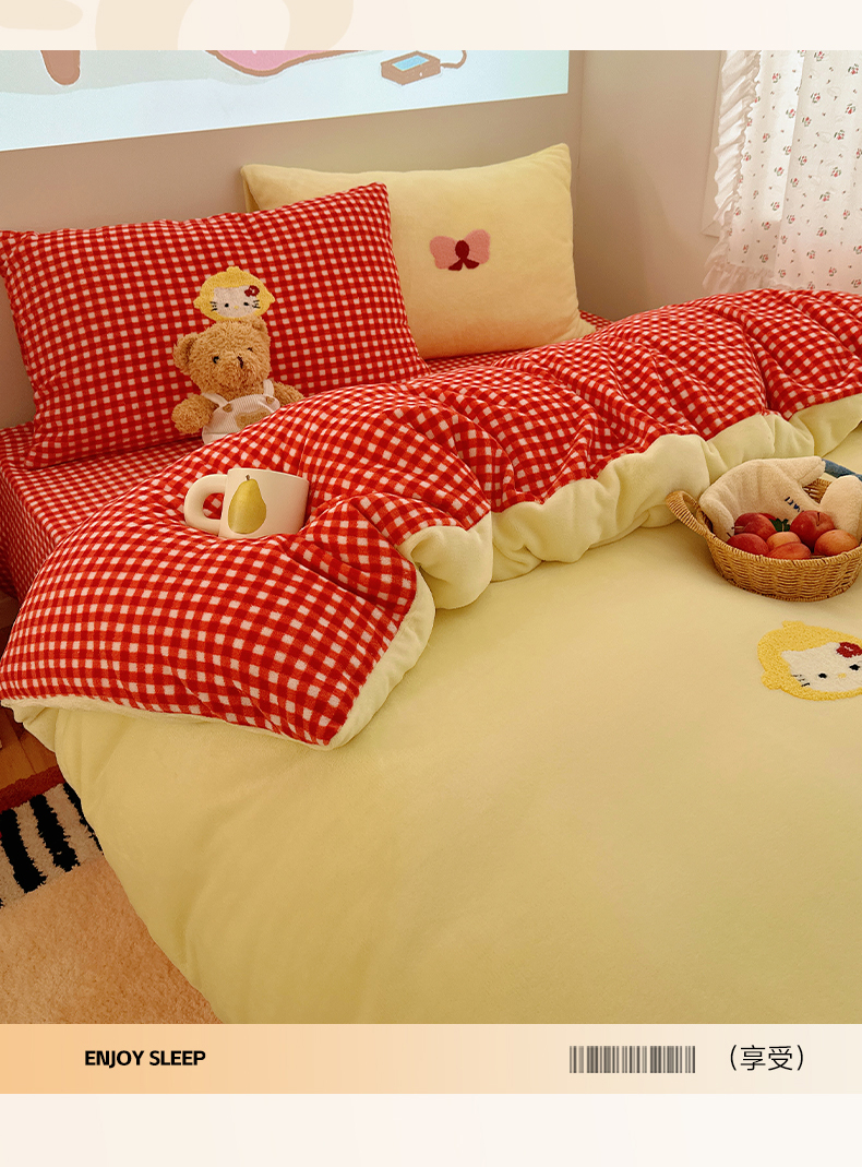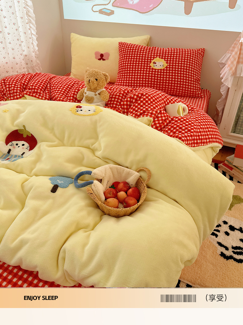 当前位置: 91家纺网 > 商品网购 > 床品套件 > 四件套 > 牛奶绒四件套 > 繁花家居 2025新款牛奶绒毛巾绣格子猫红格子苹果猫四件套 苹果猫
