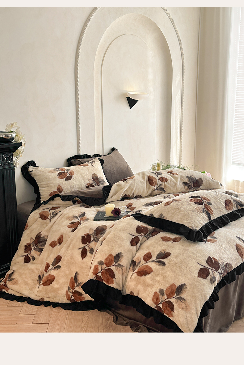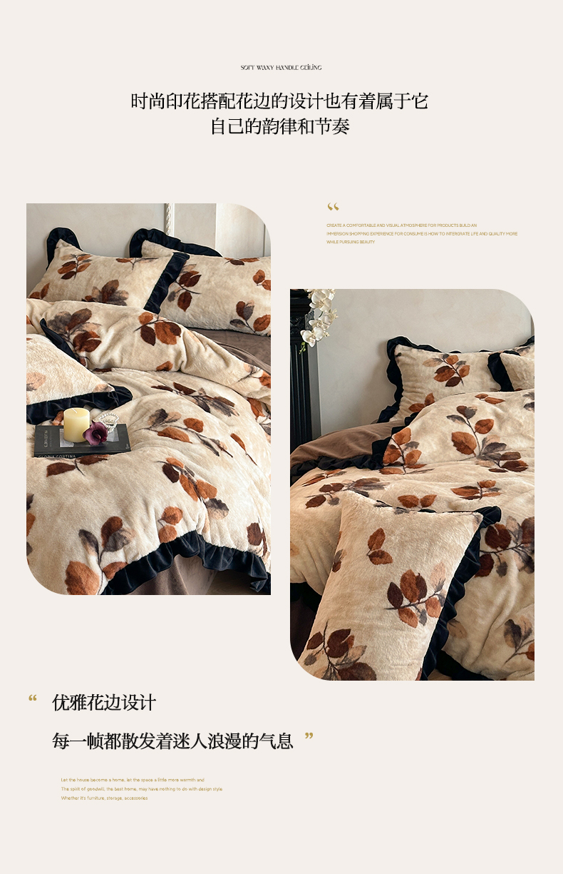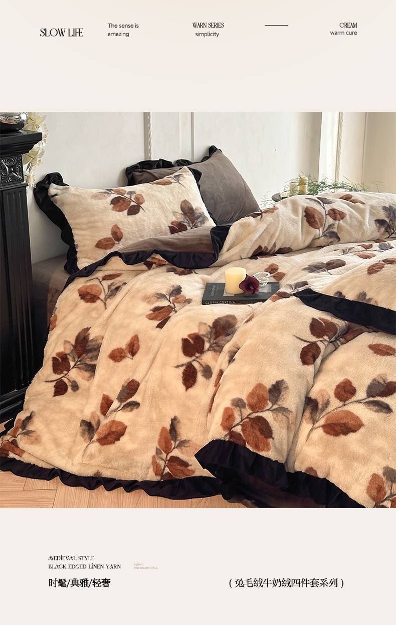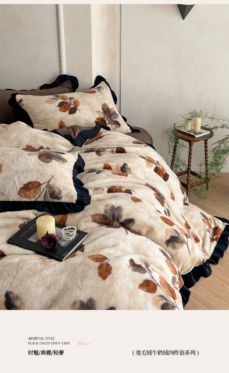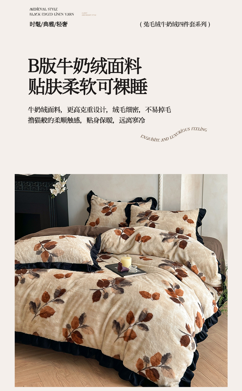 当前位置: 91家纺网 > 商品网购 > 床品套件 > 四件套 > 牛奶绒四件套 > 帝王家纺 2025冬季法式新款加厚兔毛绒牛奶绒四件套保暖珊瑚绒 晚叶-灰