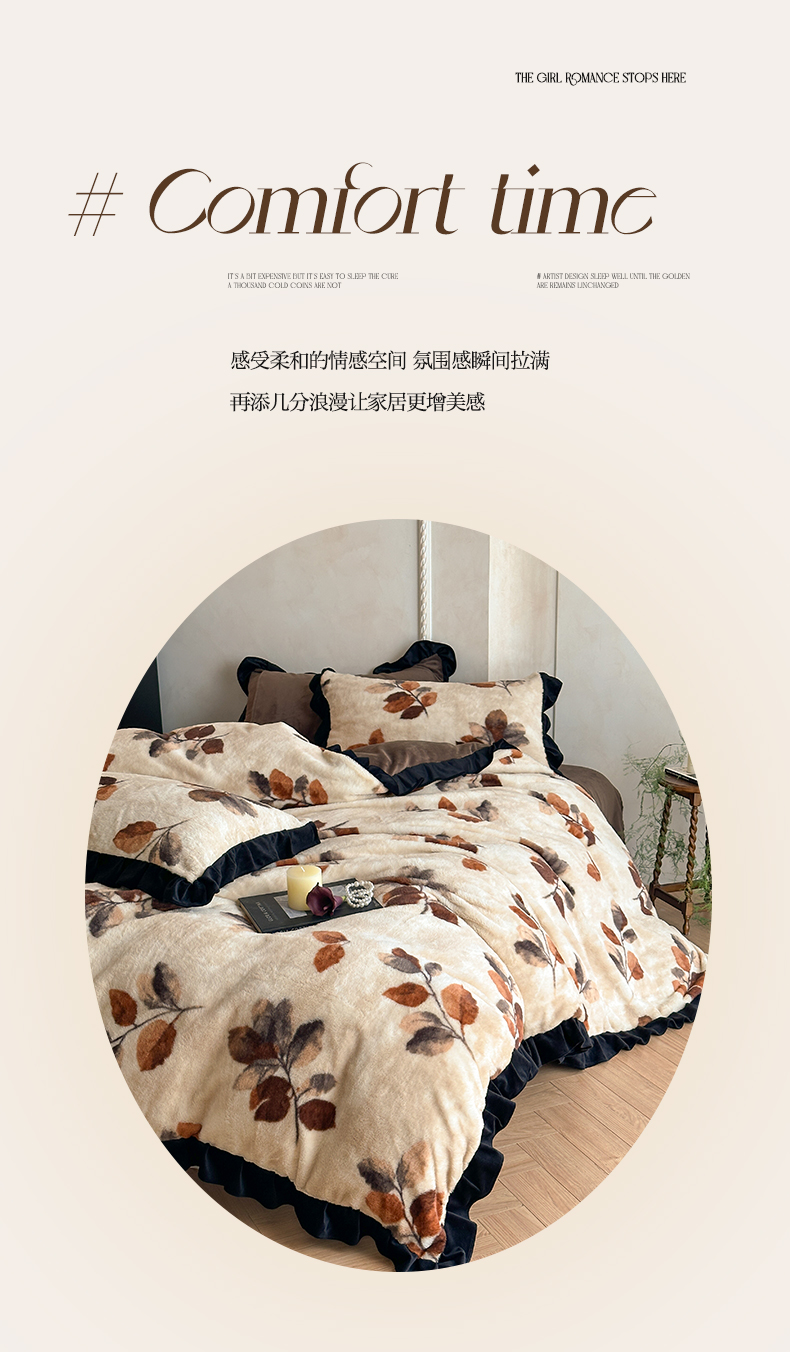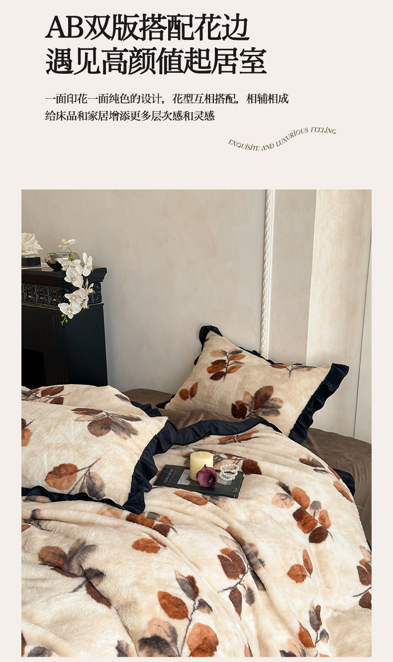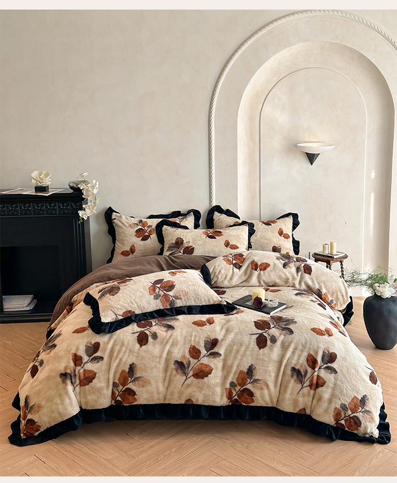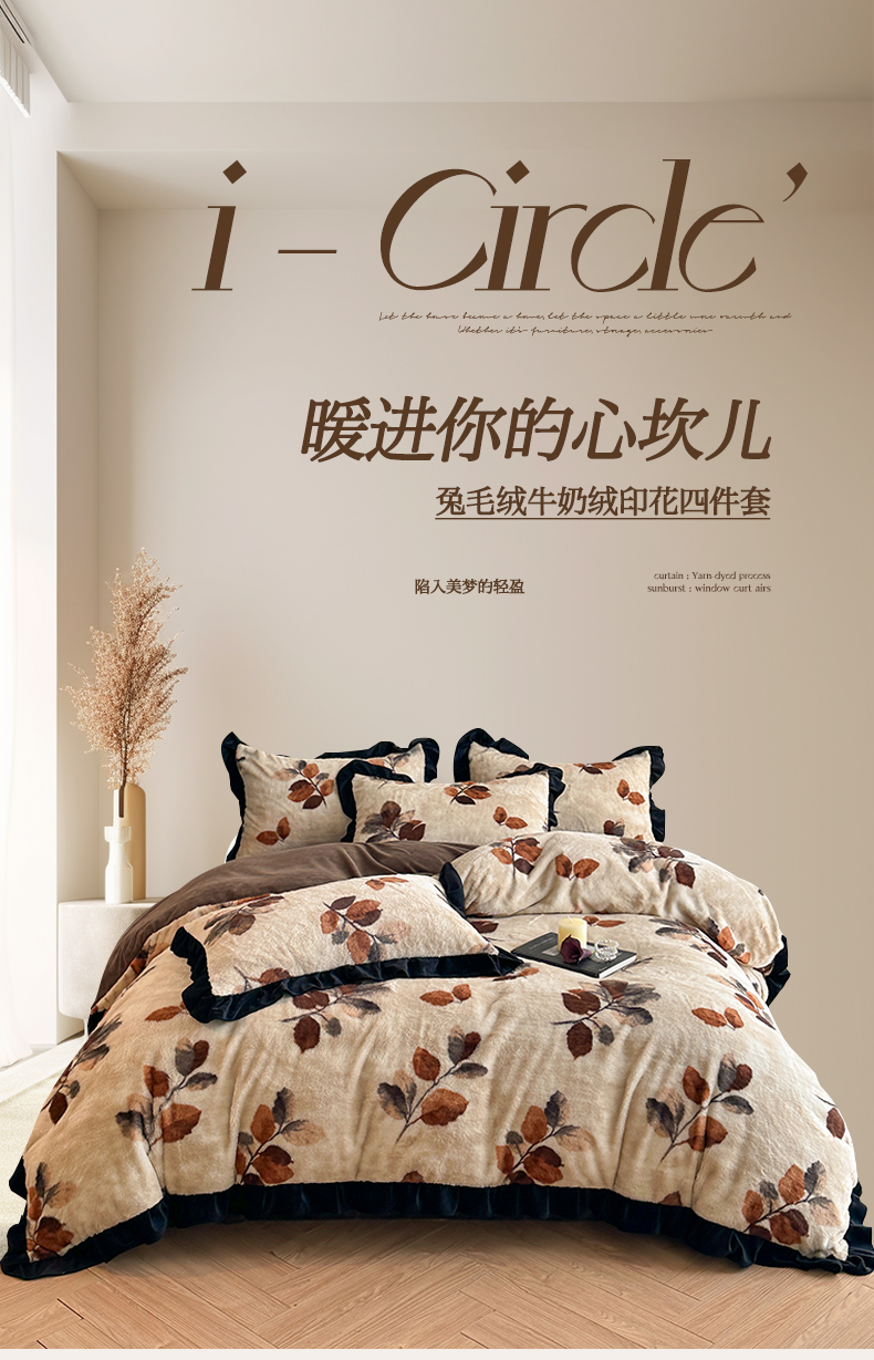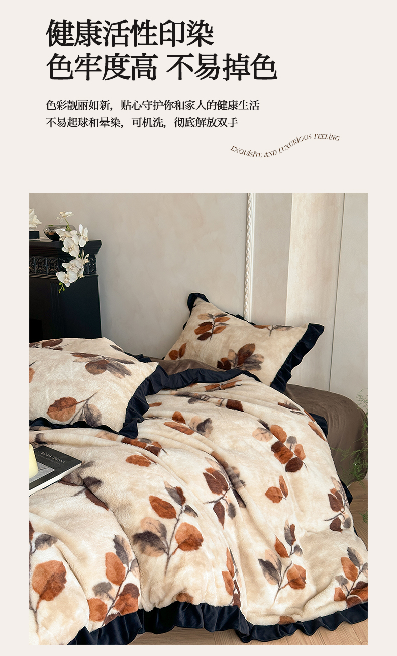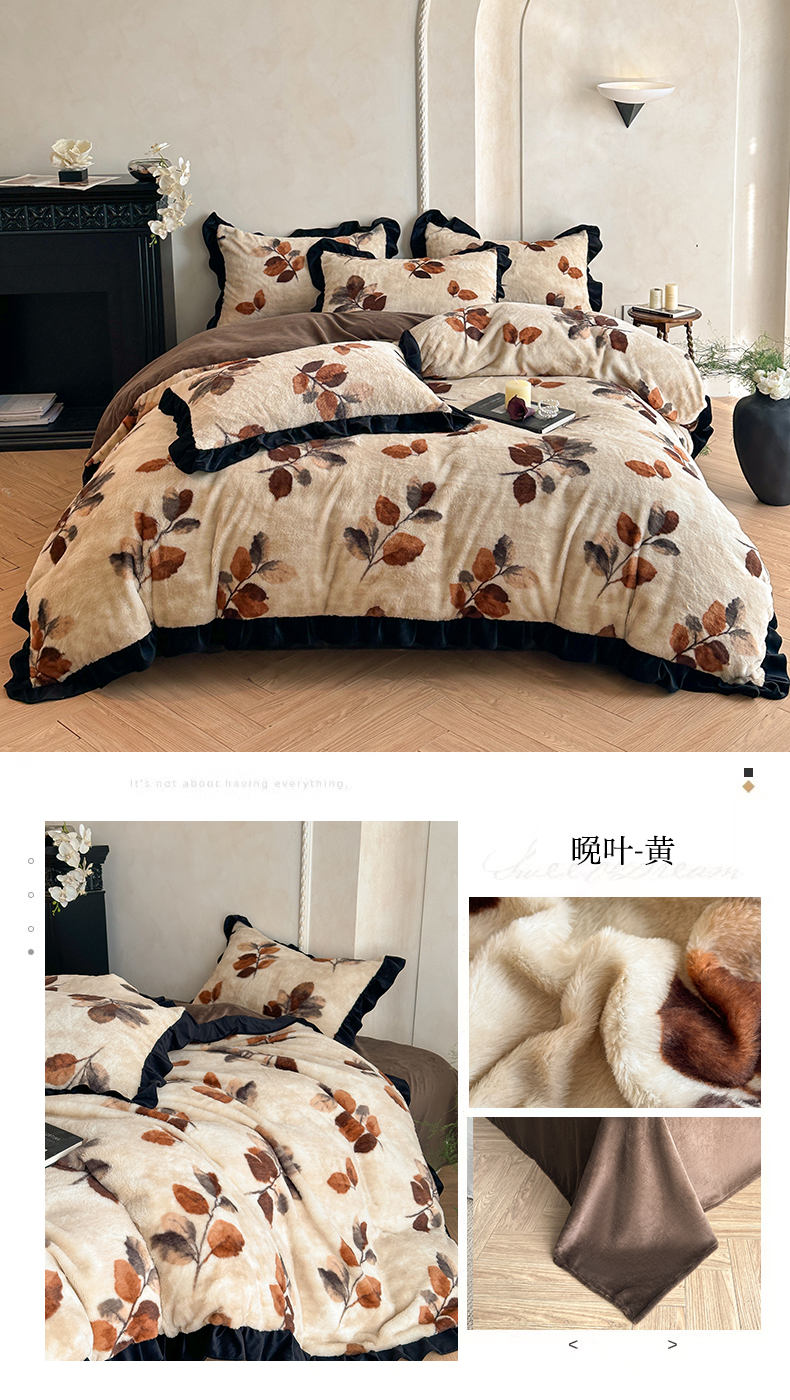 当前位置: 91家纺网 > 商品网购 > 床品套件 > 四件套 > 牛奶绒四件套 > 帝王家纺 2025冬季法式新款加厚兔毛绒牛奶绒四件套保暖珊瑚绒 晚叶-灰