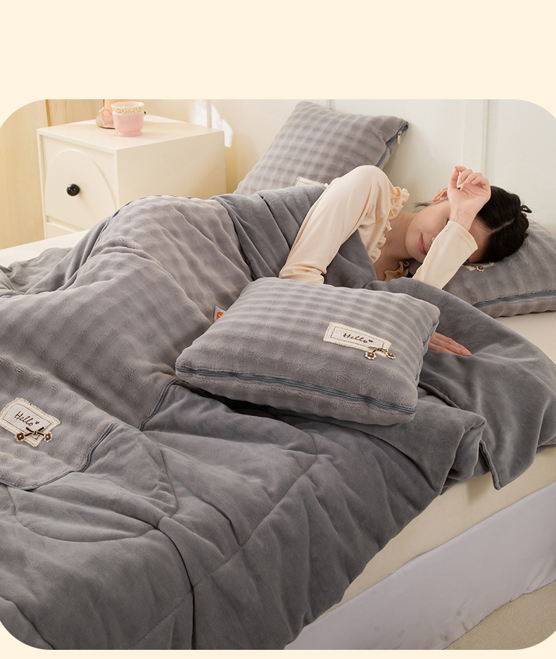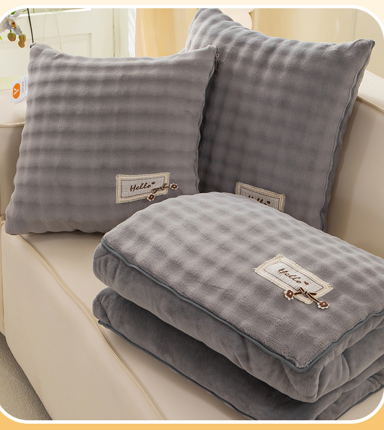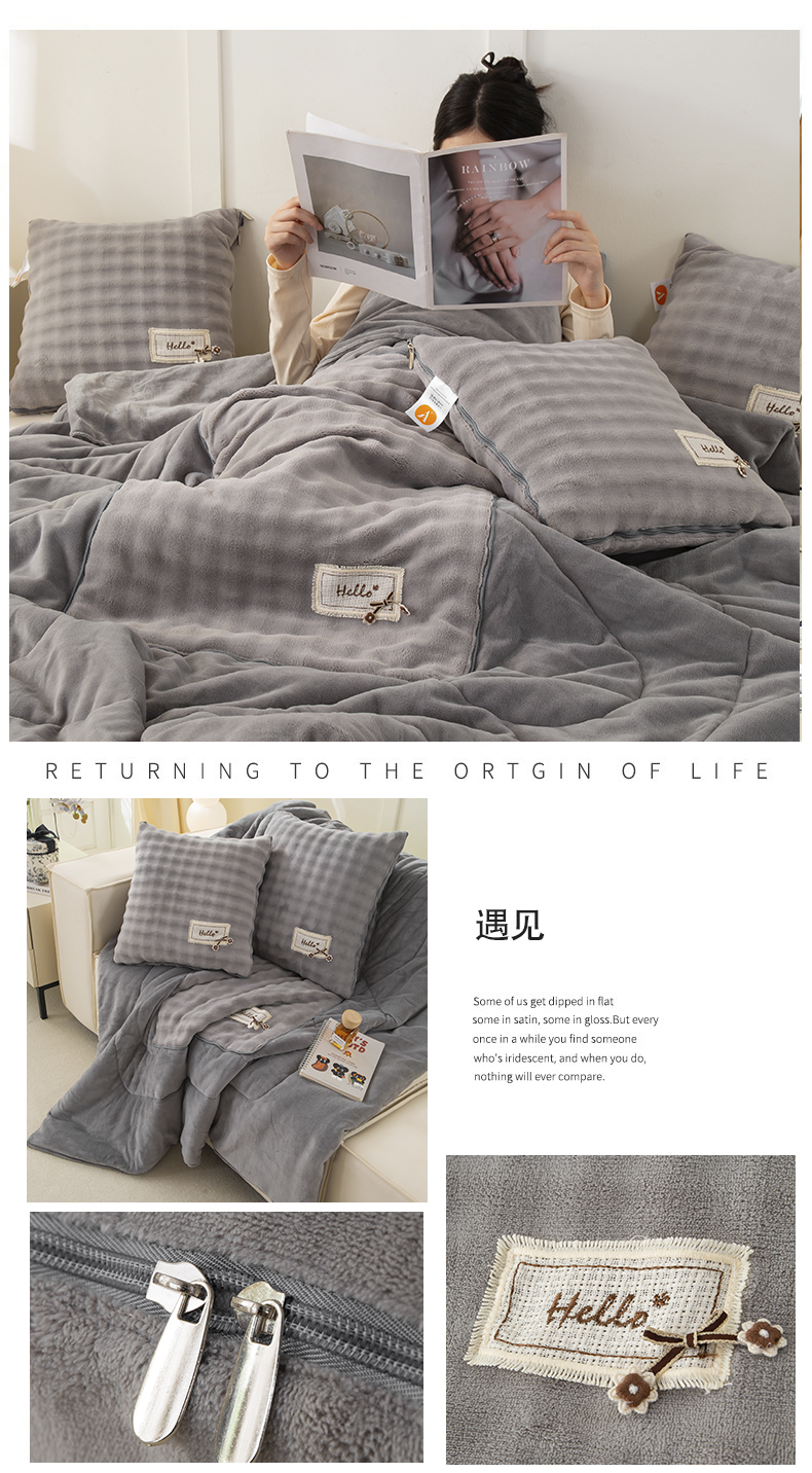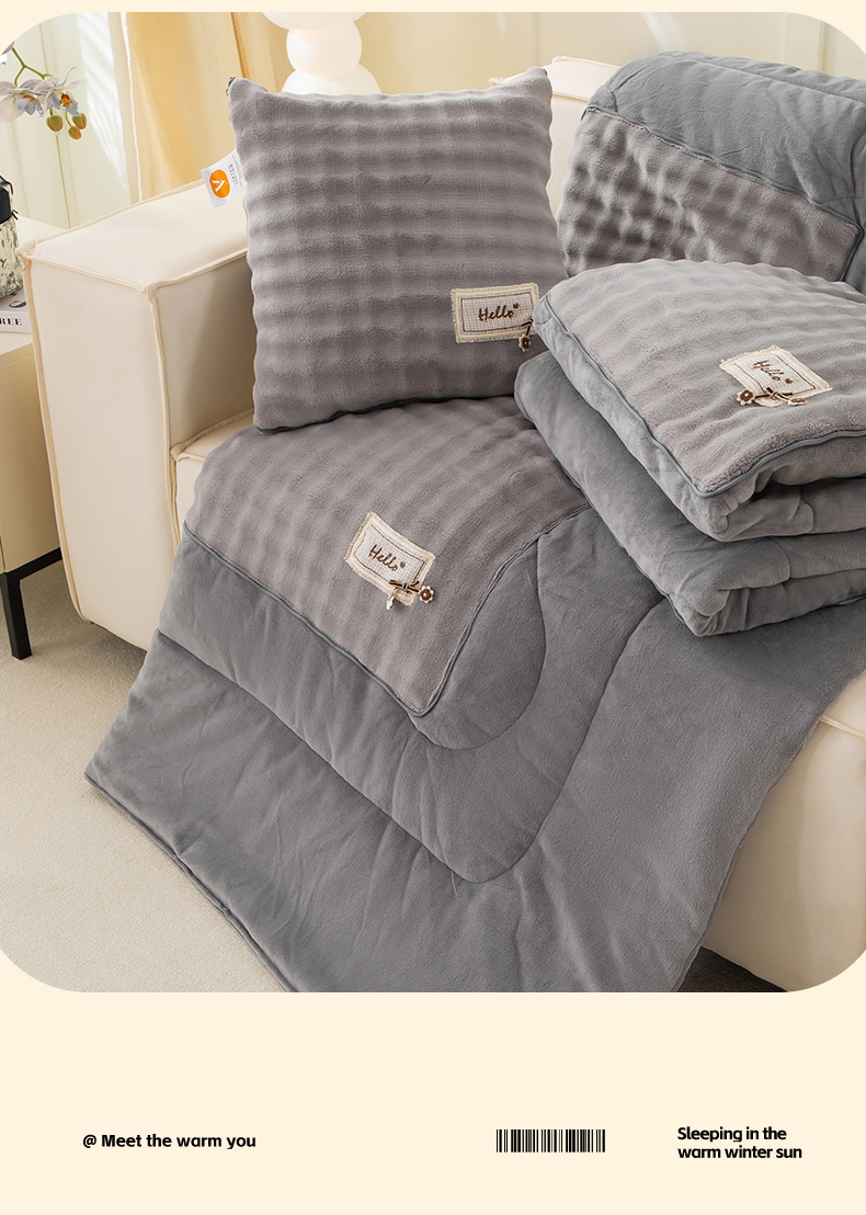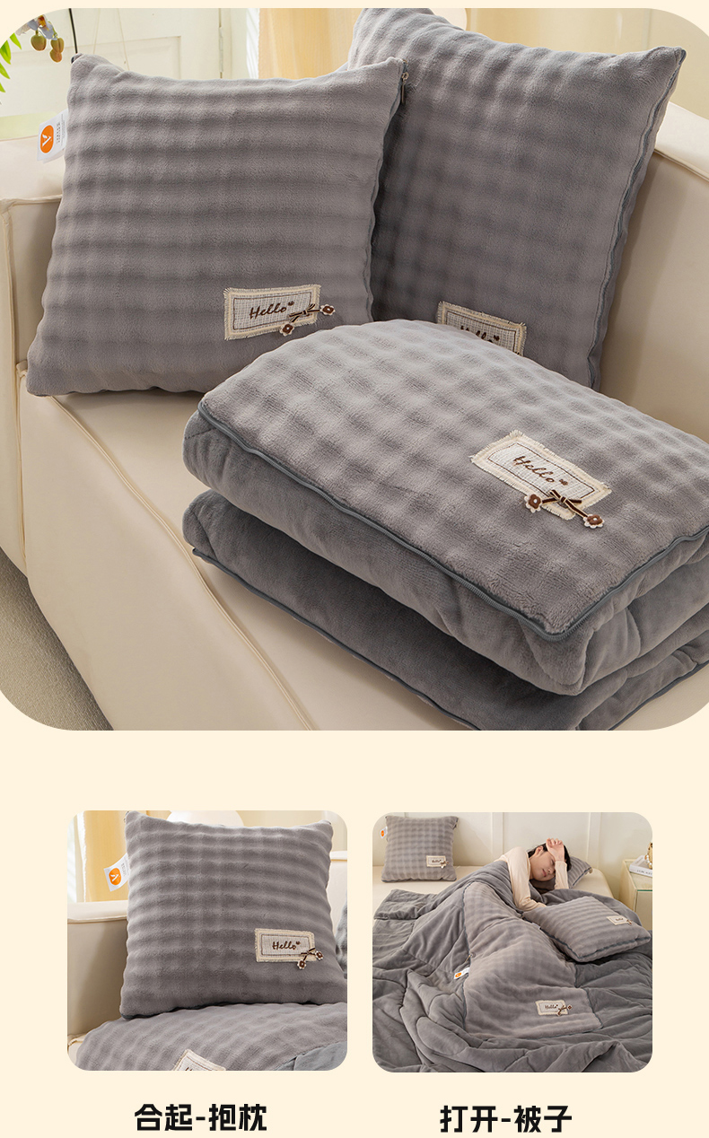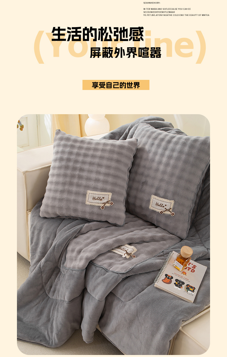 商品名称:多今家纺 2025新款牛奶绒贴布抱枕被子-遇见系列 遇见-月光灰
