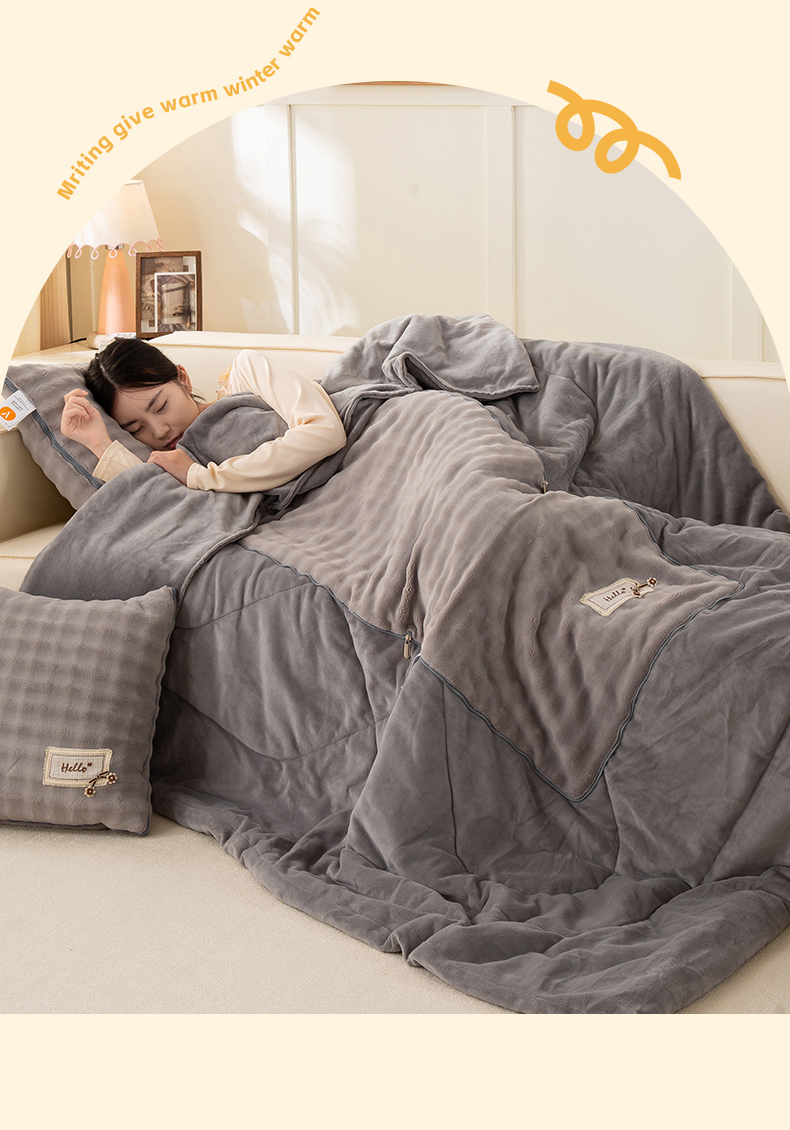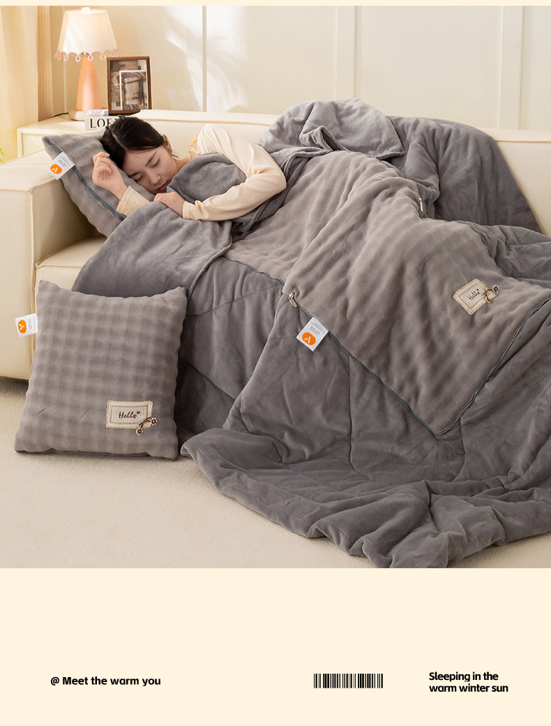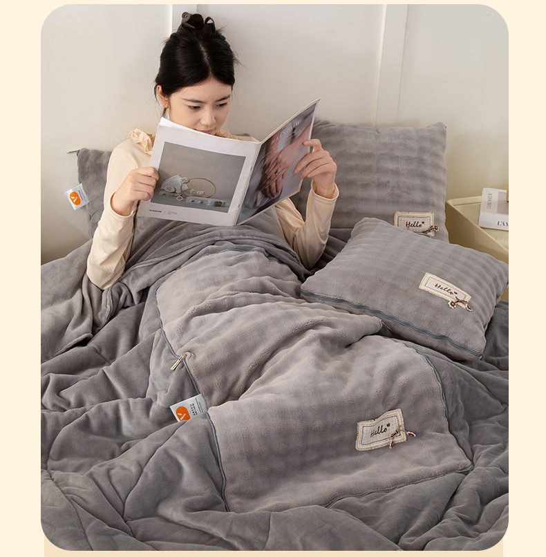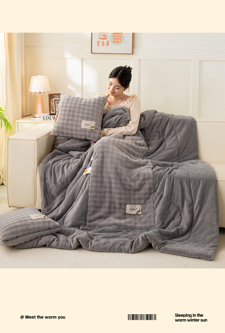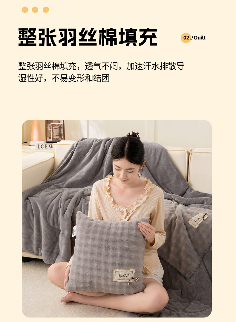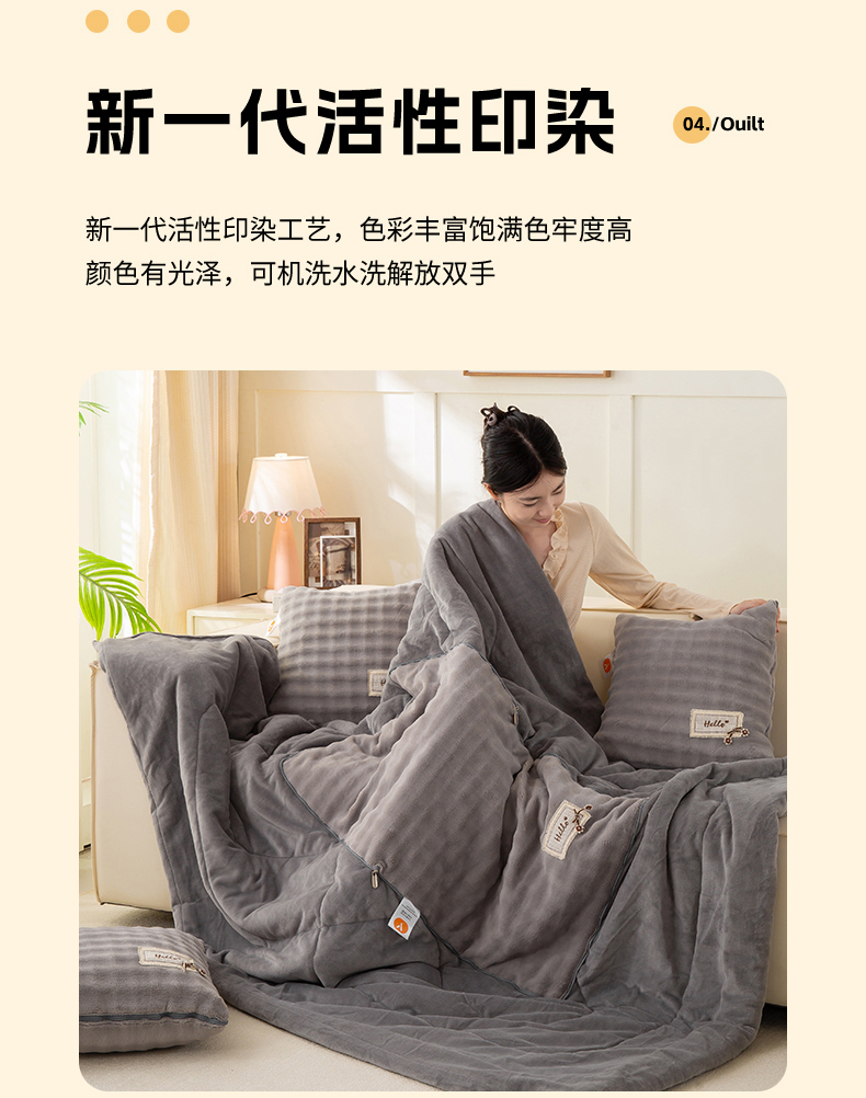 商品名称:多今家纺 2025新款牛奶绒贴布抱枕被子-遇见系列 遇见-月光灰