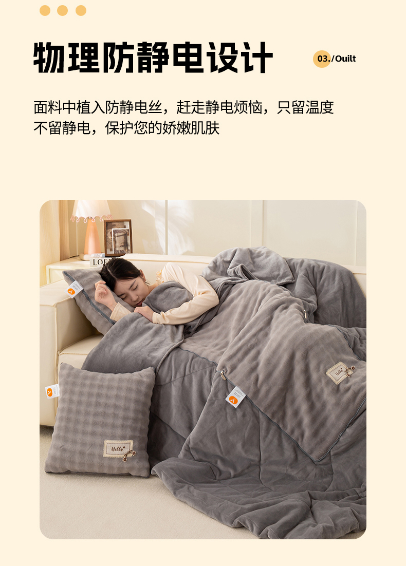 多今家纺 2025新款牛奶绒贴布抱枕被子-遇见系列 遇见-月光灰