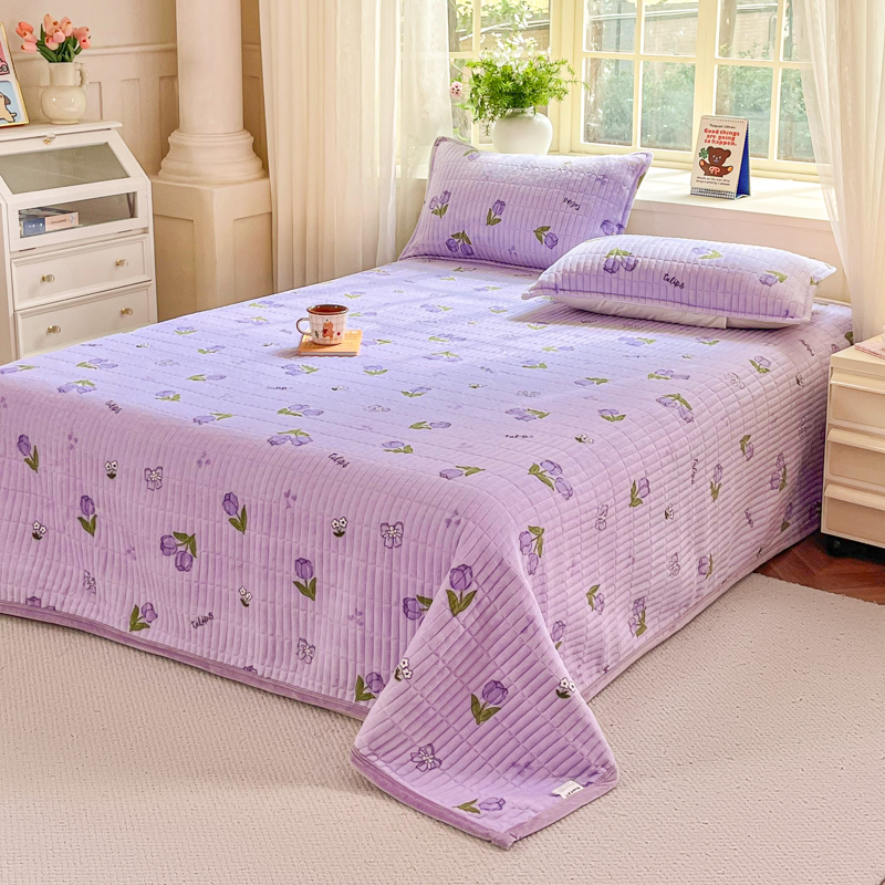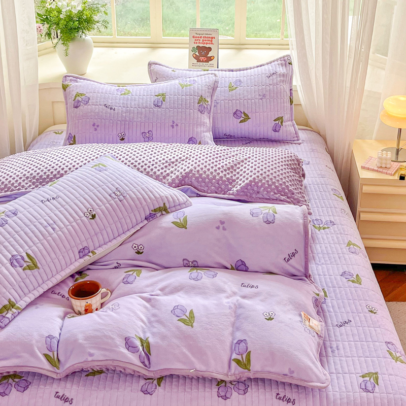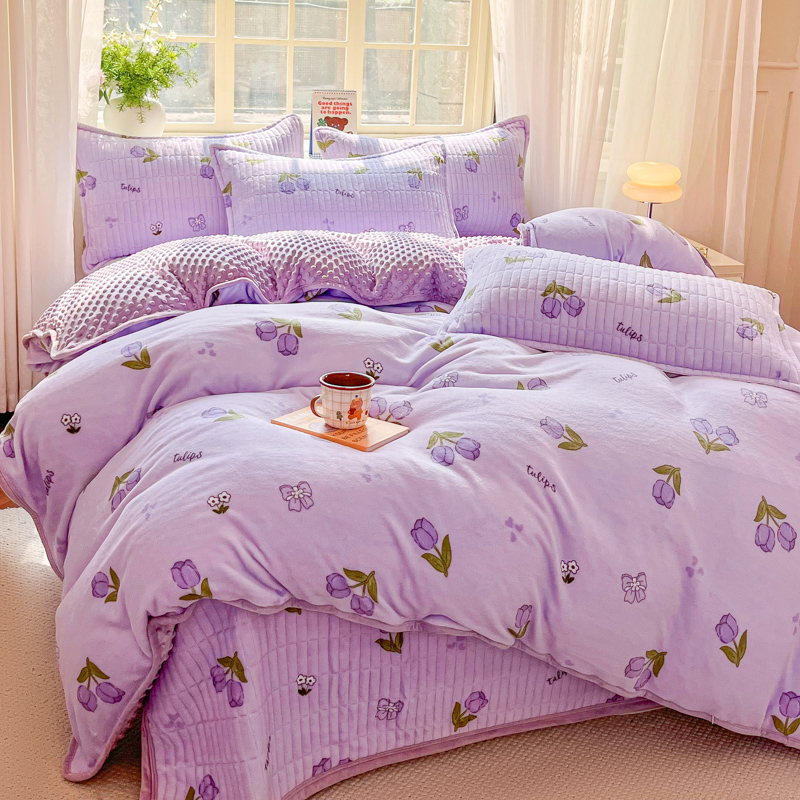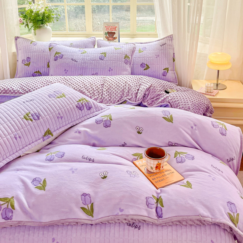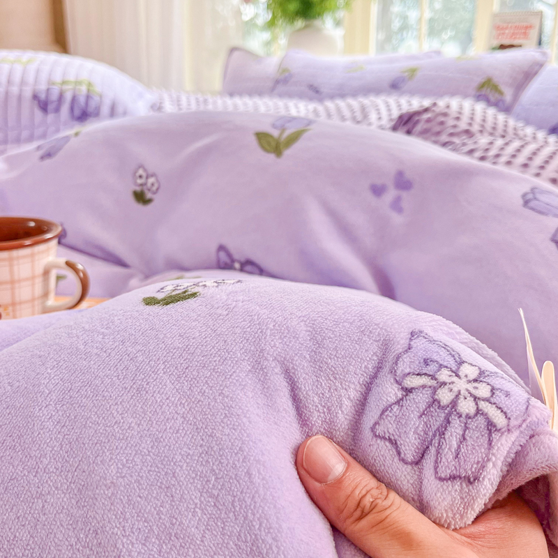尚美家纺 2025冬季新品豆豆绒高克重床盖被套四件套 紫色郁金香