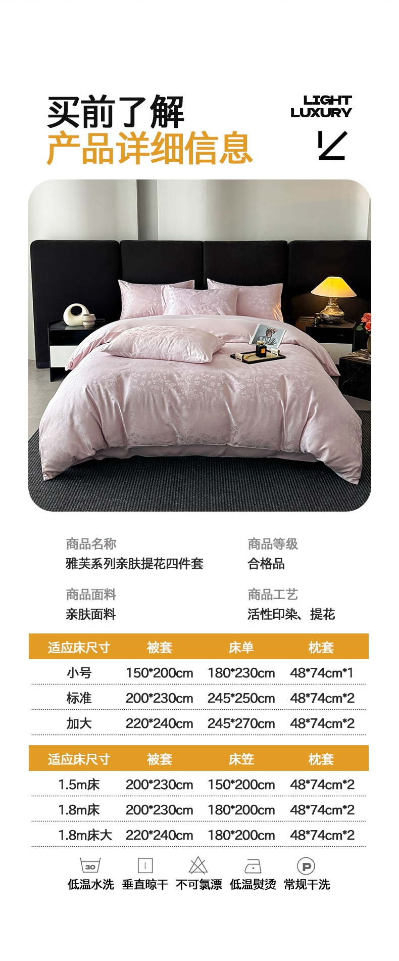 商品名称:(总)置顶家纺 2025新款亲肤提花系列四件套-雅芙