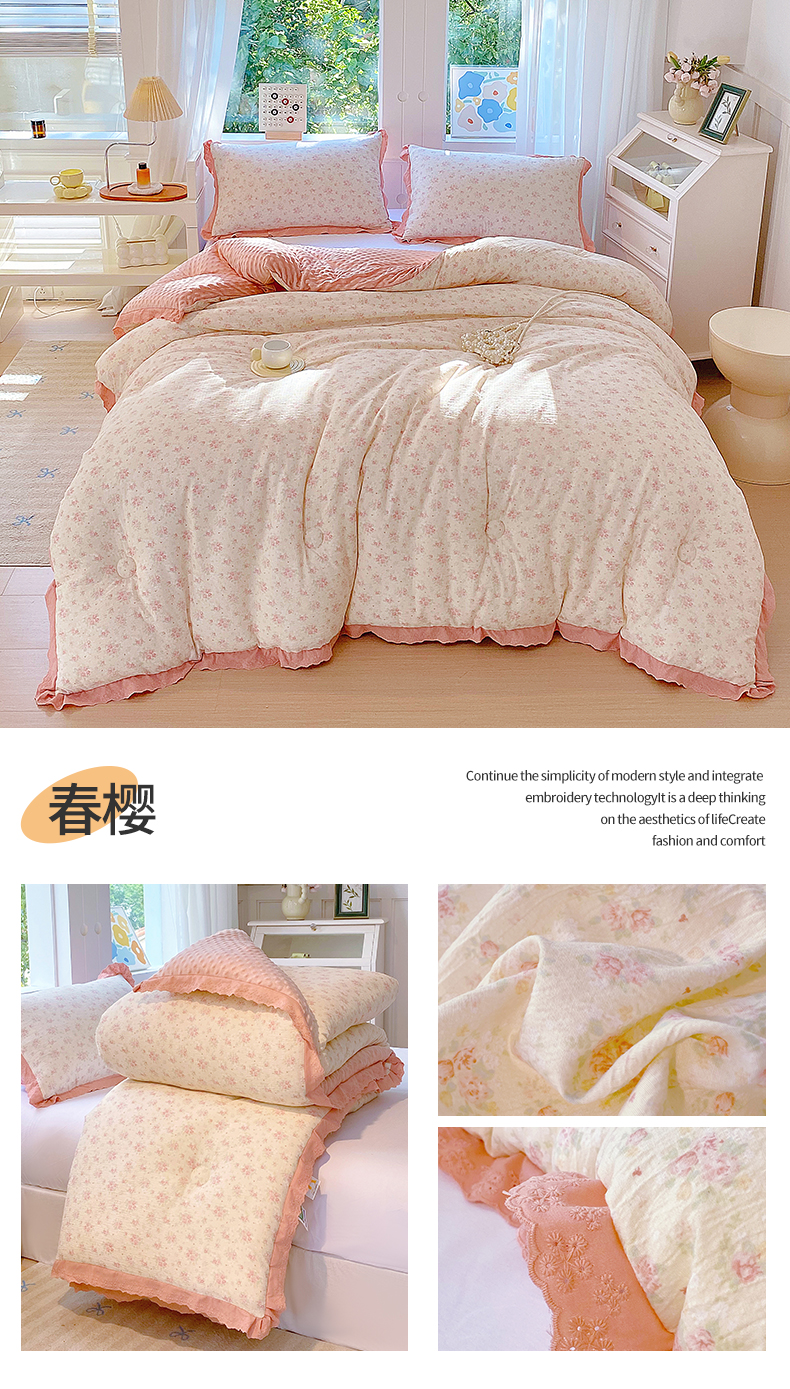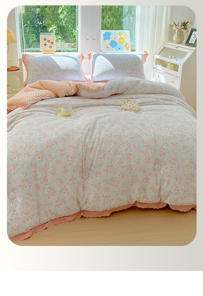 • 91家纺网 家纺一手货源 找家纺 (总)梵克保罗 2026春夏新款雪纺床盖夏被夏凉被空调被四件套单夏被床盖三件套,淡米色,奶茶色,嫩芽绿,仙气紫,玉芙蓉