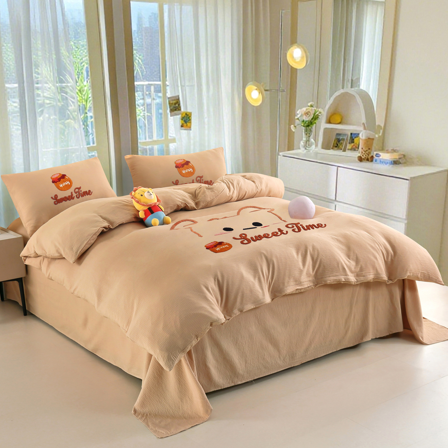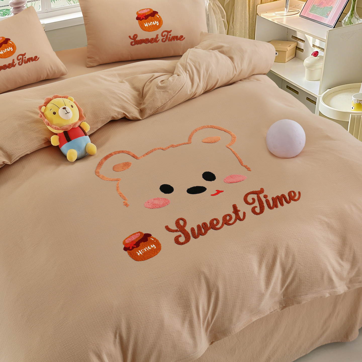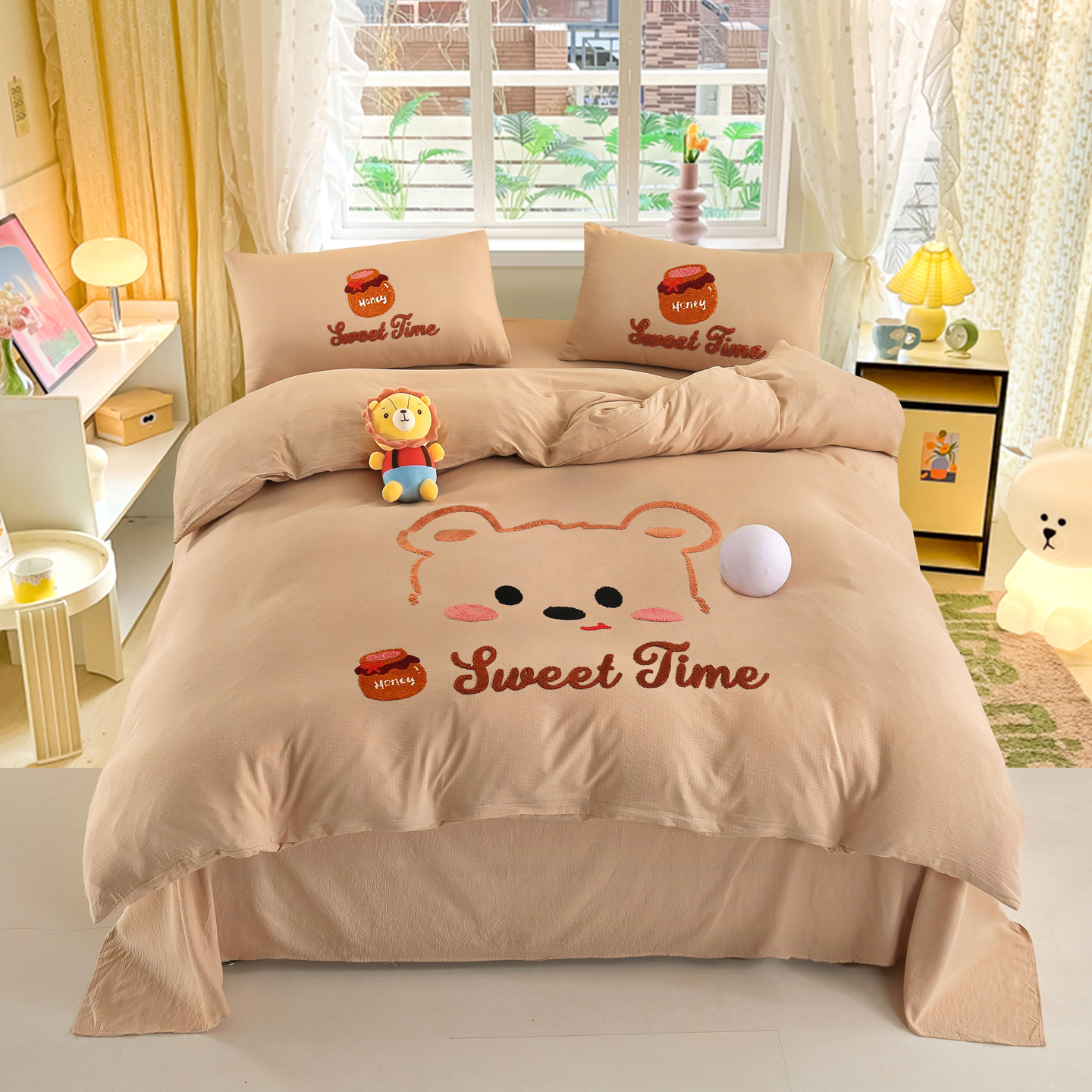 当前位置: 91家纺网 > 商品网购 > 床品套件 > 四件套 > 毛巾绣四件套 > 恋之语 2025新款皱皱纱木棉毛巾绣四件套及单被套系列-俏皮熊 俏皮熊-浅咖