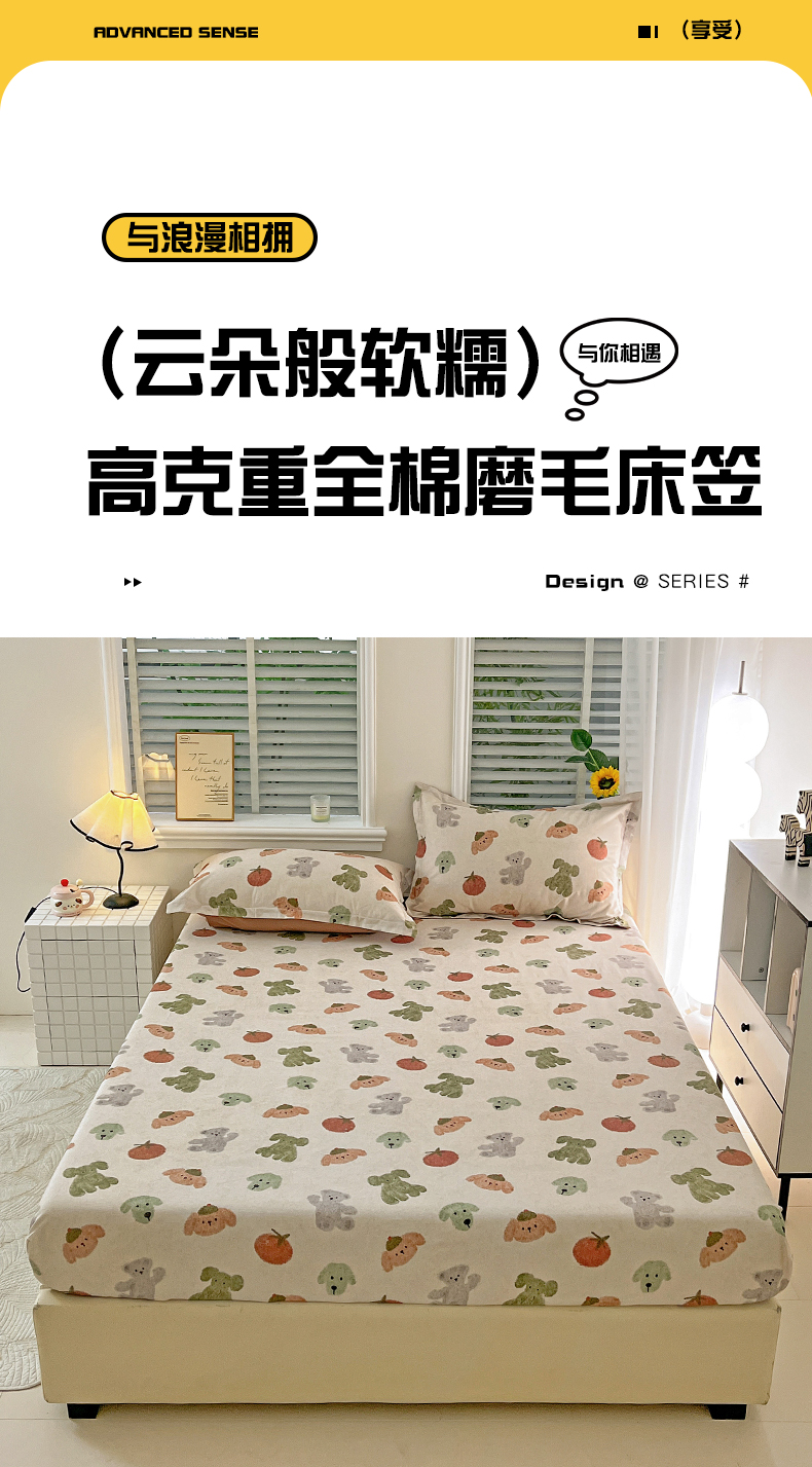 依庭 2025新款高克重全棉纯棉磨毛印花床笠单品床笠 柚见