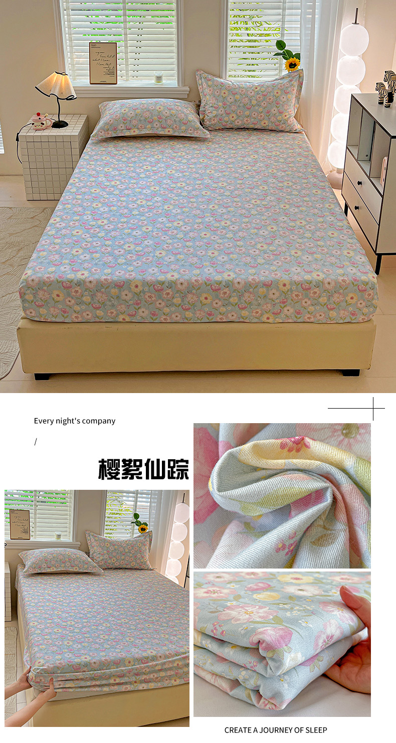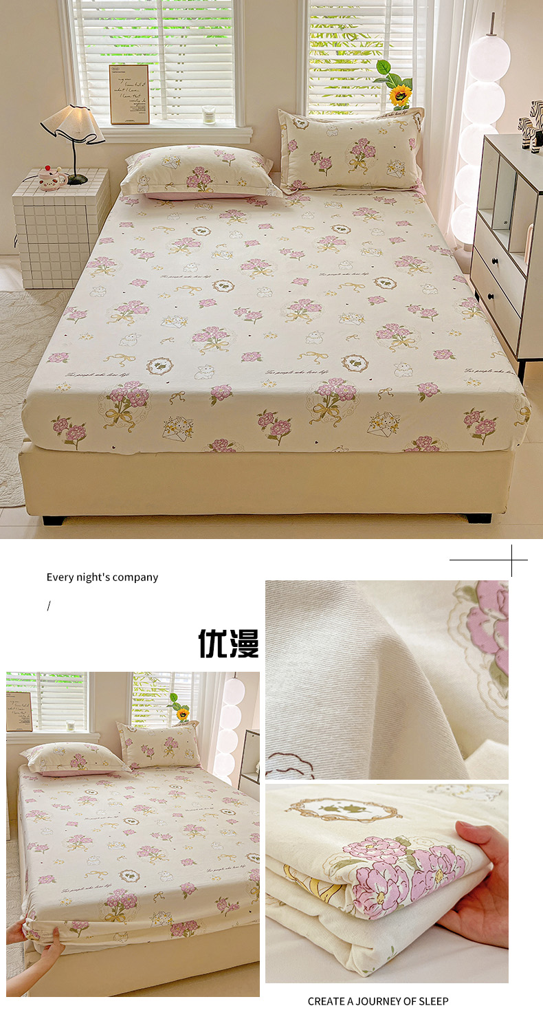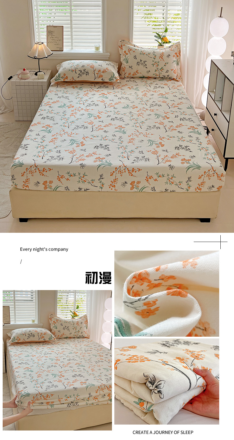 商品名称:依庭 2025新款高克重全棉纯棉磨毛印花床笠单品床笠 柚见
