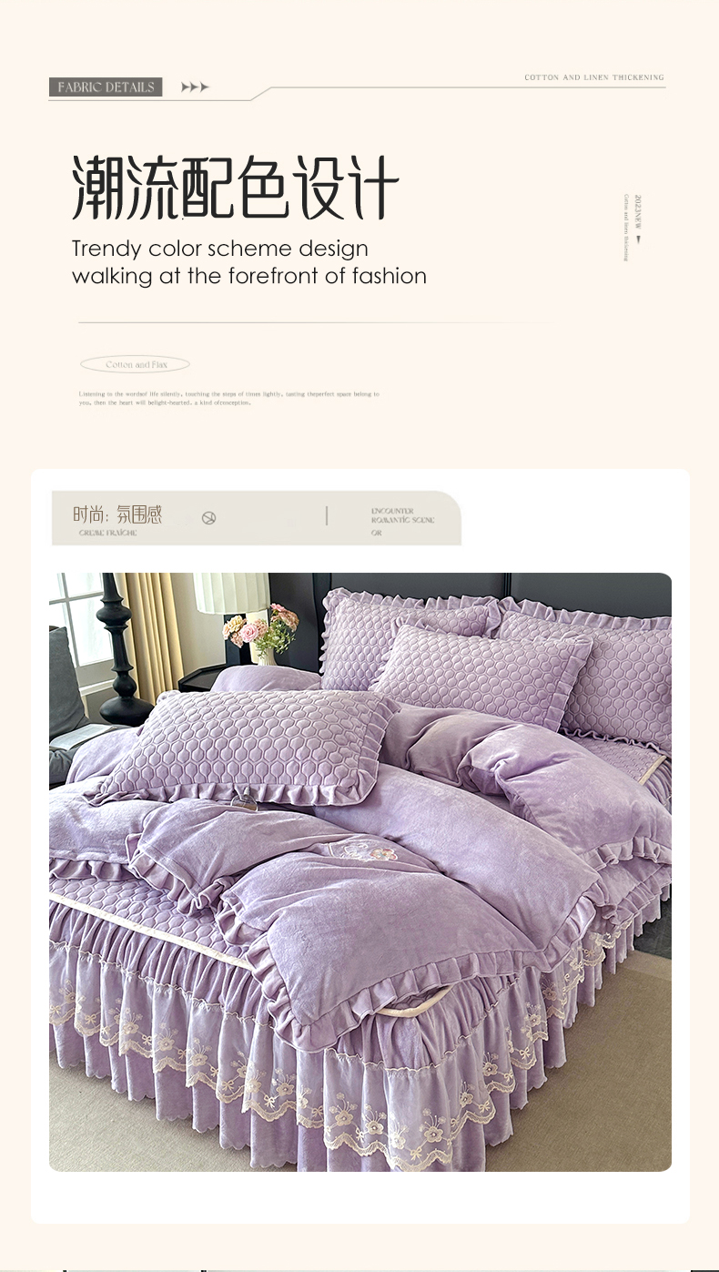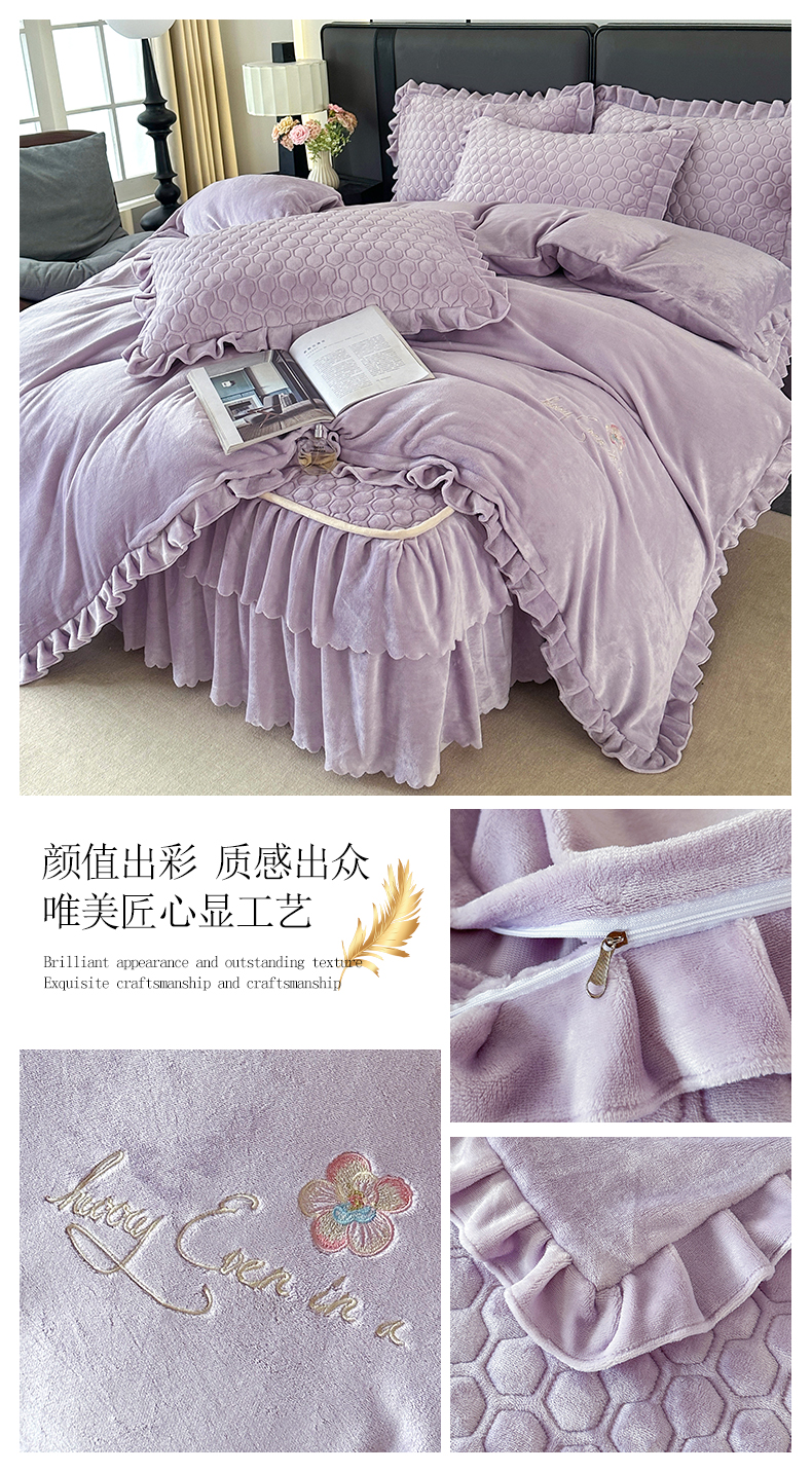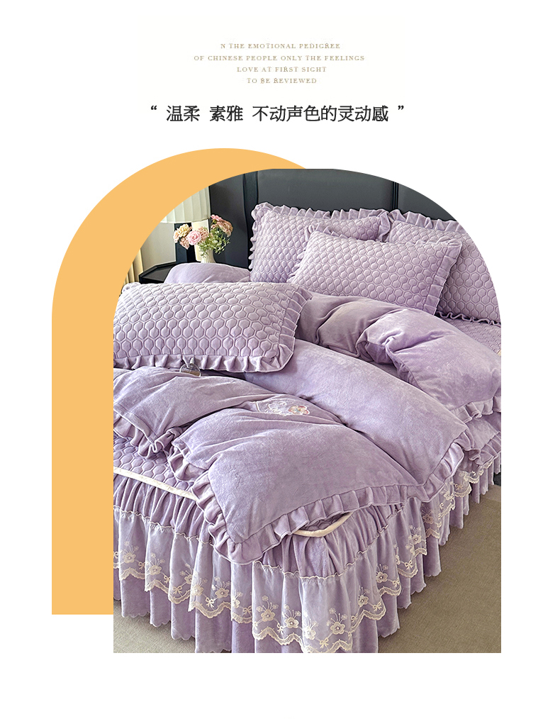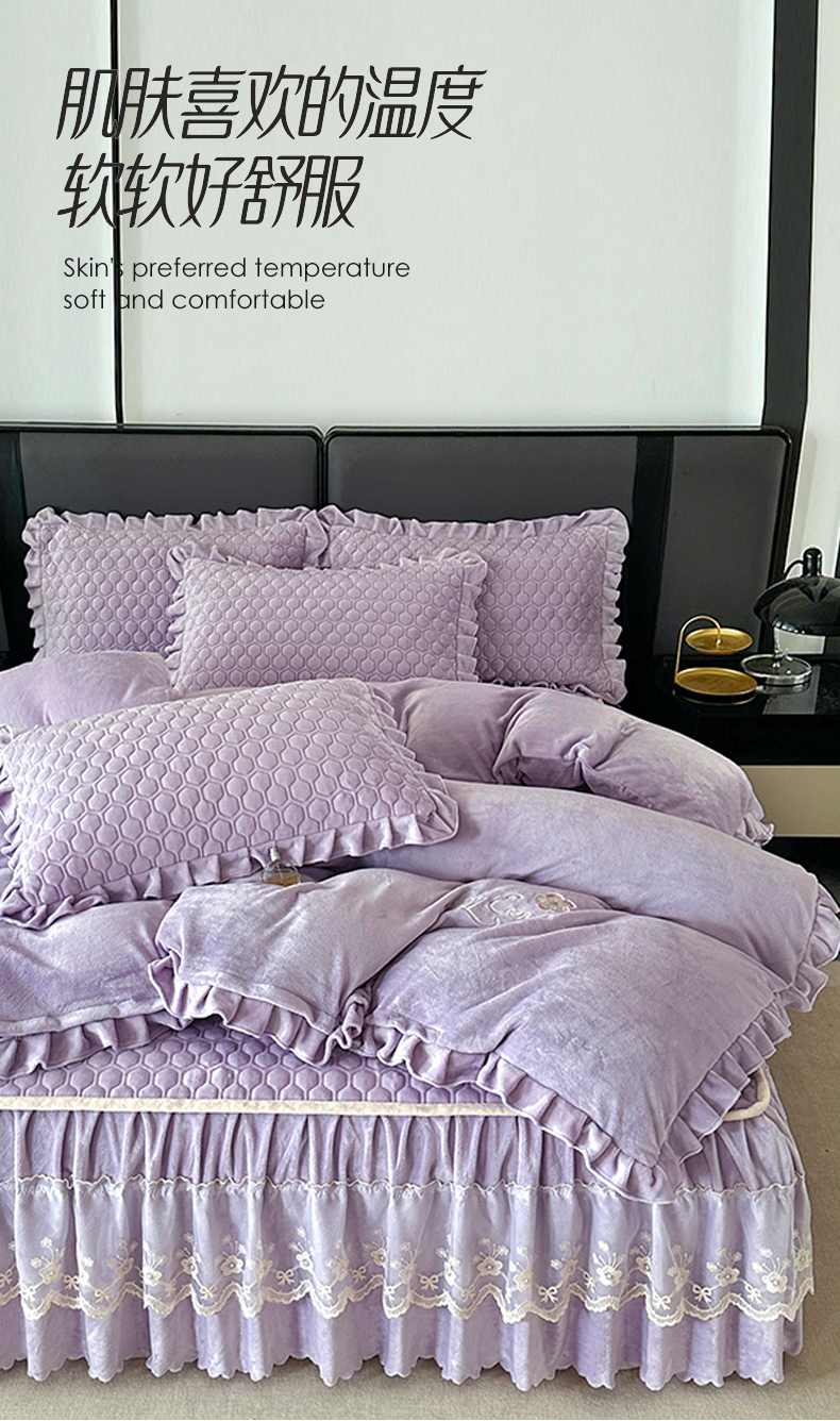 董韵家纺 2025新款牛奶绒刺绣夹棉床裙四件套系列(控价) 丝语-云紫