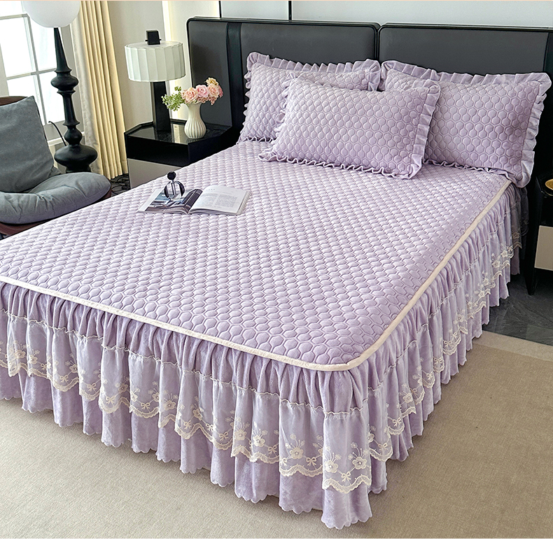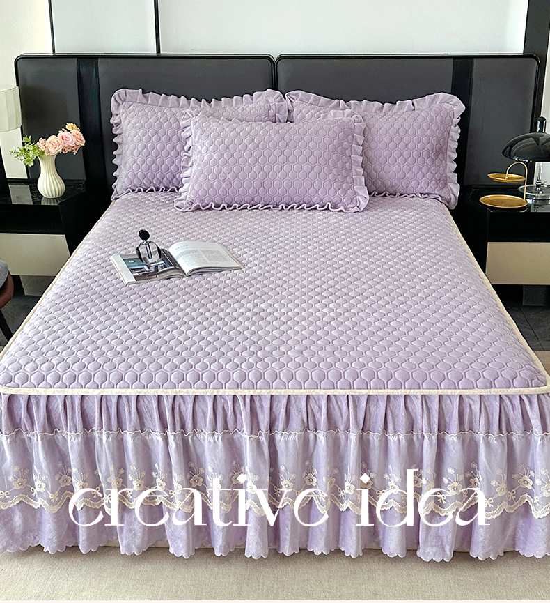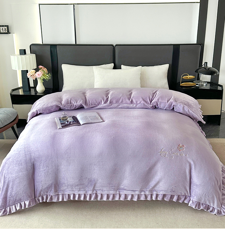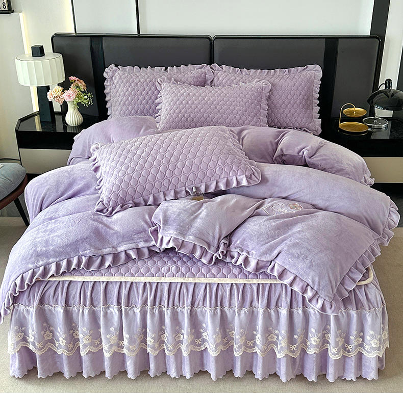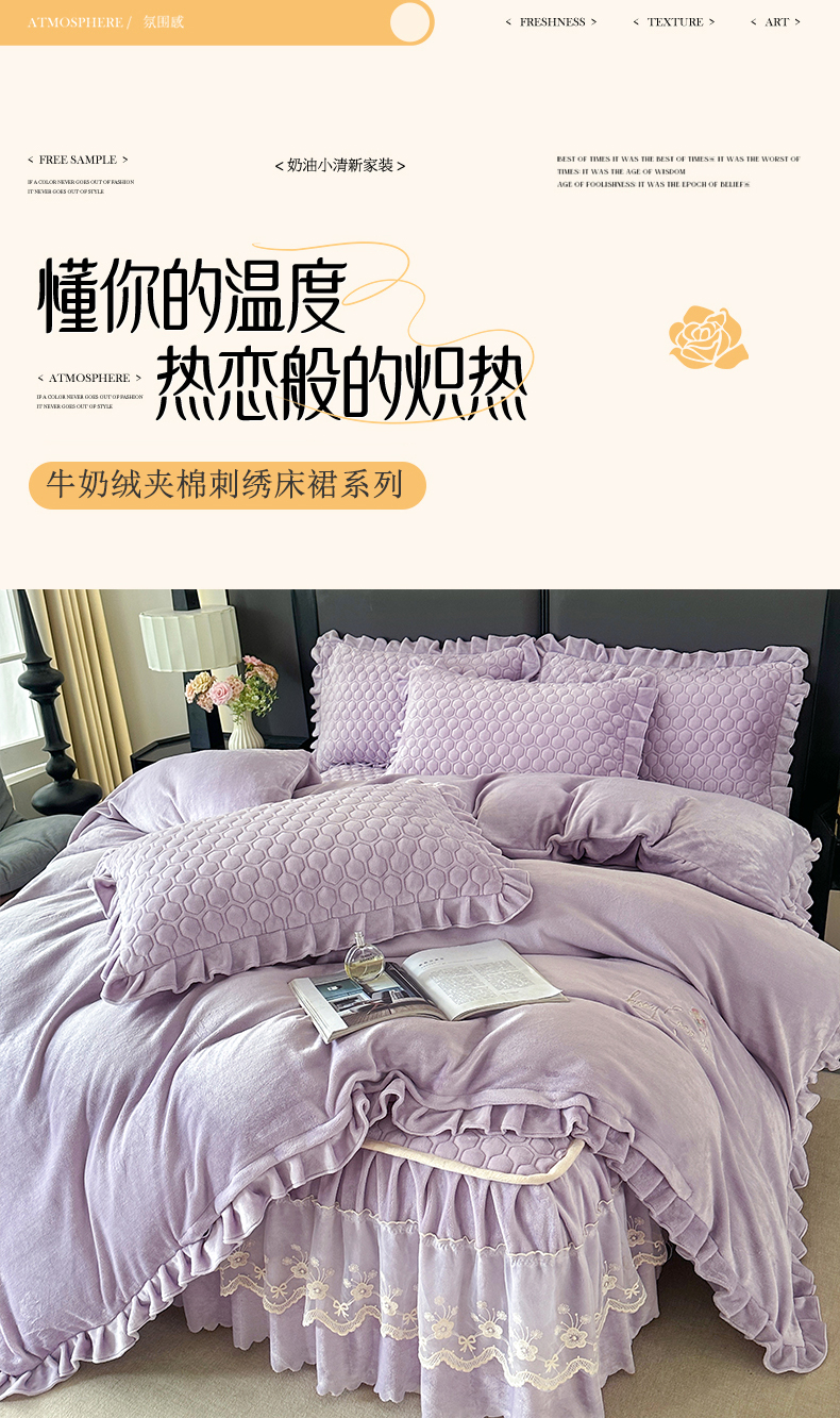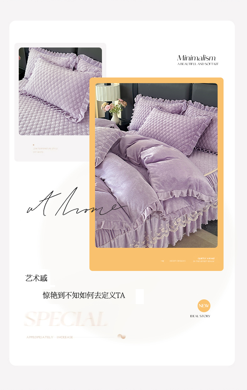 董韵家纺 2025新款牛奶绒刺绣夹棉床裙四件套系列(控价) 丝语-云紫