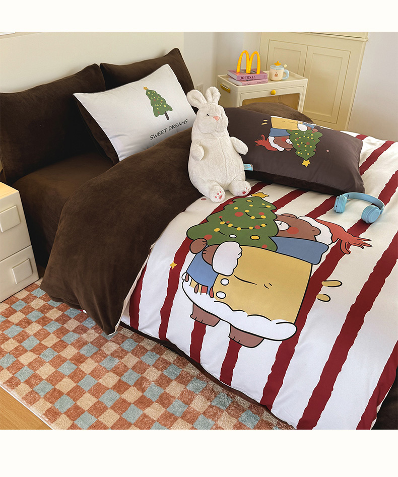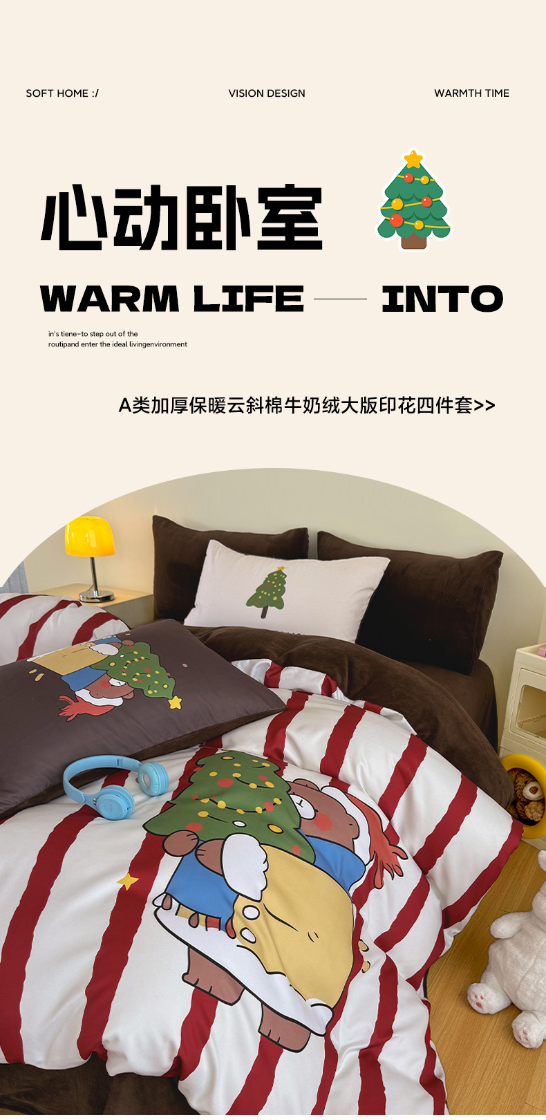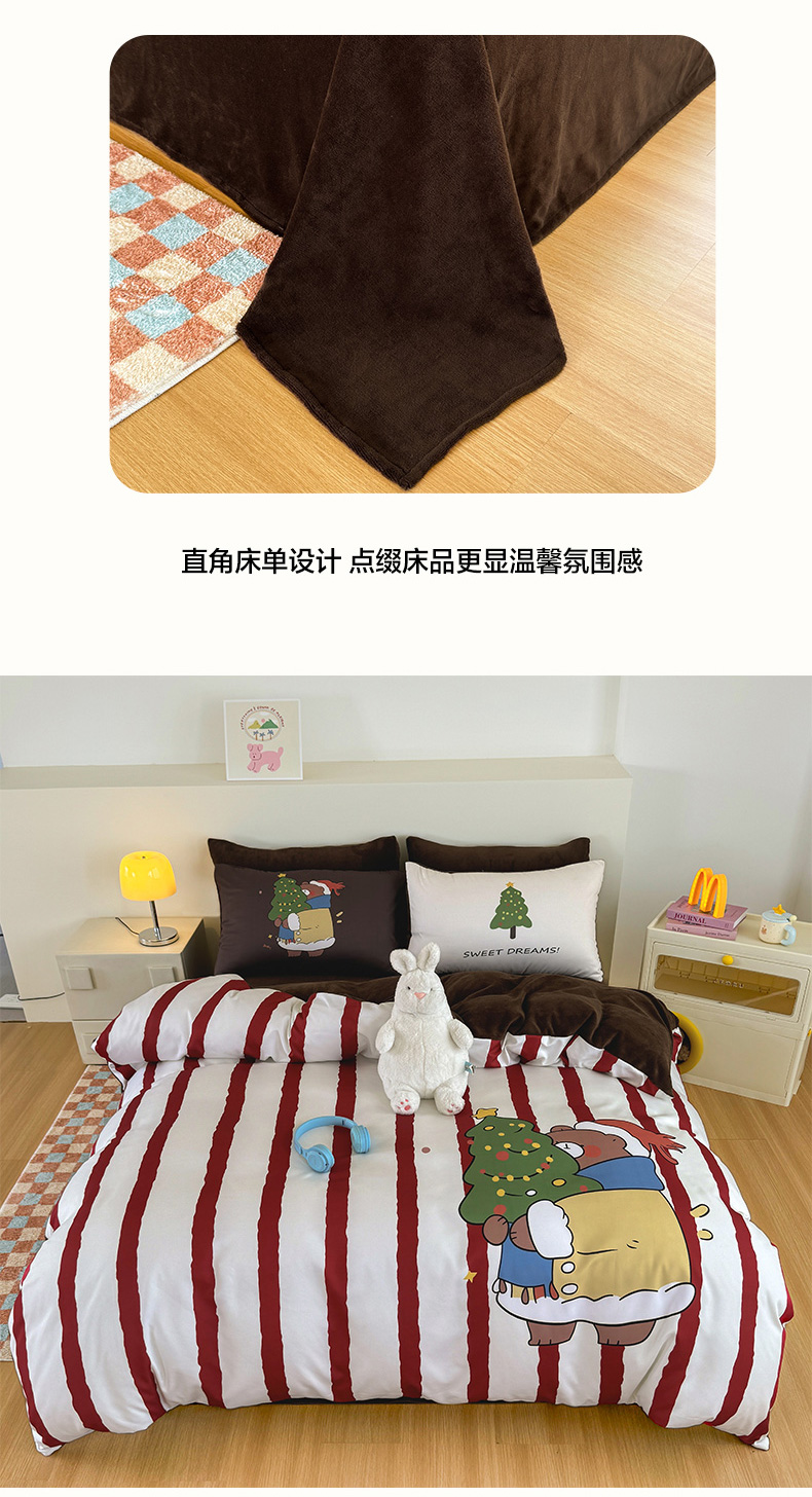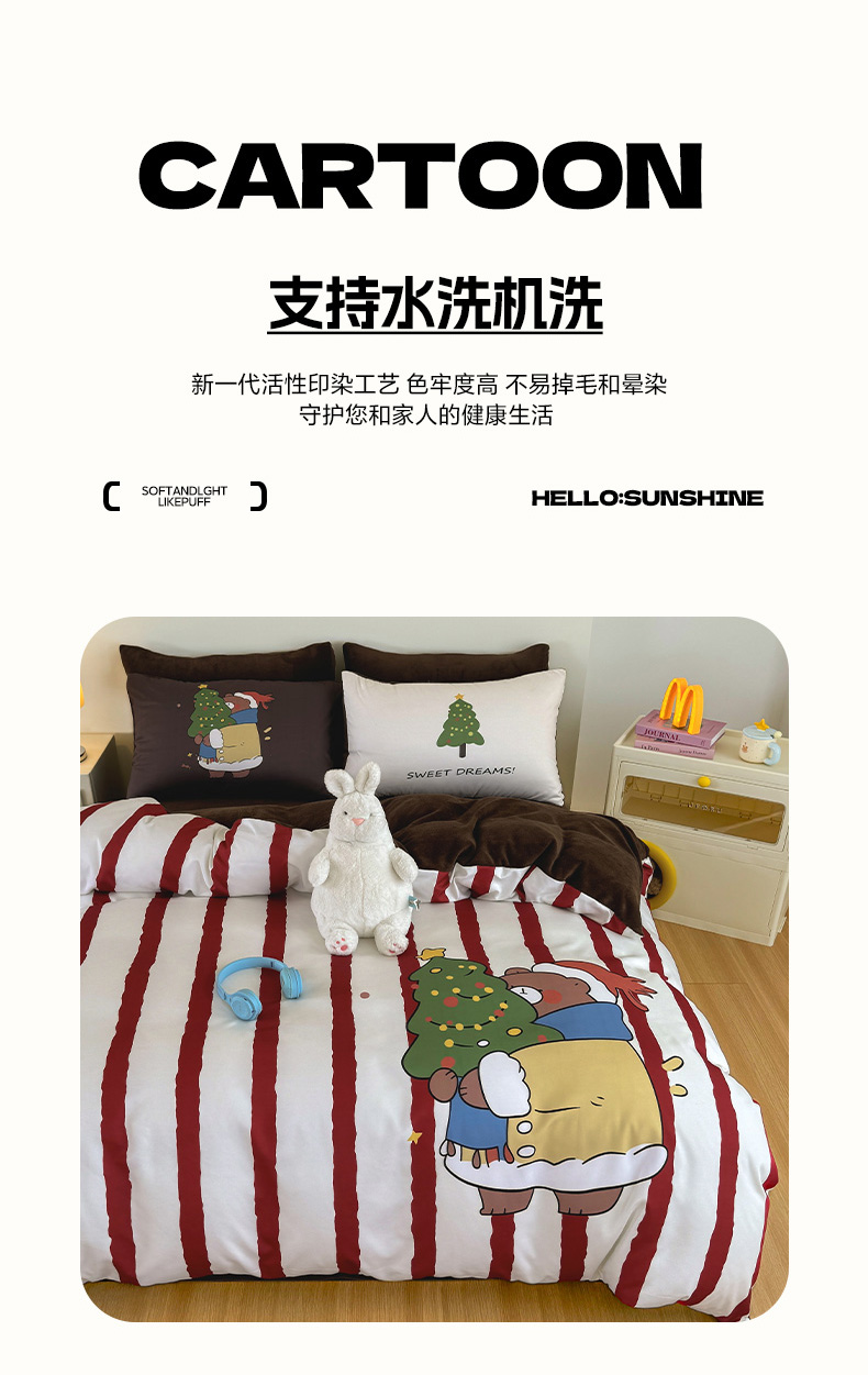 (总)十一家居 2025新款A类原创设计大版印花恒温保暖牛奶绒床笠套件,音乐萌犬,安睡小熊,暖冬狗狗,圣诞小熊