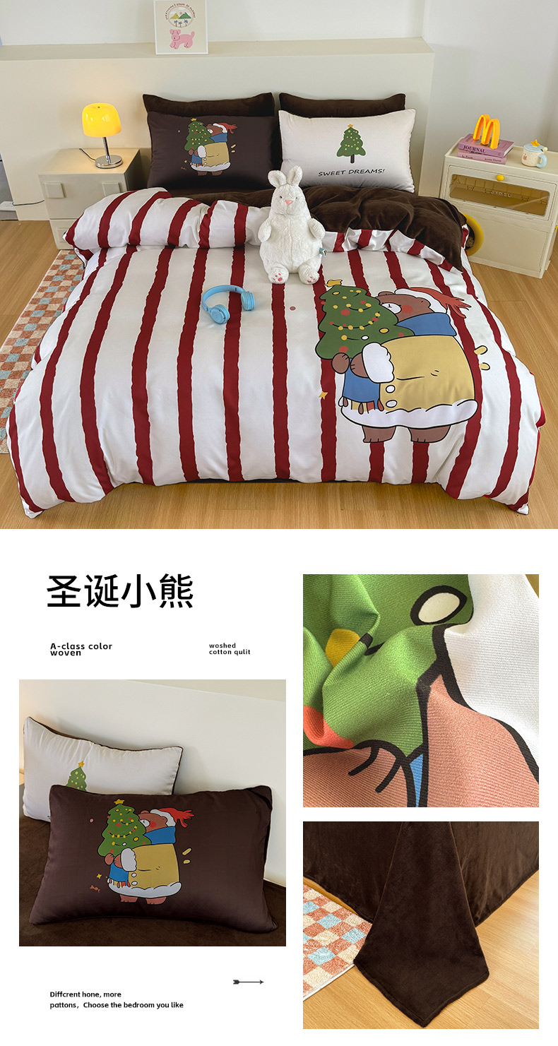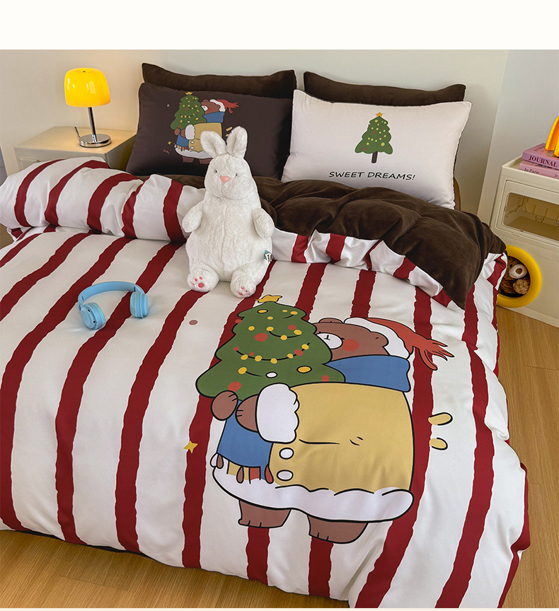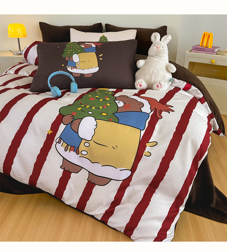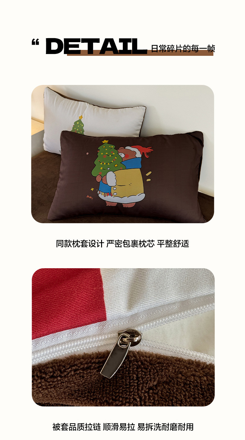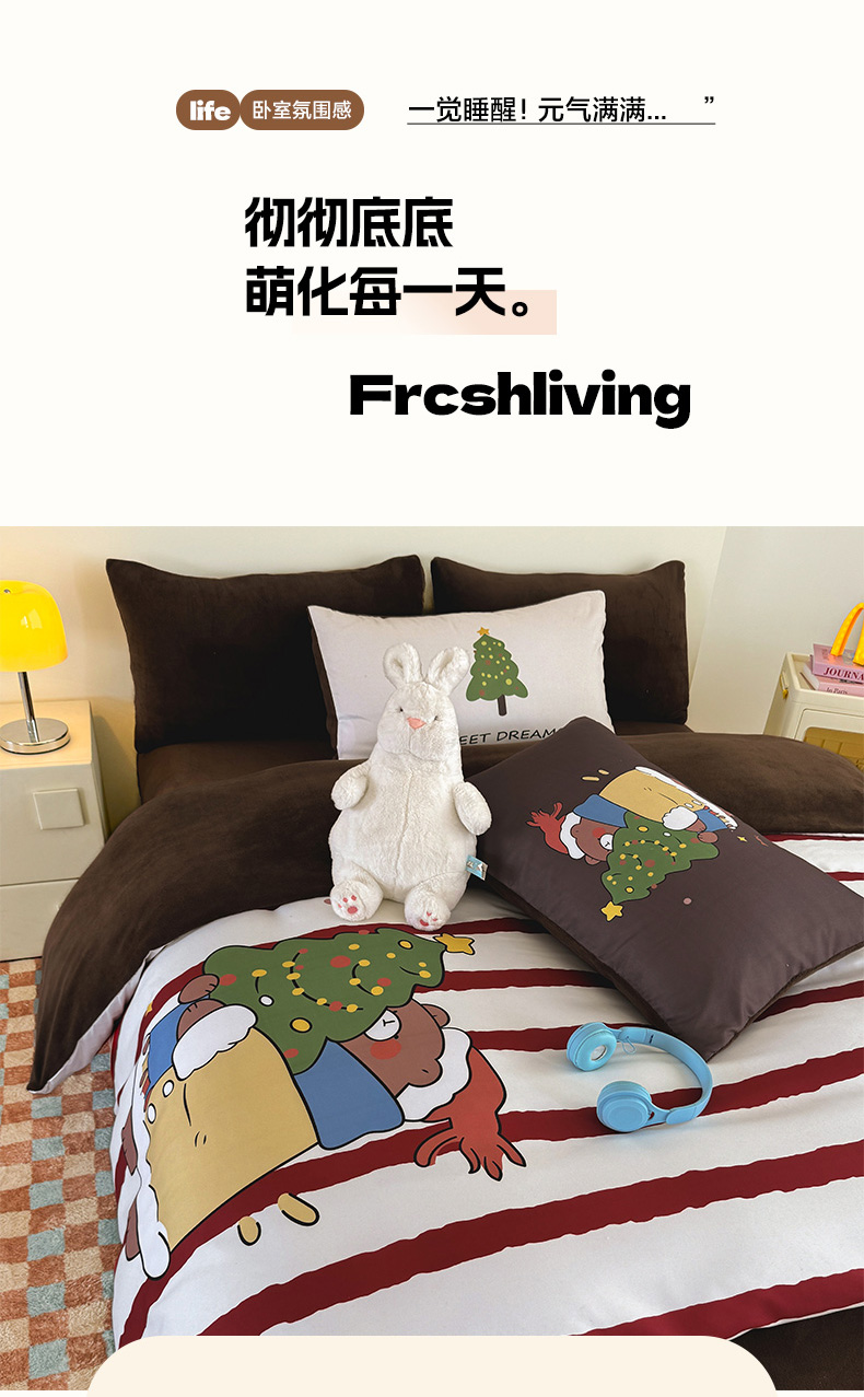 (总)十一家居 2025新款A类原创设计大版印花恒温保暖牛奶绒床笠套件,音乐萌犬,安睡小熊,暖冬狗狗,圣诞小熊
