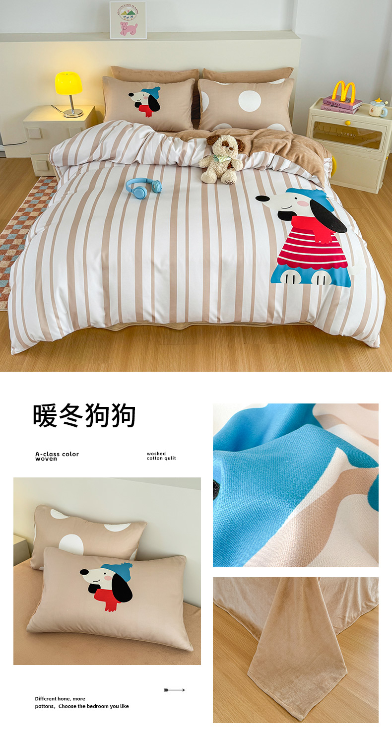 (总)十一家居 2025年新款A类云斜棉+牛奶绒春秋冬正反两用四件套—星漾系列,星漾-美式沙棕,星漾-布朗格灰,星漾-海盐狗狗,星漾-绿韵星辰,星漾-梦幻凯蒂,星漾-趣点萌宠