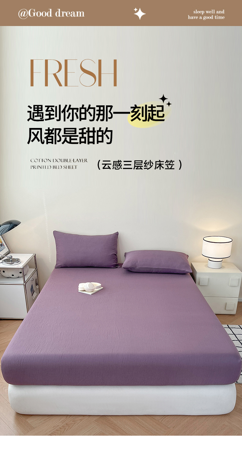 (总)瑞钰 2025新款透气云感三层纱床笠,军蓝,木槿紫,奶昔白,奶油黄,浅咖,柔幻紫,韶粉,深咖,水绿,天空蓝,烟灰