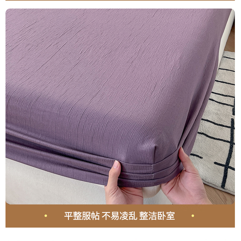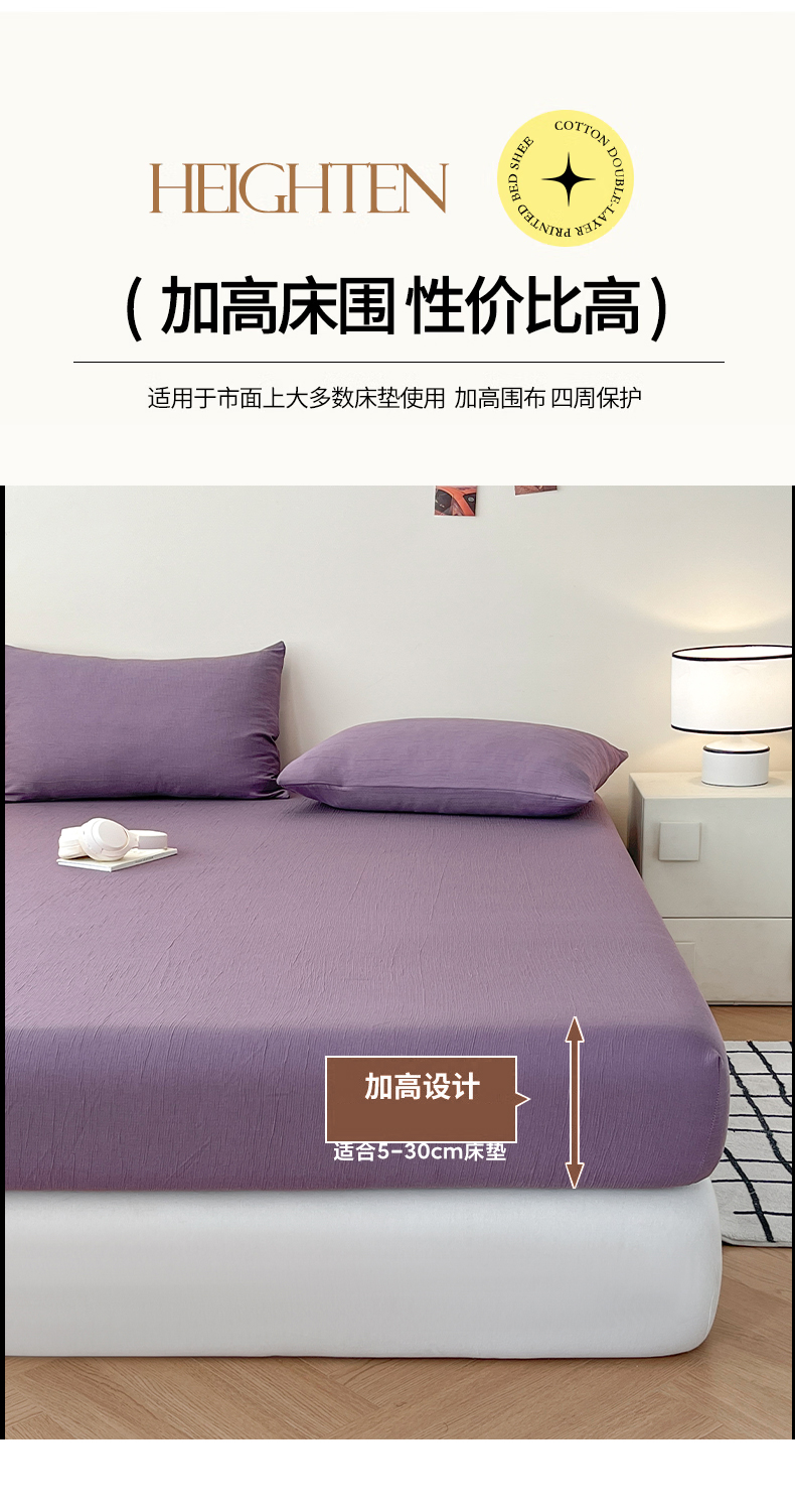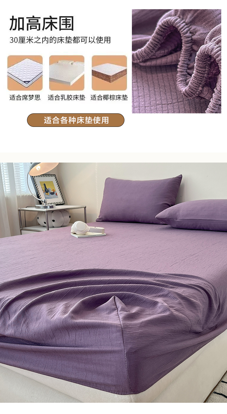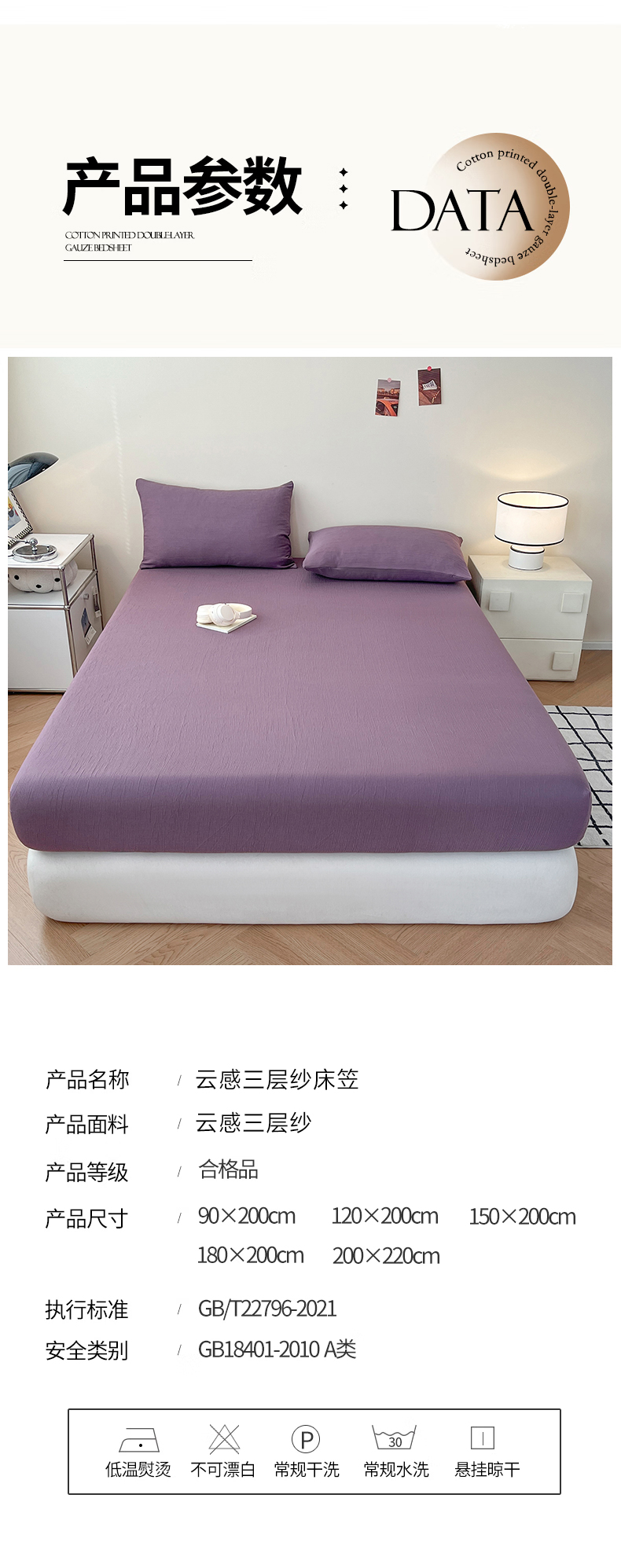 • 91家纺网 家纺一手货源 找家纺 瑞钰 2025新款透气云感三层纱床笠 木槿紫