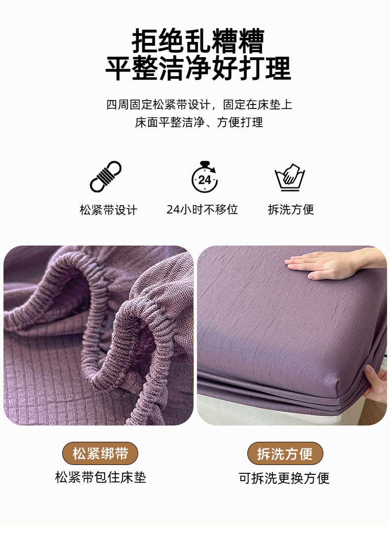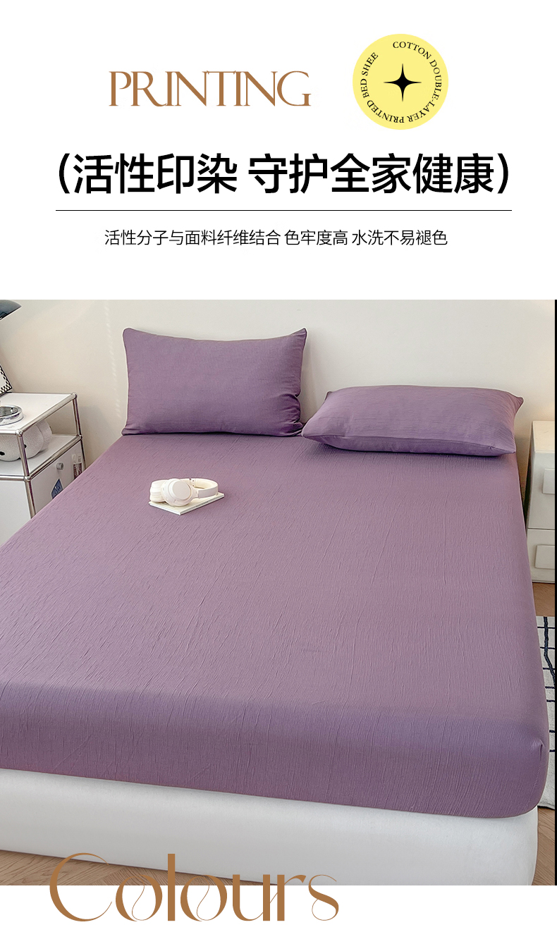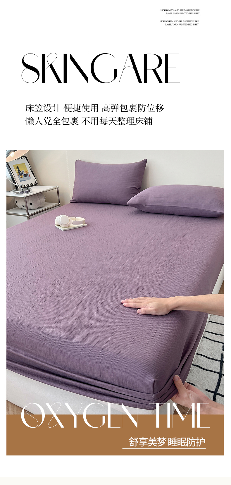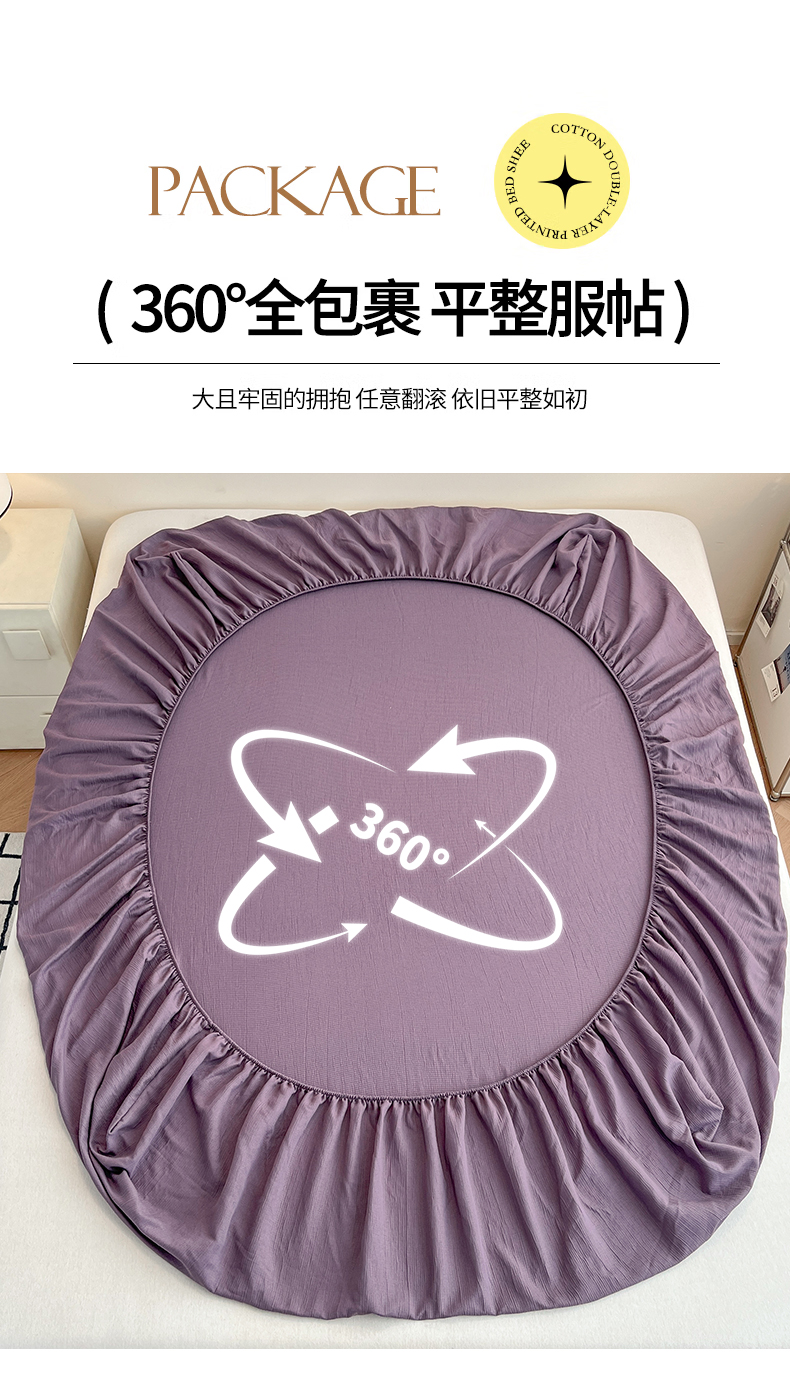 • 91家纺网 家纺一手货源 找家纺 瑞钰 2025新款透气云感三层纱床笠 木槿紫