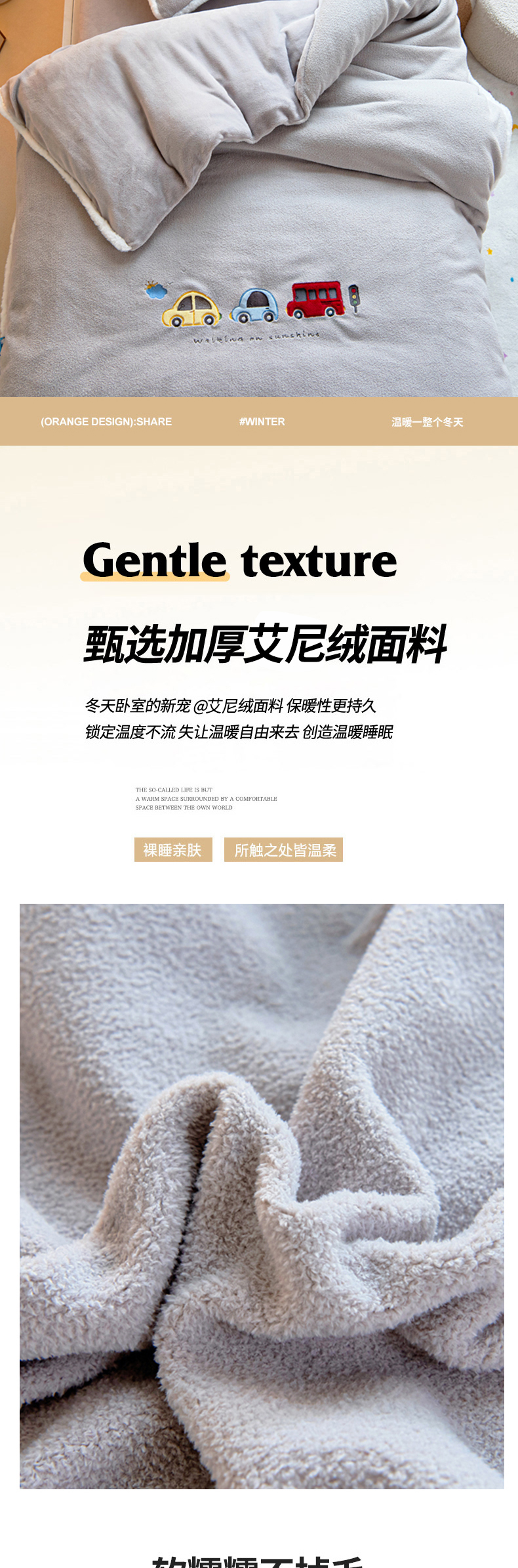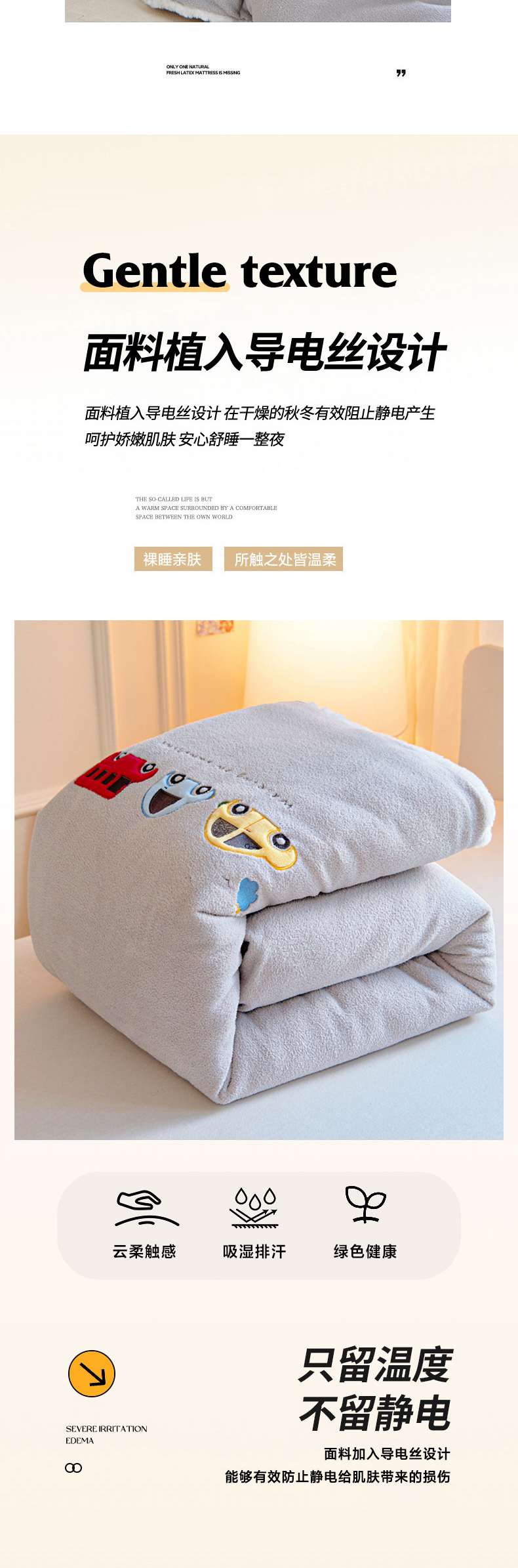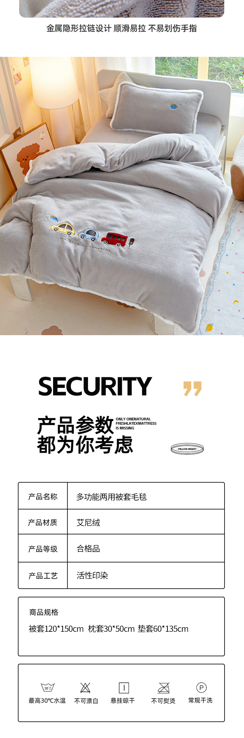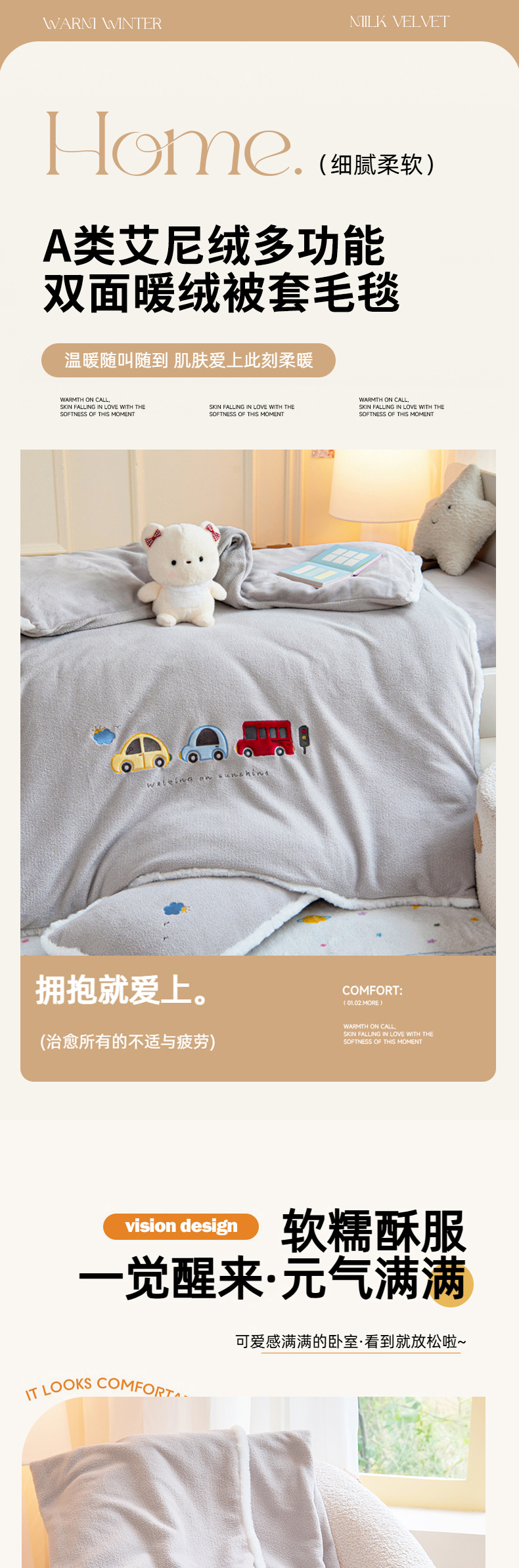 • 91家纺网 家纺一手货源 找家纺 御棉坊 2025新款艾尼绒多功能两用被套 排排小汽车
