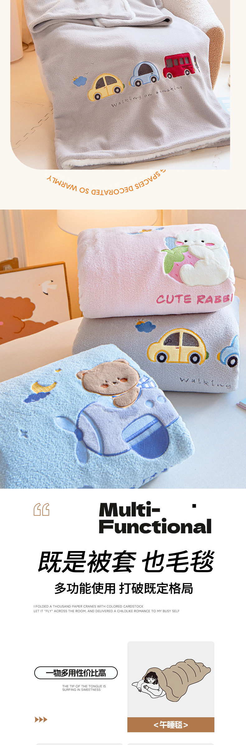 • 91家纺网 家纺一手货源 找家纺 (总)御棉坊 2025新款艾尼绒多功能两用被套,旅行小熊,排排小汽车,天使小兔,组合