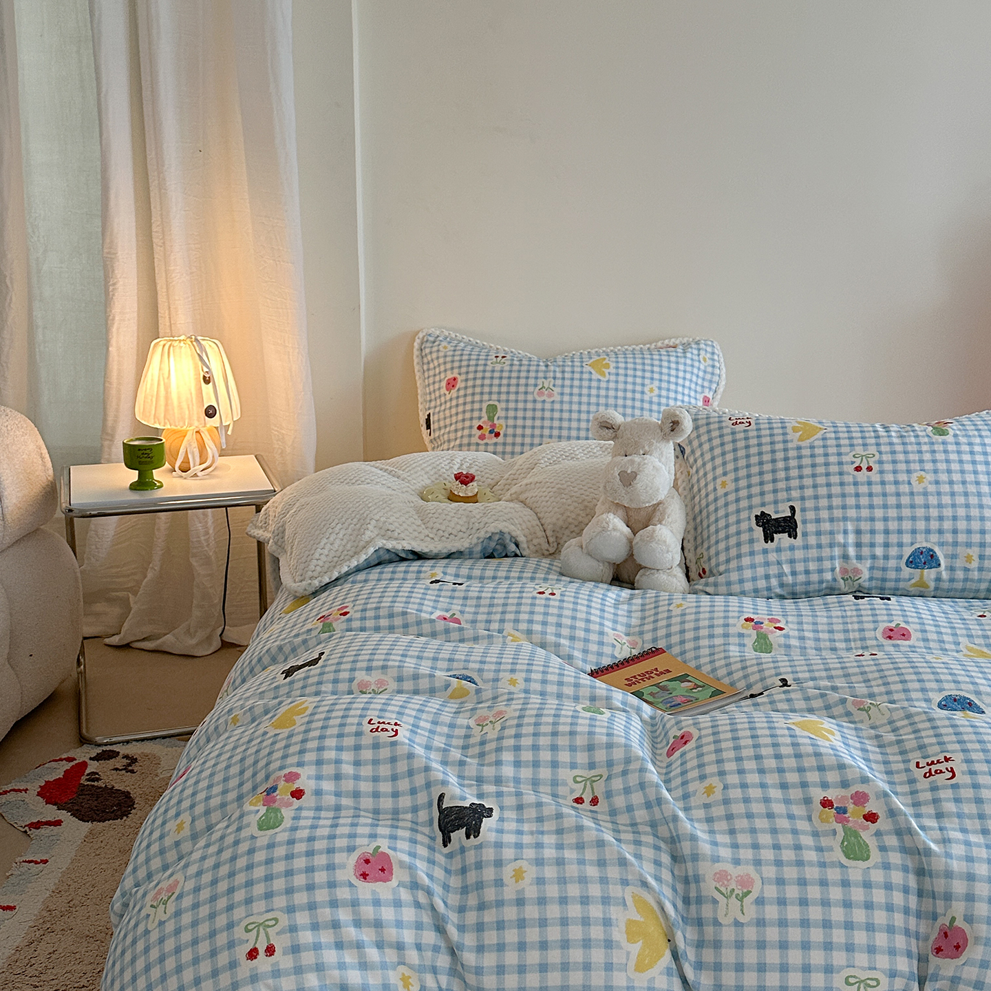 (总)柚子YOUTH 2025新款全棉双层纱贴布绣四件套,棒球熊猫,贝雷帽,冰淇淋小熊,格子玩偶,碎花小兔,小黑猫