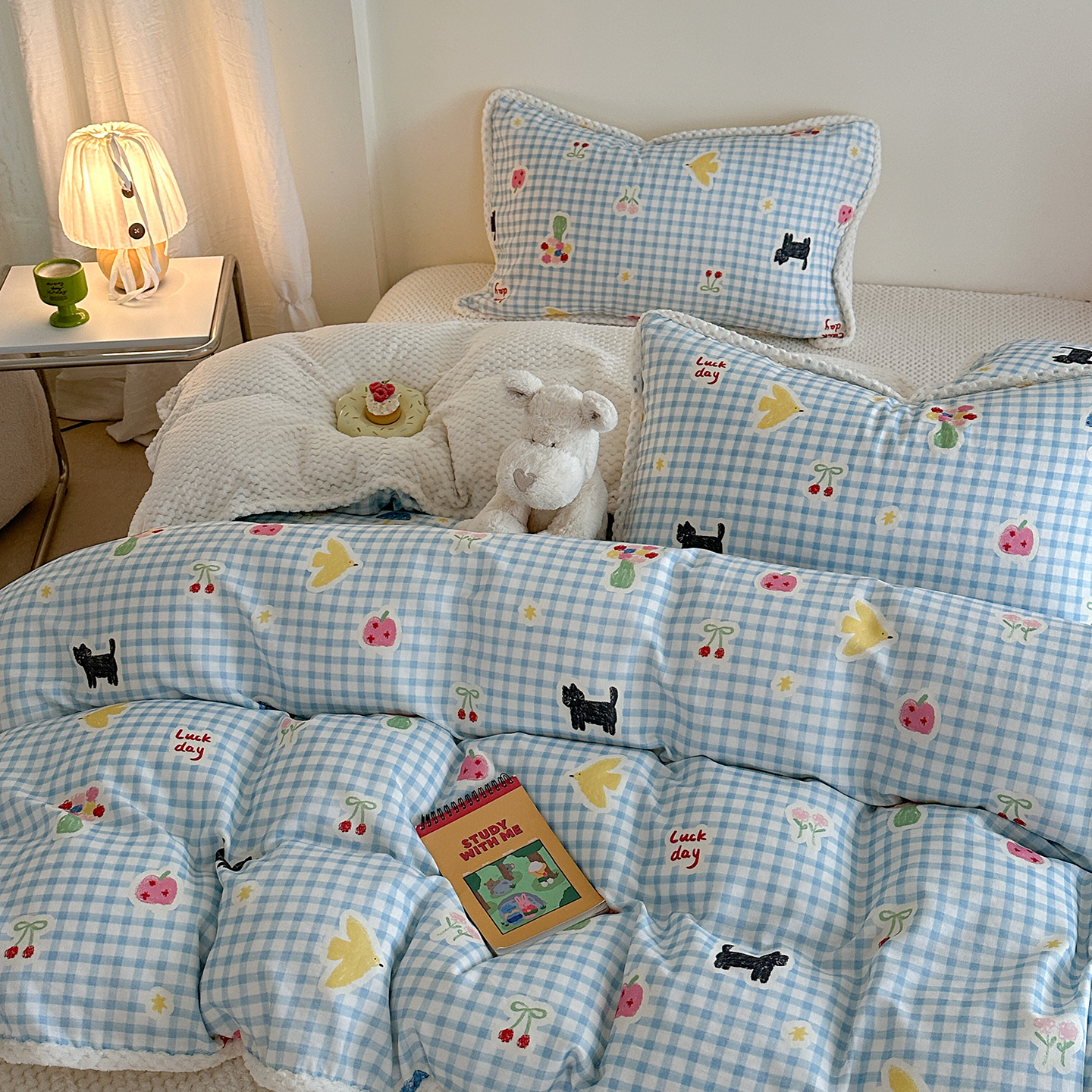 (总)柚子YOUTH 2025新款双面泰迪绒毛巾绣四件套,甜甜圈,快乐企鹅,森林聚会,甜酷KT,小茄子,雪人王国