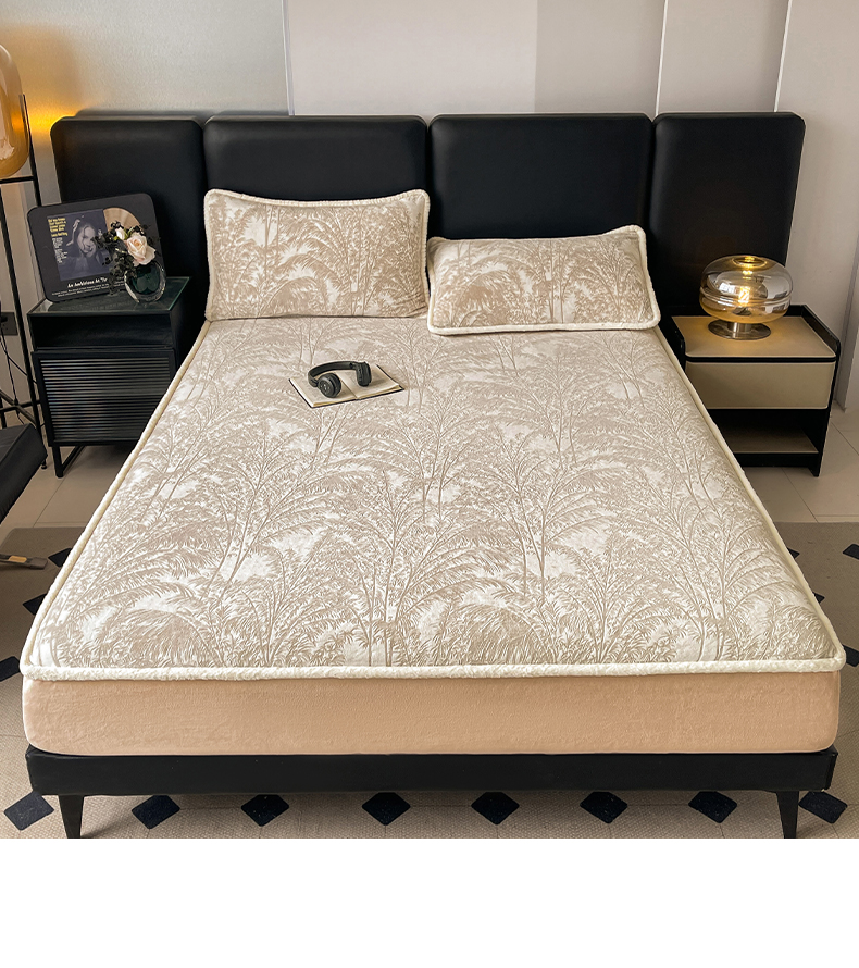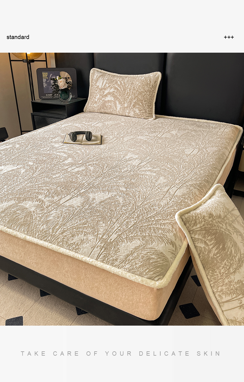 极简 2025新款雕花牛奶绒床笠-欧曼系列 欧曼-浅咖