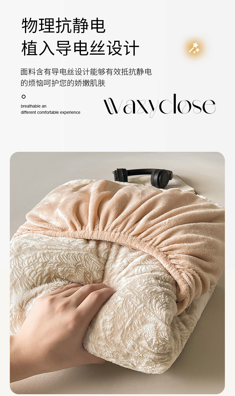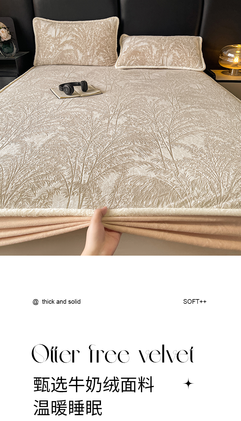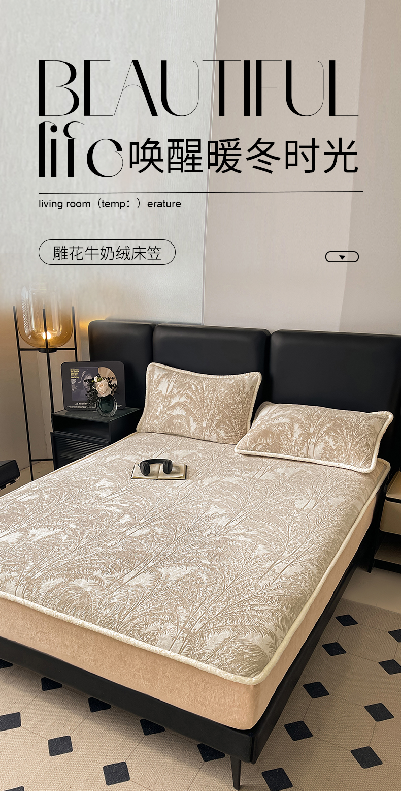 商品名称:极简 2025新款雕花牛奶绒床笠-欧曼系列 欧曼-浅咖