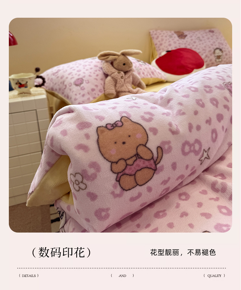 商品名称:呗旺鹿 2025新款A类牛奶绒数码印花卡通小清新四件套(场景一) 圣诞丫丫