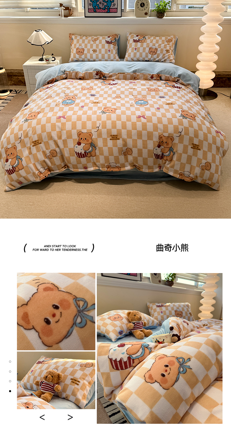 (总)呗旺鹿 2025新款A版全棉B版牛奶绒四件套,冰岛小马,萌星,糖果小马,小狗笔记,费尔岛小熊
