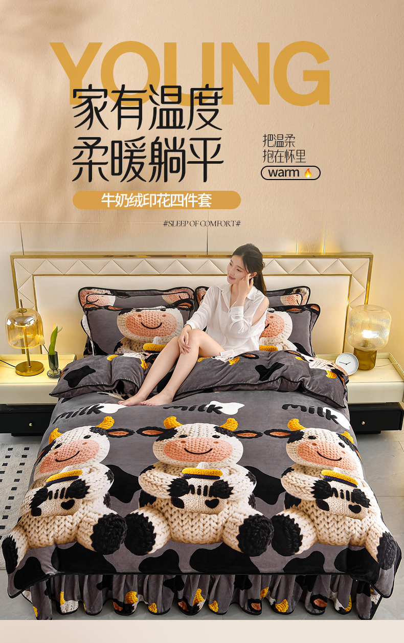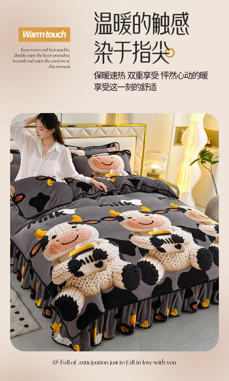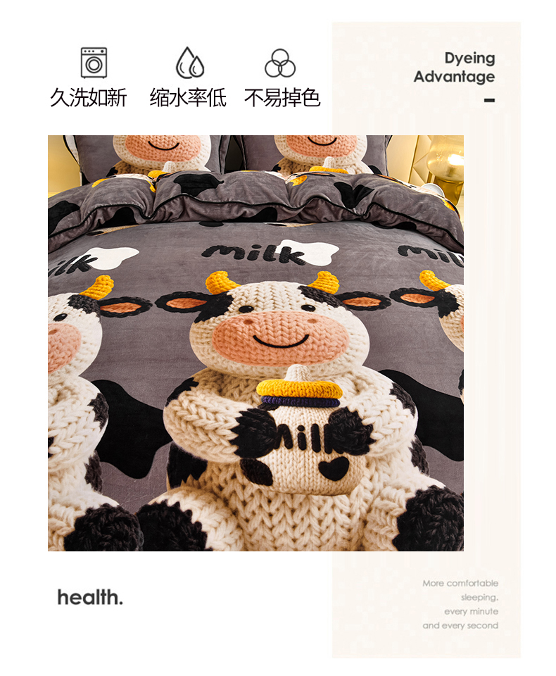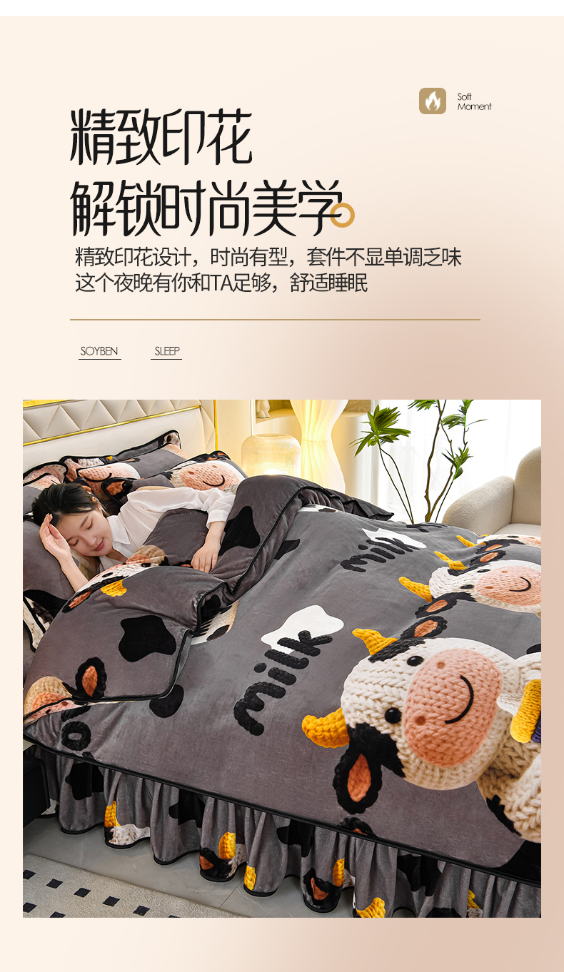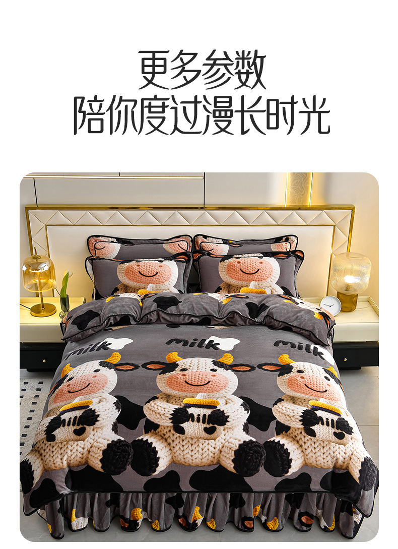 缘莉娜家纺 2025高克重8斤牛奶绒四件套金貂绒法莱绒加厚保暖直播电商爆款 萌牛牛