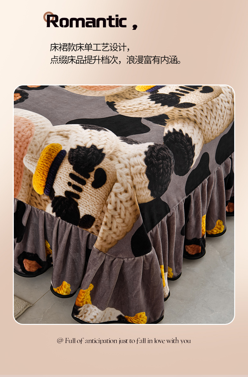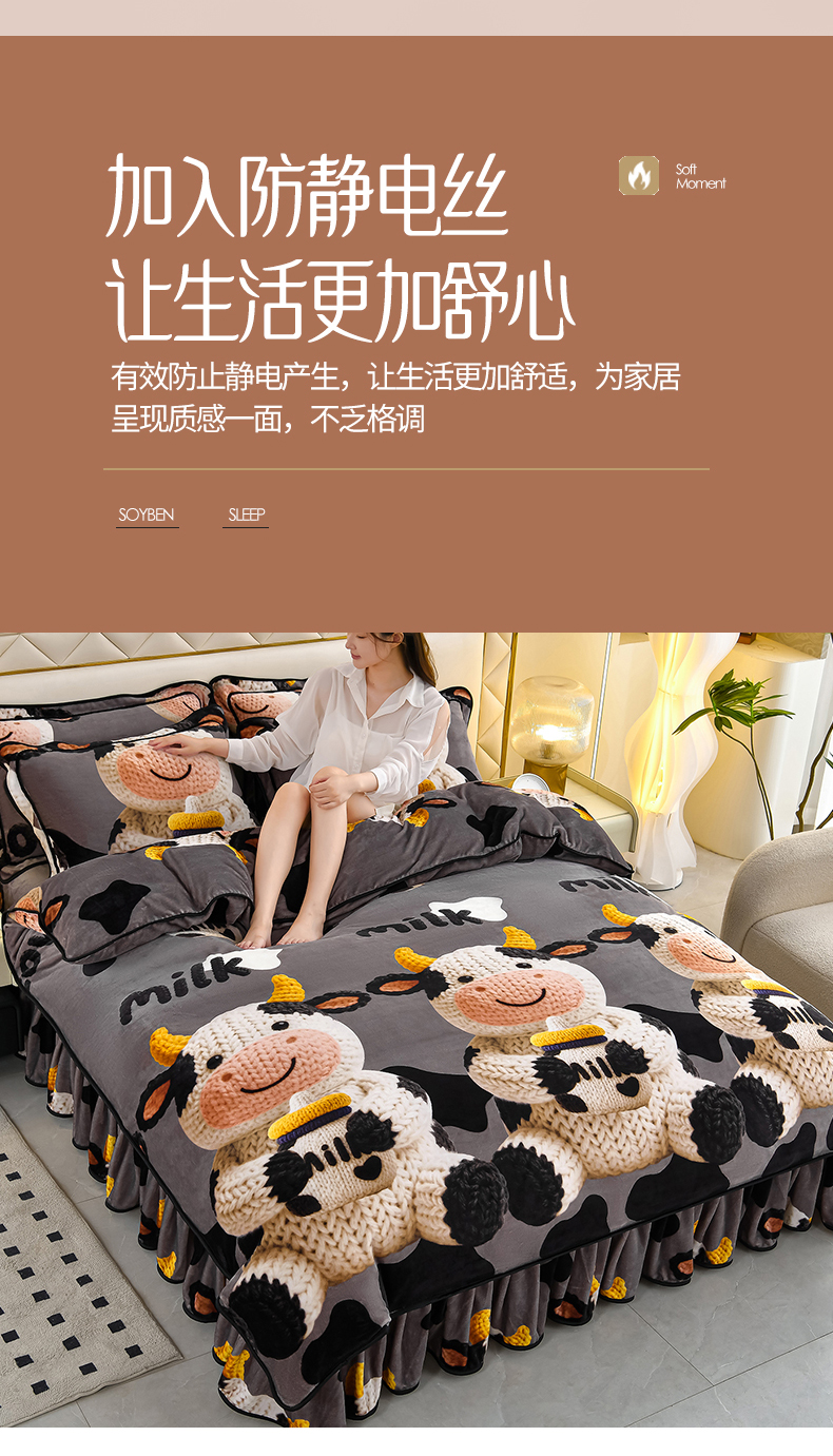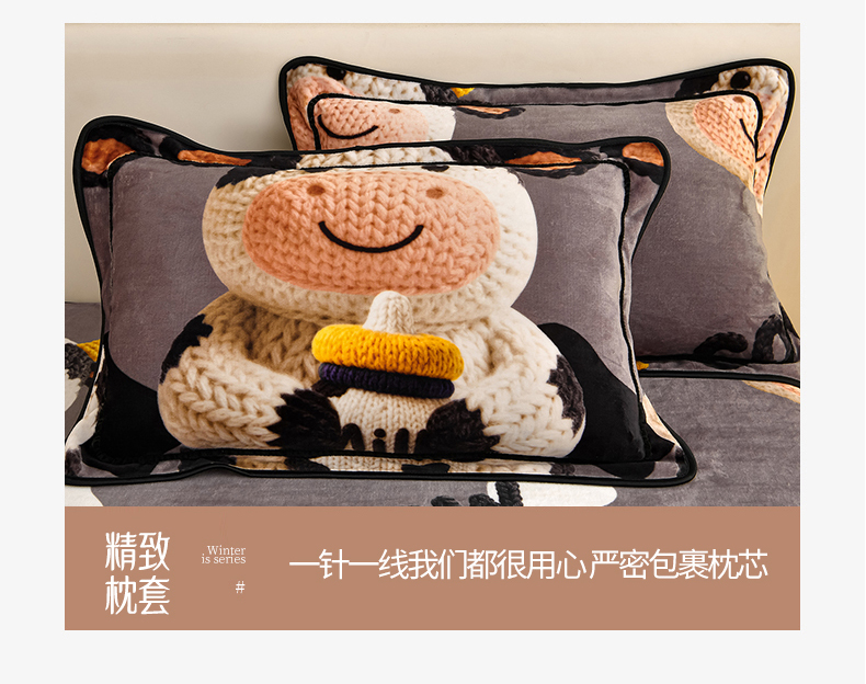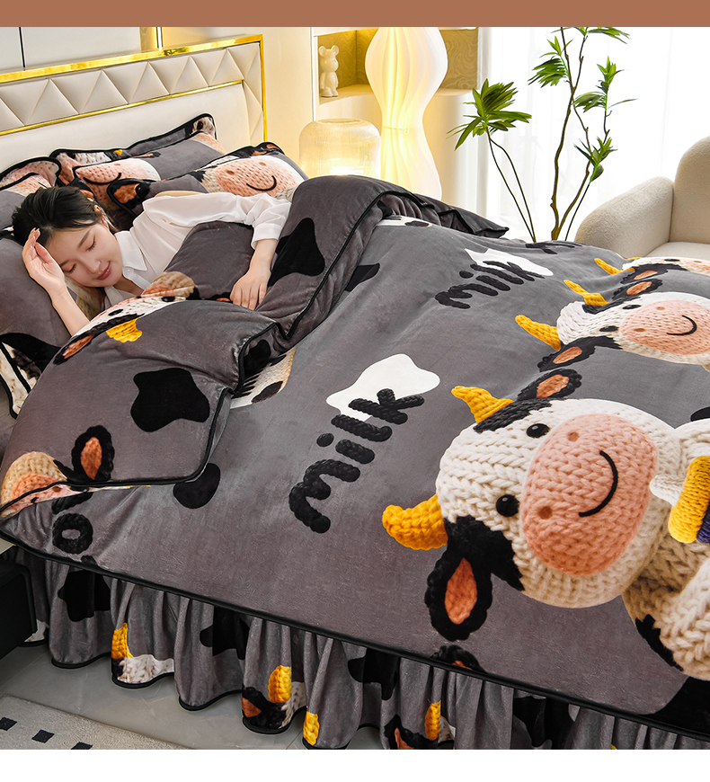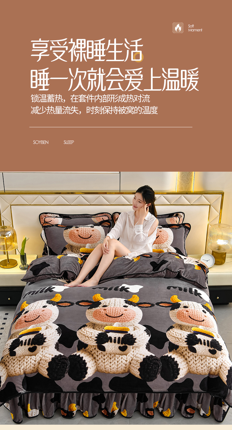 缘莉娜家纺 2025高克重8斤牛奶绒四件套金貂绒法莱绒加厚保暖直播电商爆款 萌牛牛