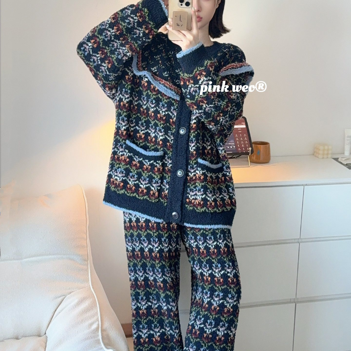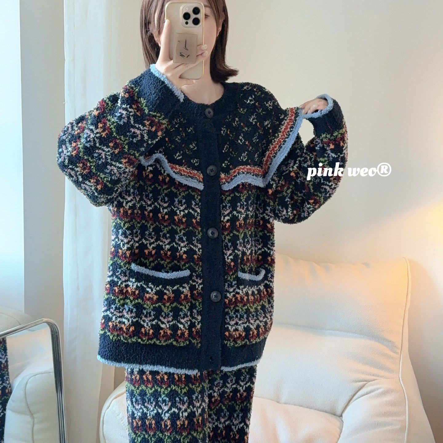 当前位置: 91家纺网 > 商品网购 > 居家日用 > 睡衣 > (总)妍景家居生活馆 2025新款软绵绵-木耳边费尔岛开衫款