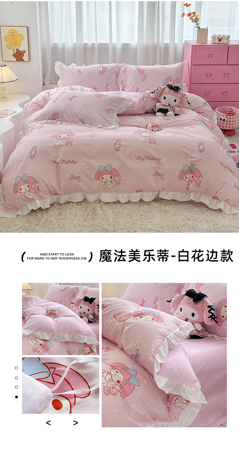 当前位置: 91家纺网 > 商品网购 > 床品套件 > 四件套 > 全棉普通四件套 > 玉元坊 2025新款全棉纯棉美乐蒂白花边款式四件套 小兔美乐蒂【花边款】