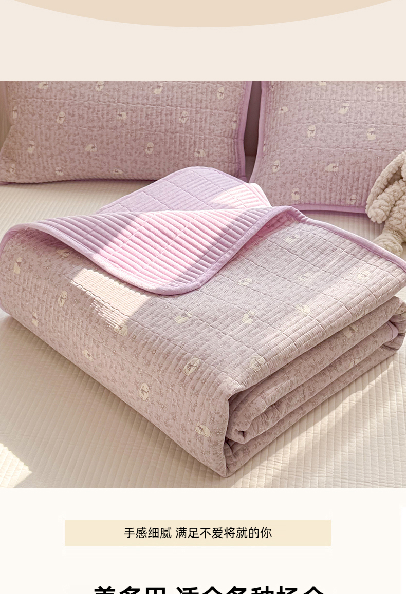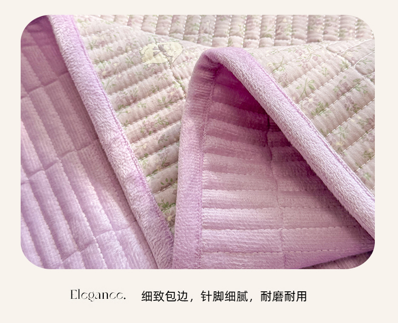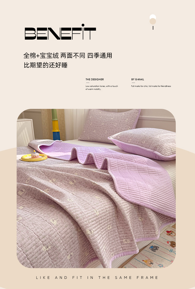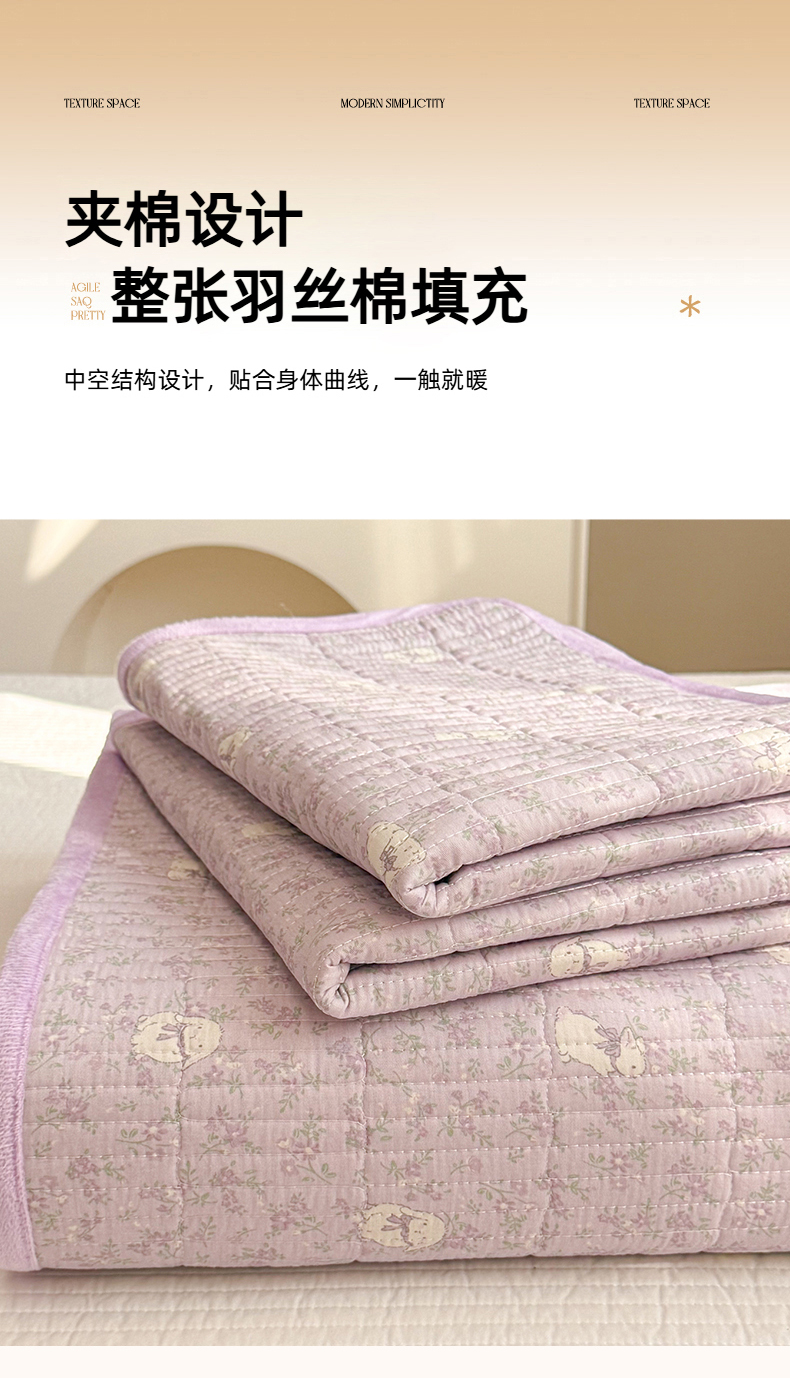 • 91家纺网 家纺一手货源 找家纺 简宜家居(朝初家纺) 2025新款A面100%全棉B面宝宝绒棉绒包边床盖正反两用 紫绒花兔