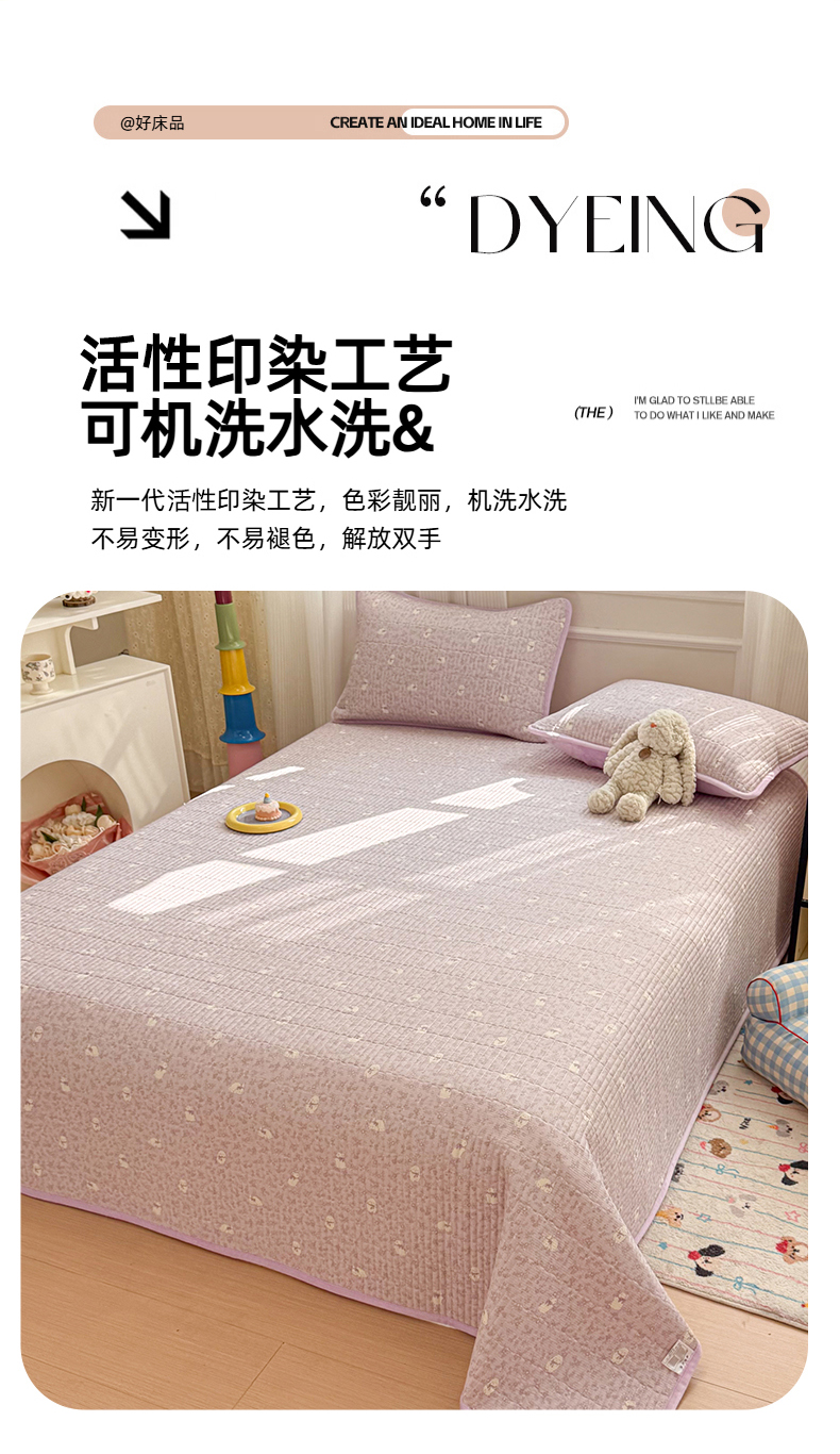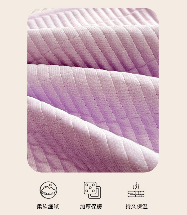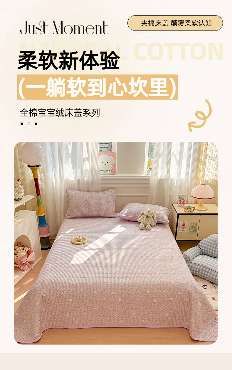 • 91家纺网 家纺一手货源 找家纺 简宜家居(朝初家纺) 2025新款A面100%全棉B面宝宝绒棉绒包边床盖正反两用 紫绒花兔