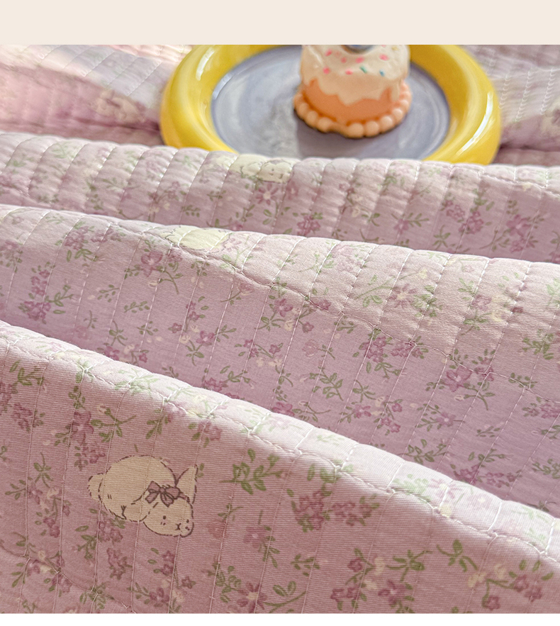 (总)简宜家居(朝初家纺) 2026新款全棉绗缝花边床盖四件套,幸福小兔,暖菊花兔,牵藤兔,素条花-粉,素条花-蓝,兔与花笺