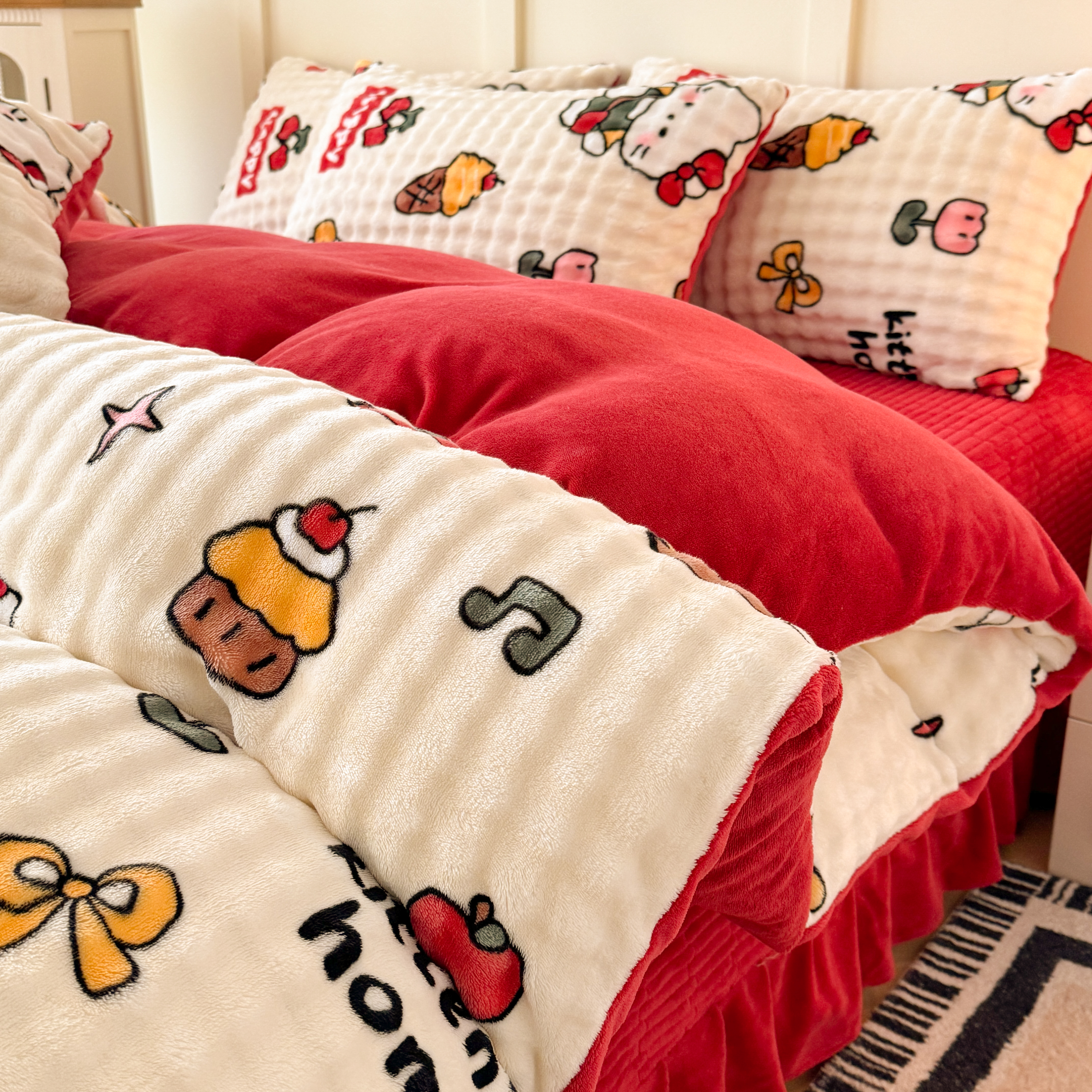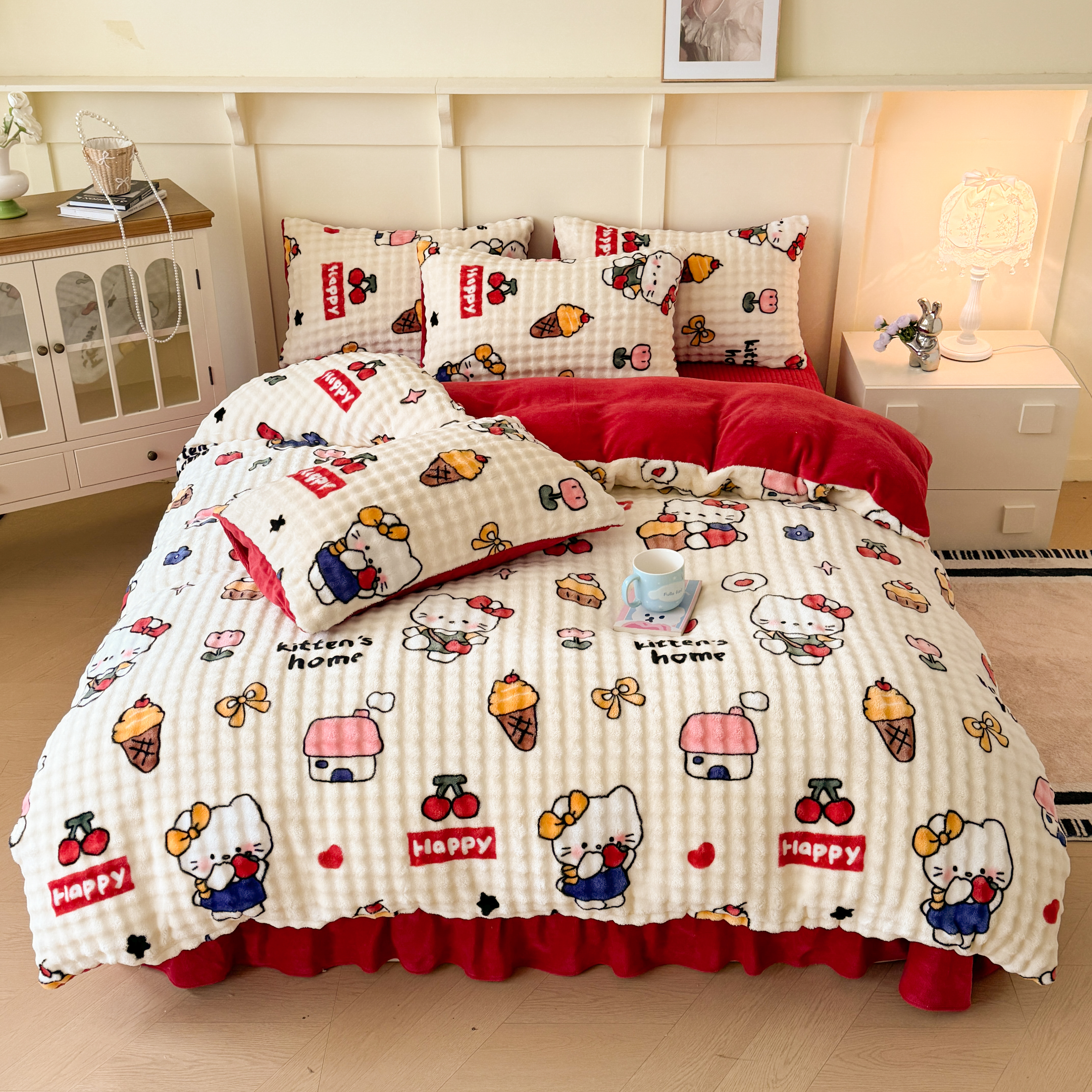 (总)梦纤绒 2025新款牛奶绒泡泡床盖款四件套